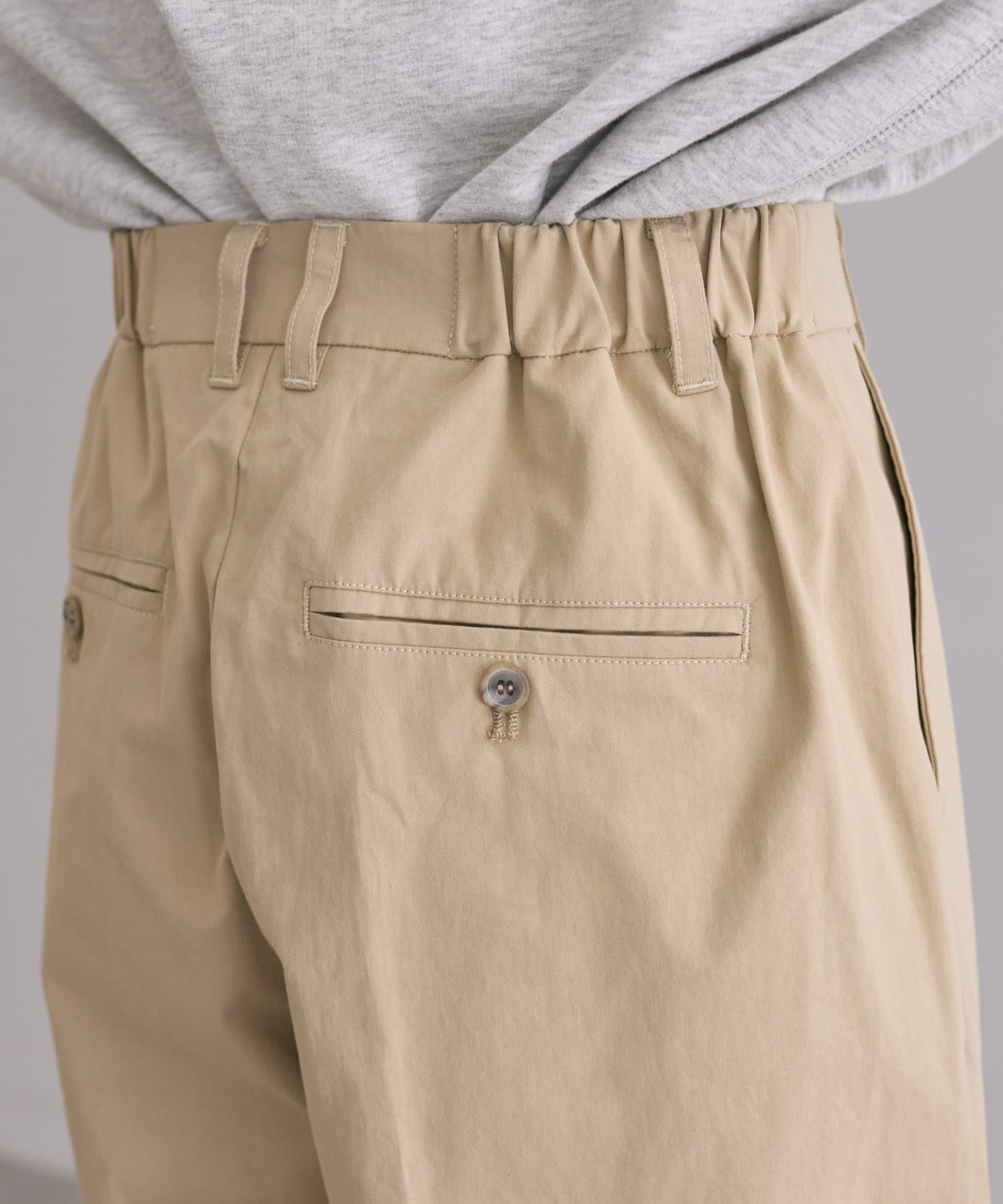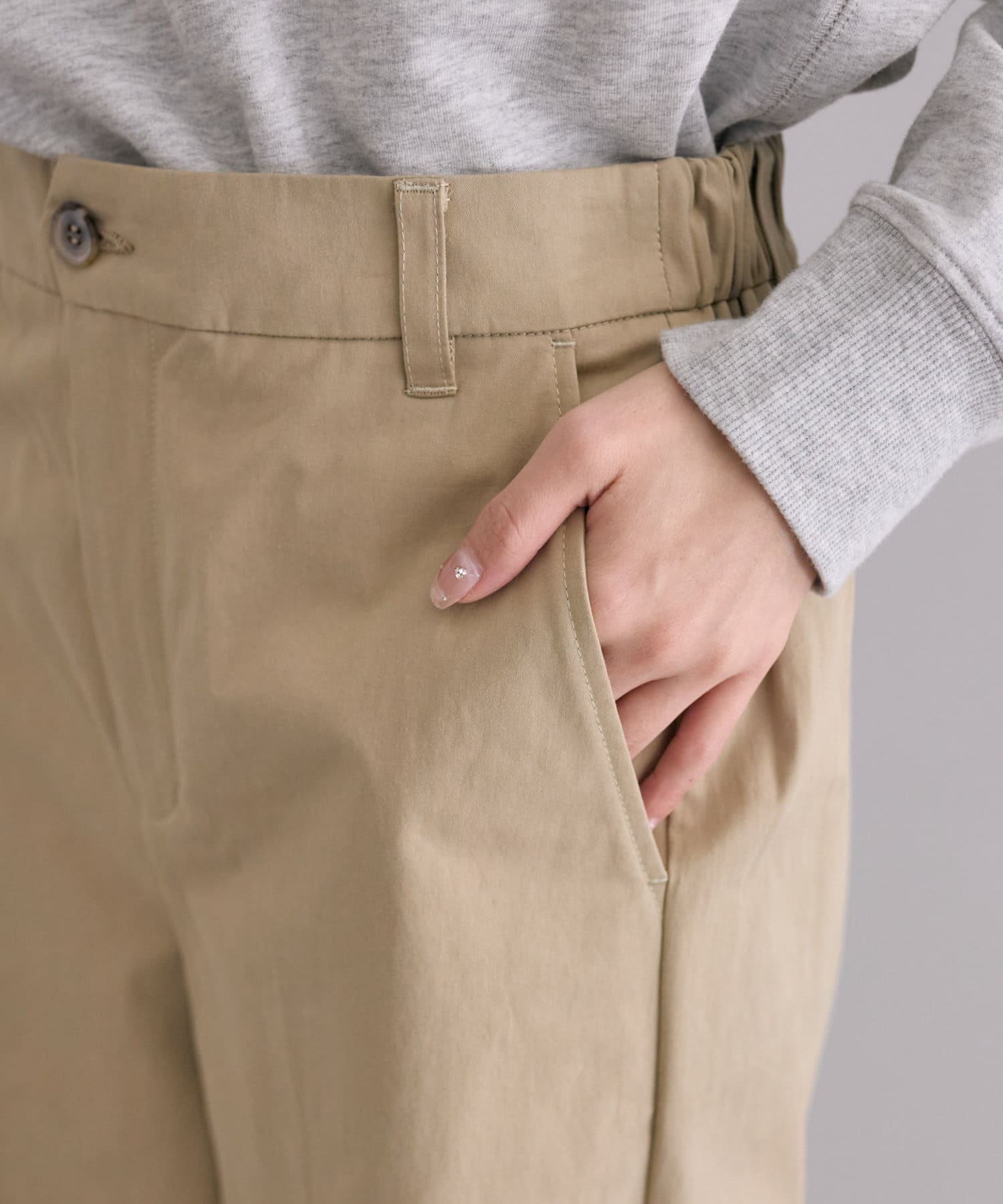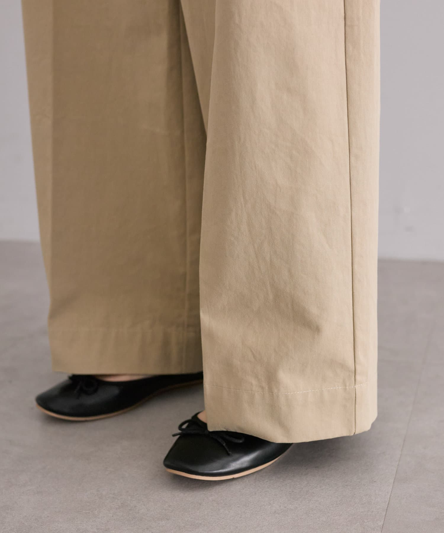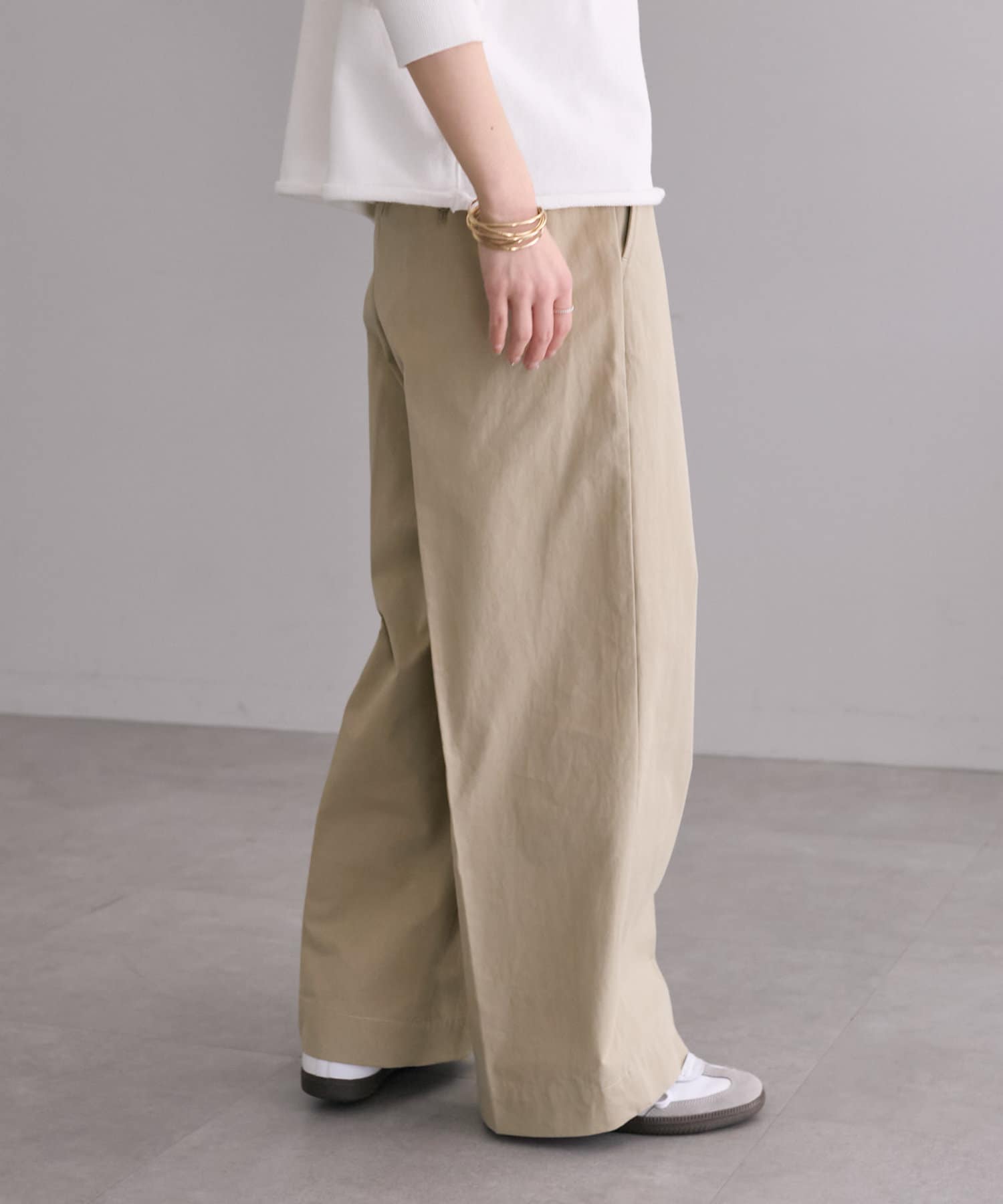 見た目以上にゆとりを感じる幅感とウエストサイドのゴムでラフな穿き心地。
