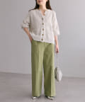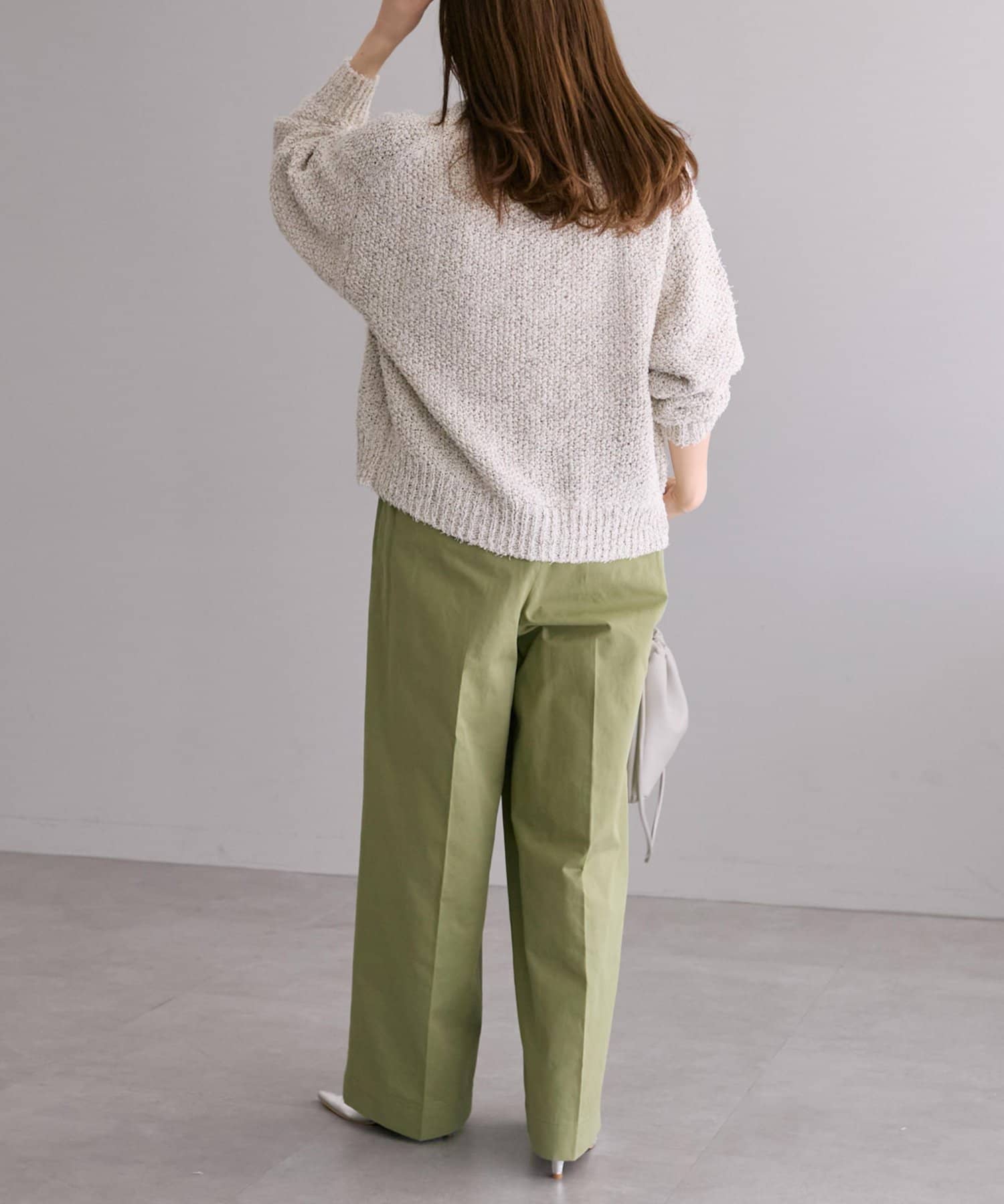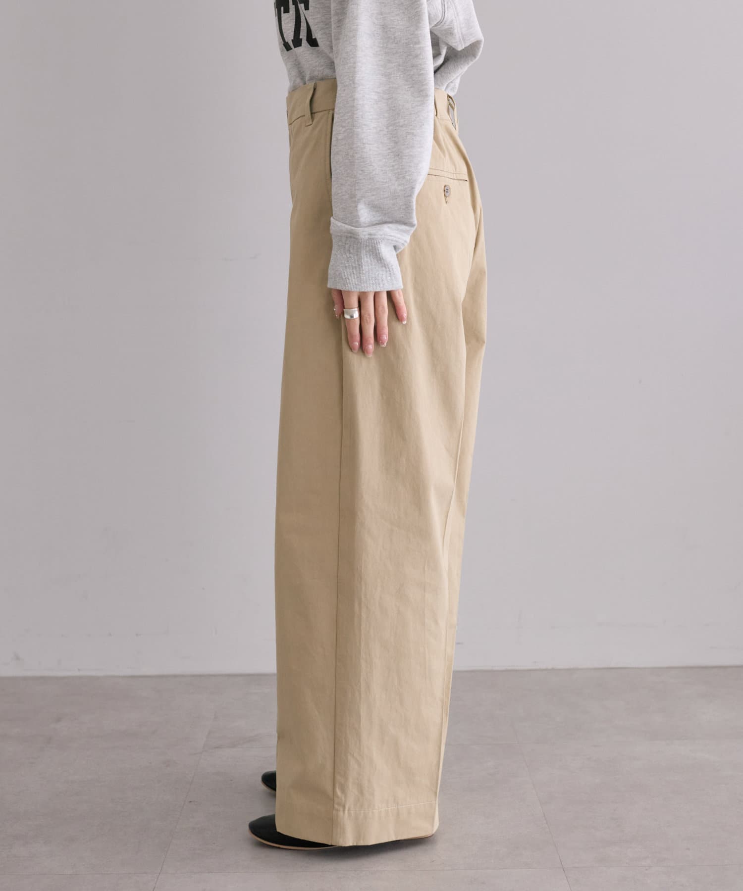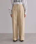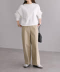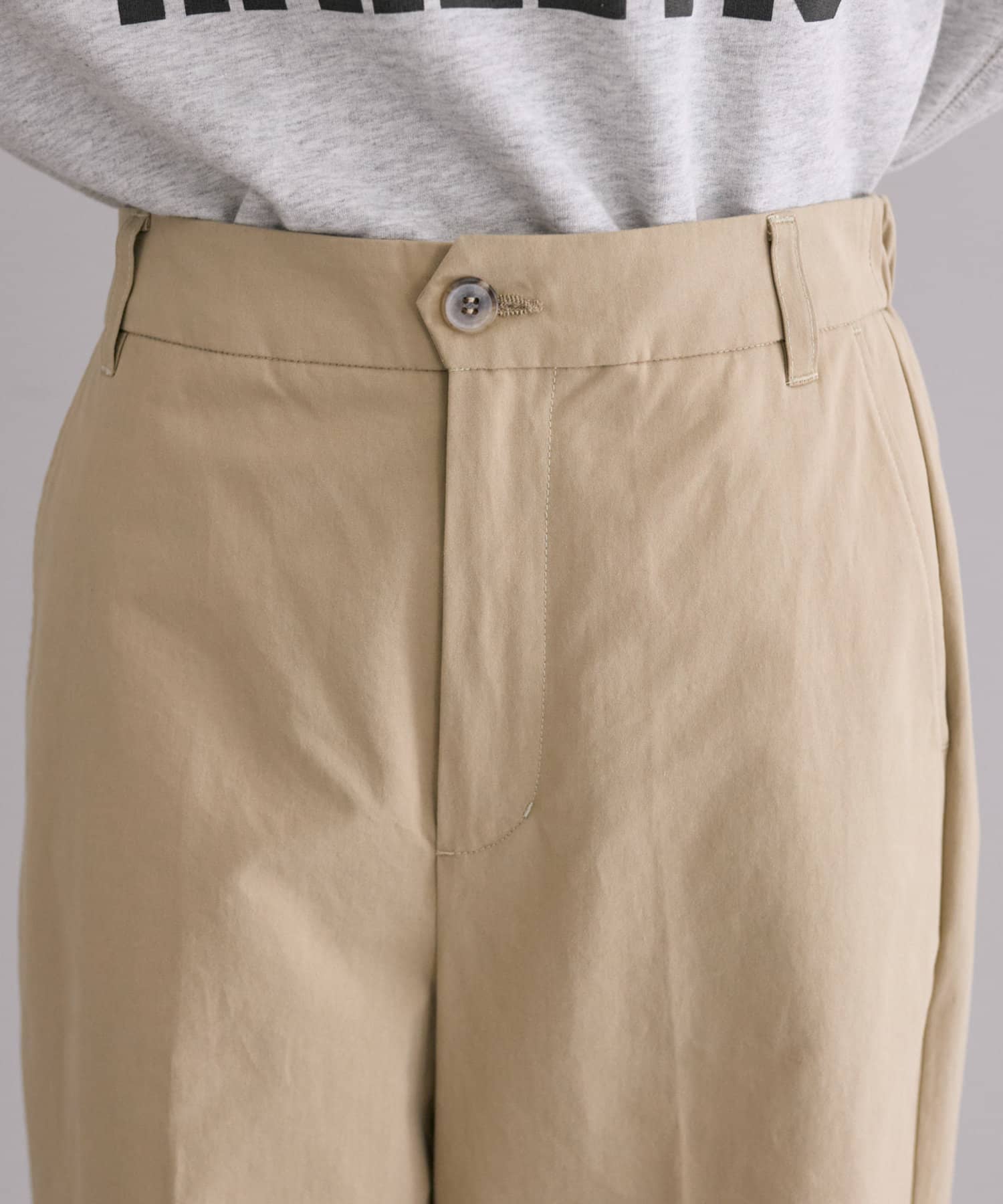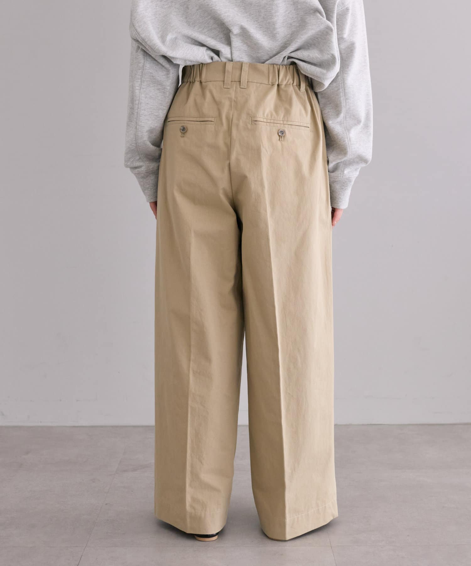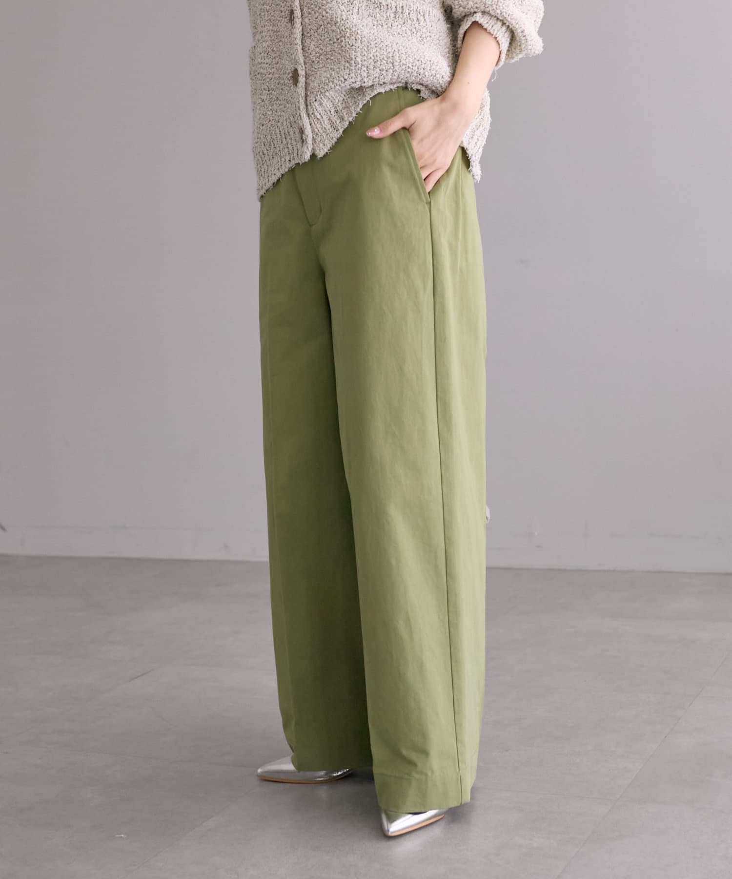 見た目以上にゆとりを感じる幅感とウエストサイドのゴムでラフな穿き心地。
