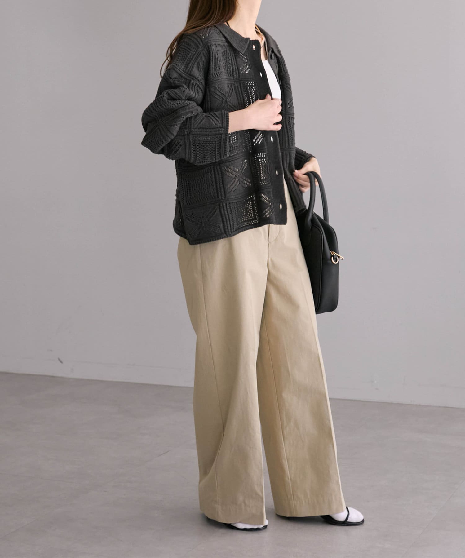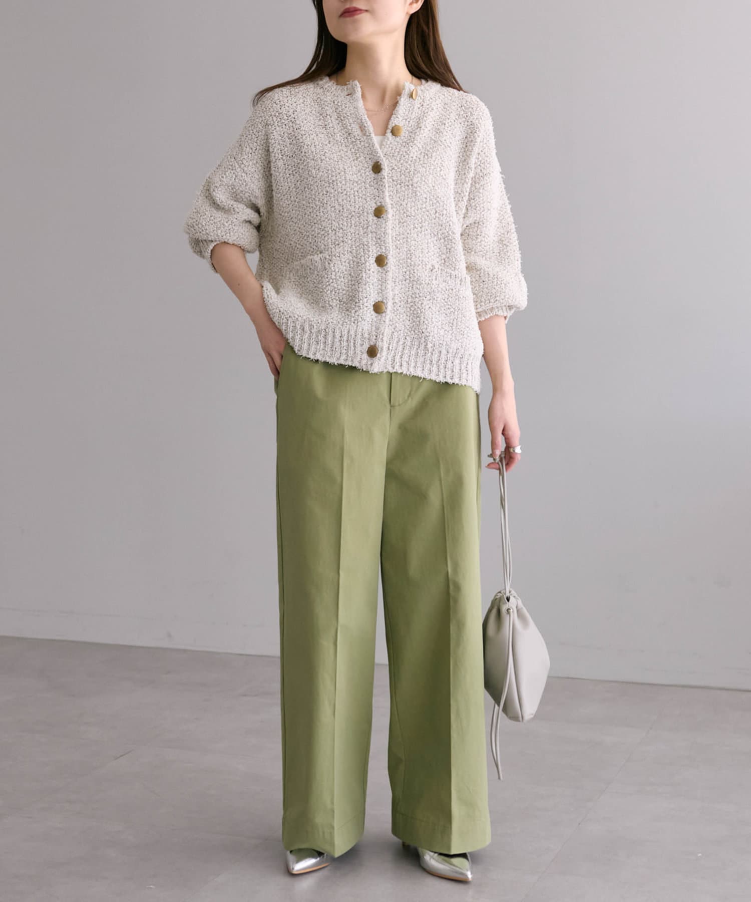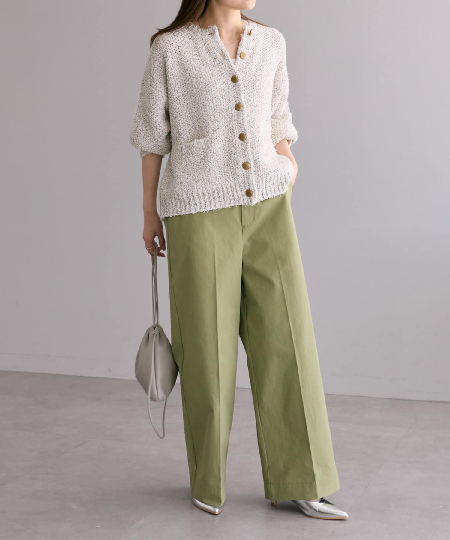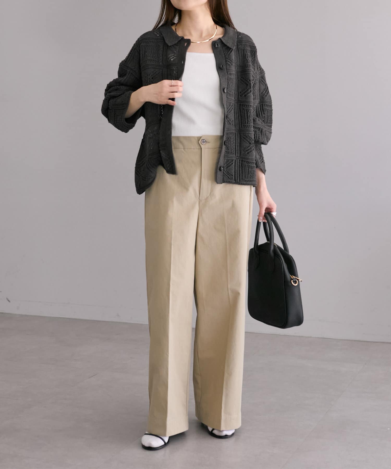 女性らしいブラウスなどとキレイ目コーディネートにも合わせられます。