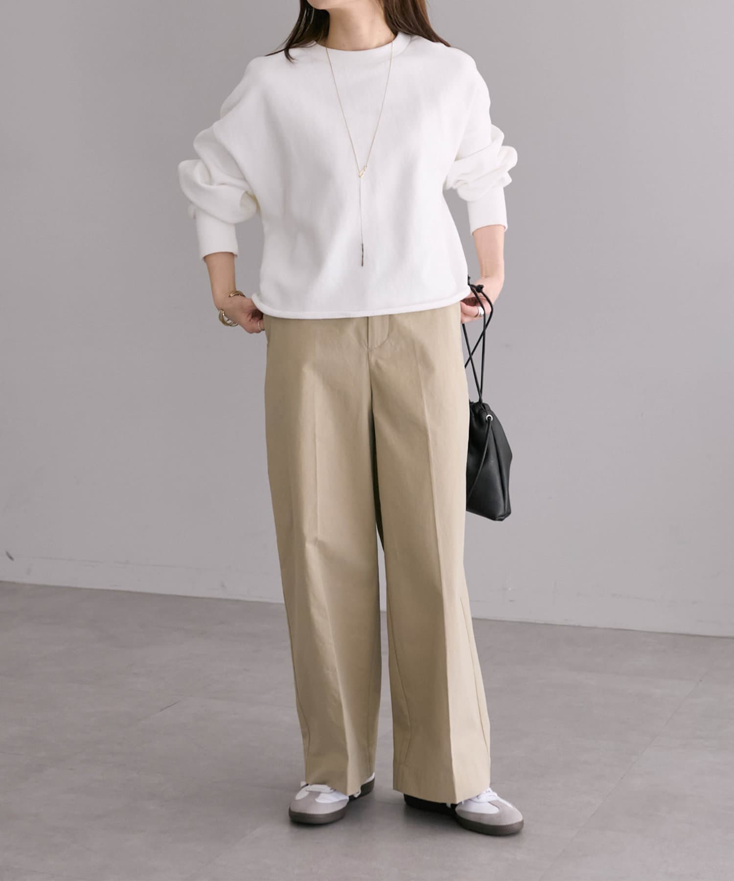 程よい厚みの生地感ながらも、体の動きに沿う柔らかさがあります。