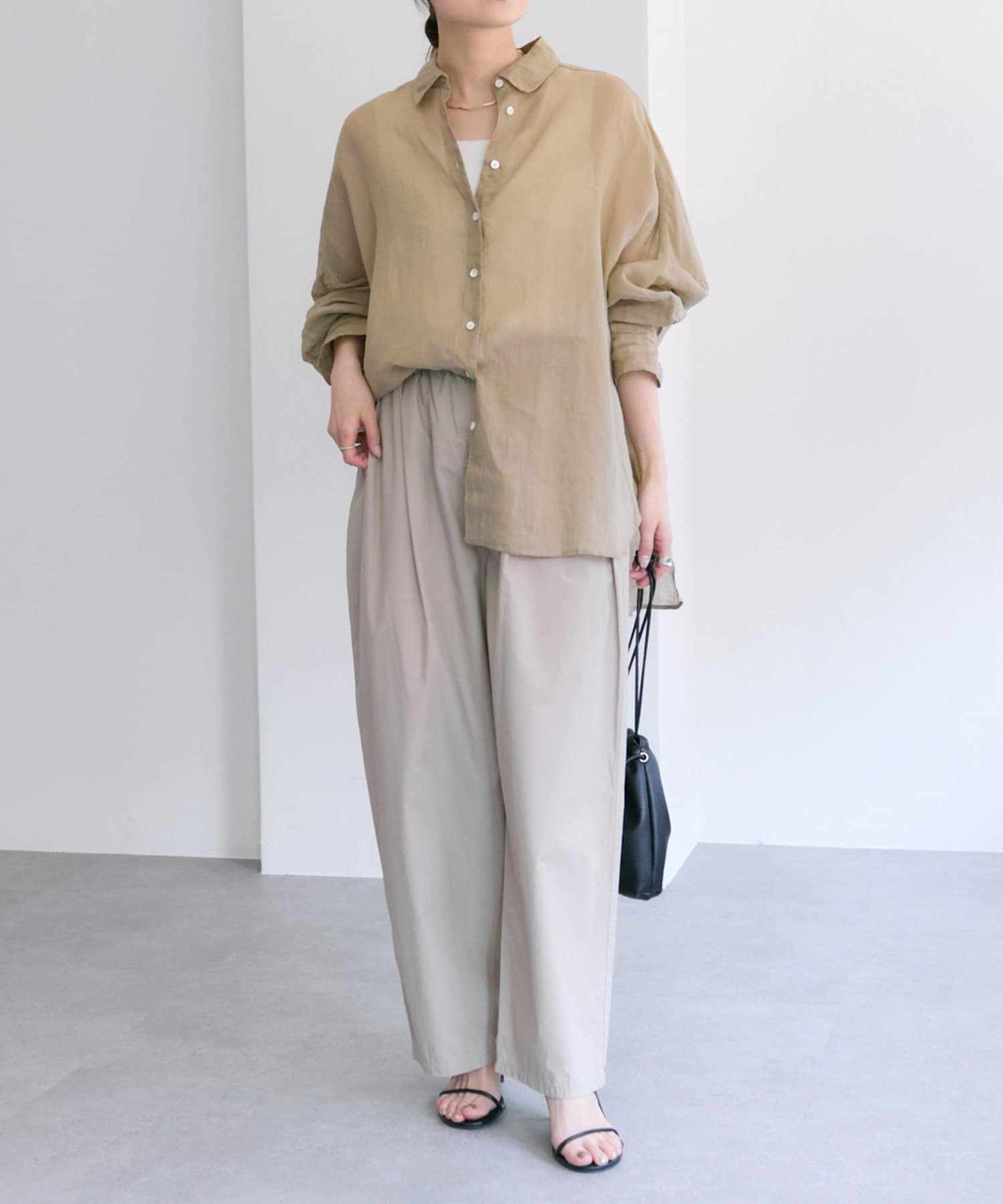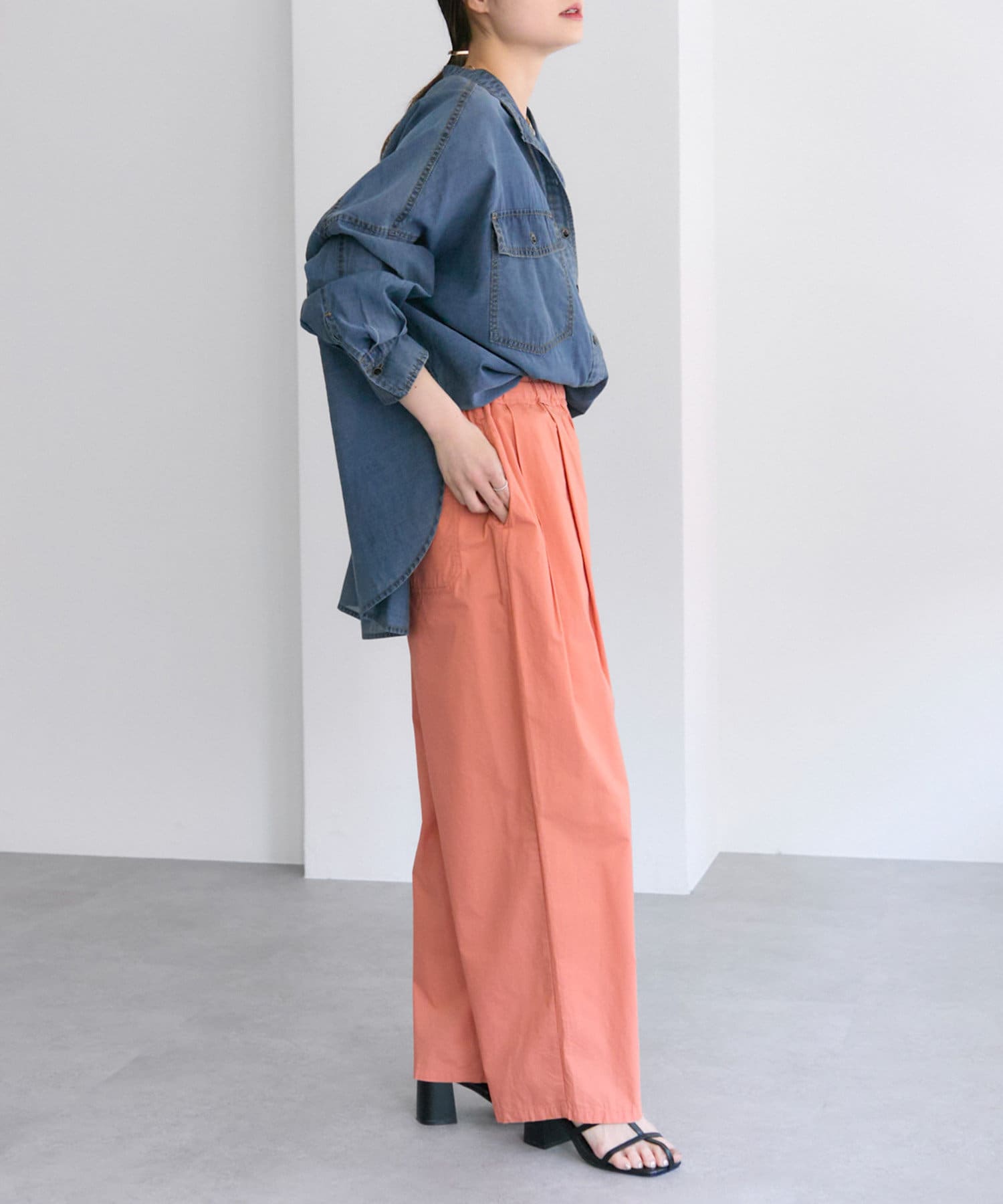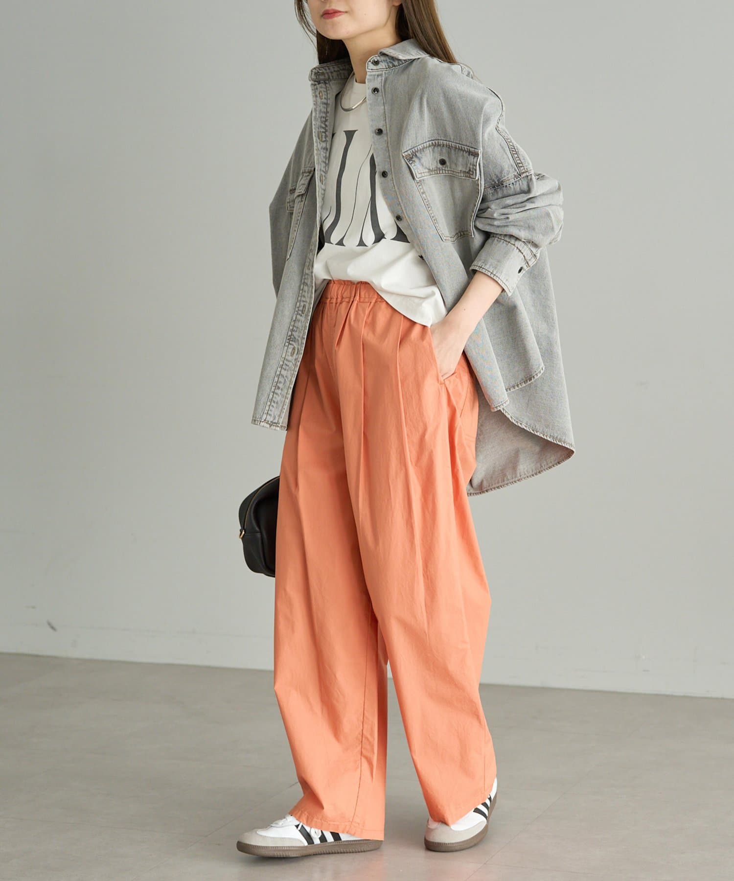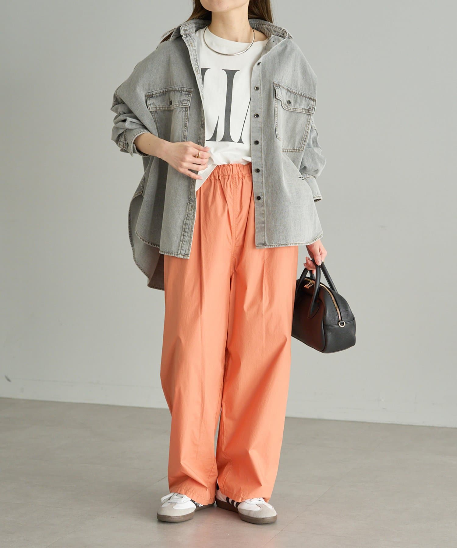 ボリューム感のあるボトムスなので、すっきりとしたロンTやTシャツ合わせが好相性。