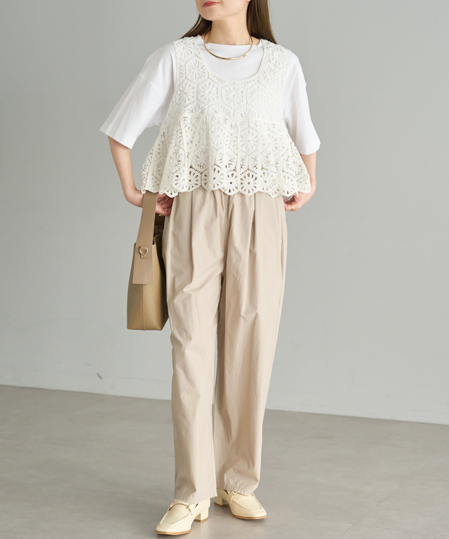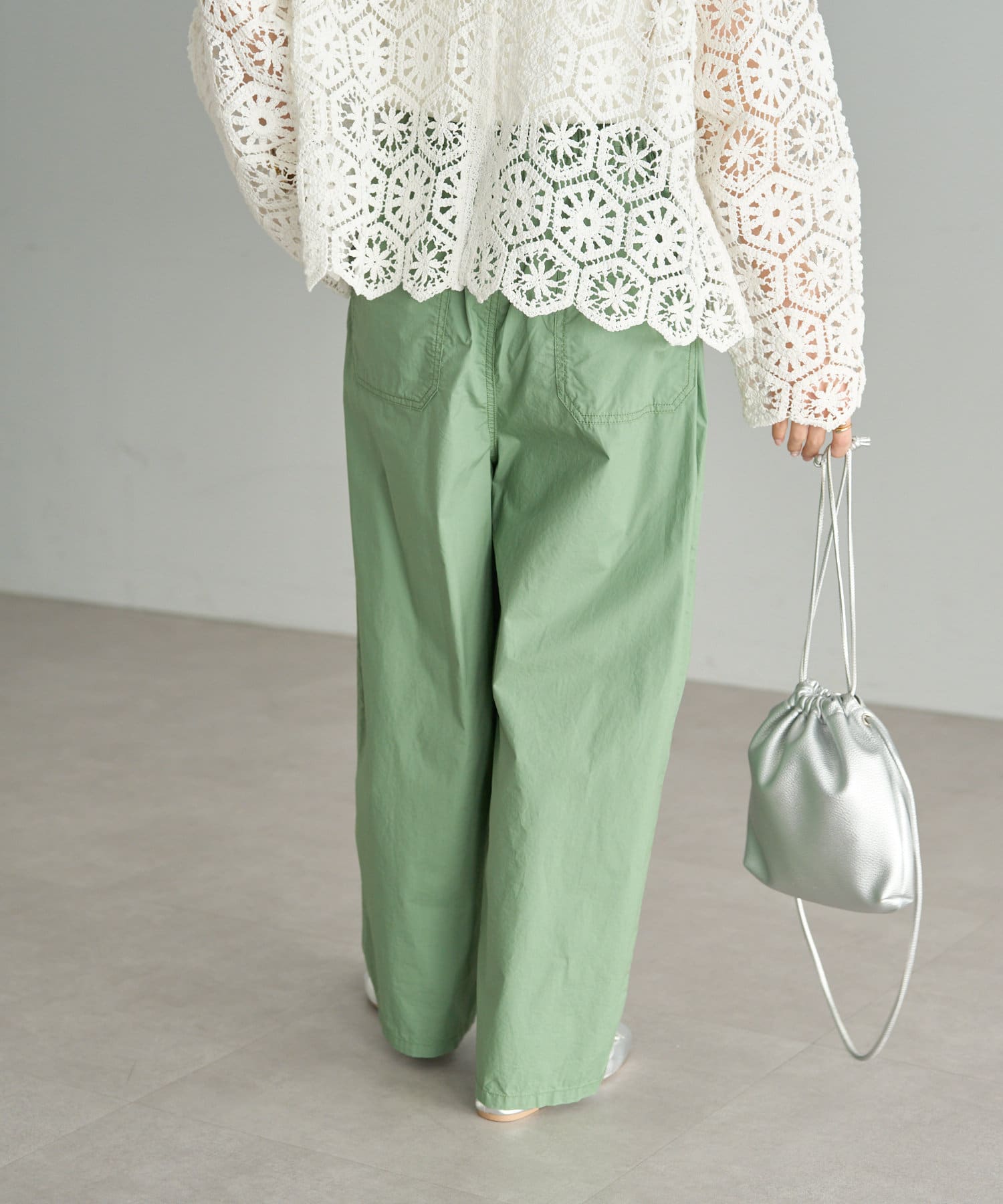 ウエストは総ゴム+紐で、様々な体系の方に合いやすく、脱ぎ穿きがしやすい嬉しい仕様。