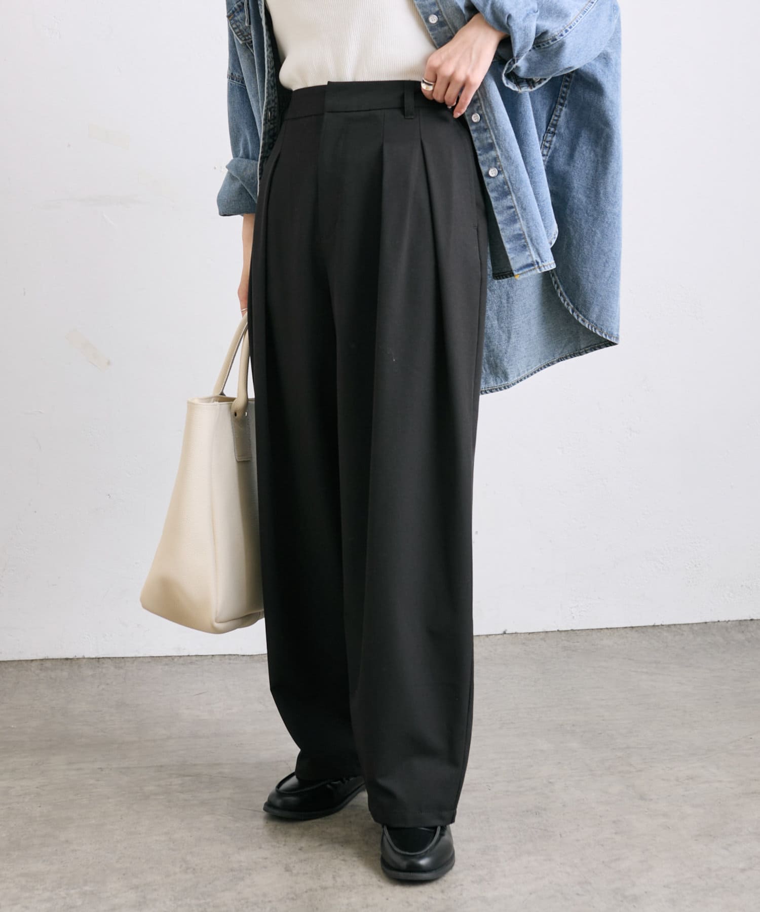 ◇ベーシックながらもシルエットにこだわりを感じるタックパンツ◇