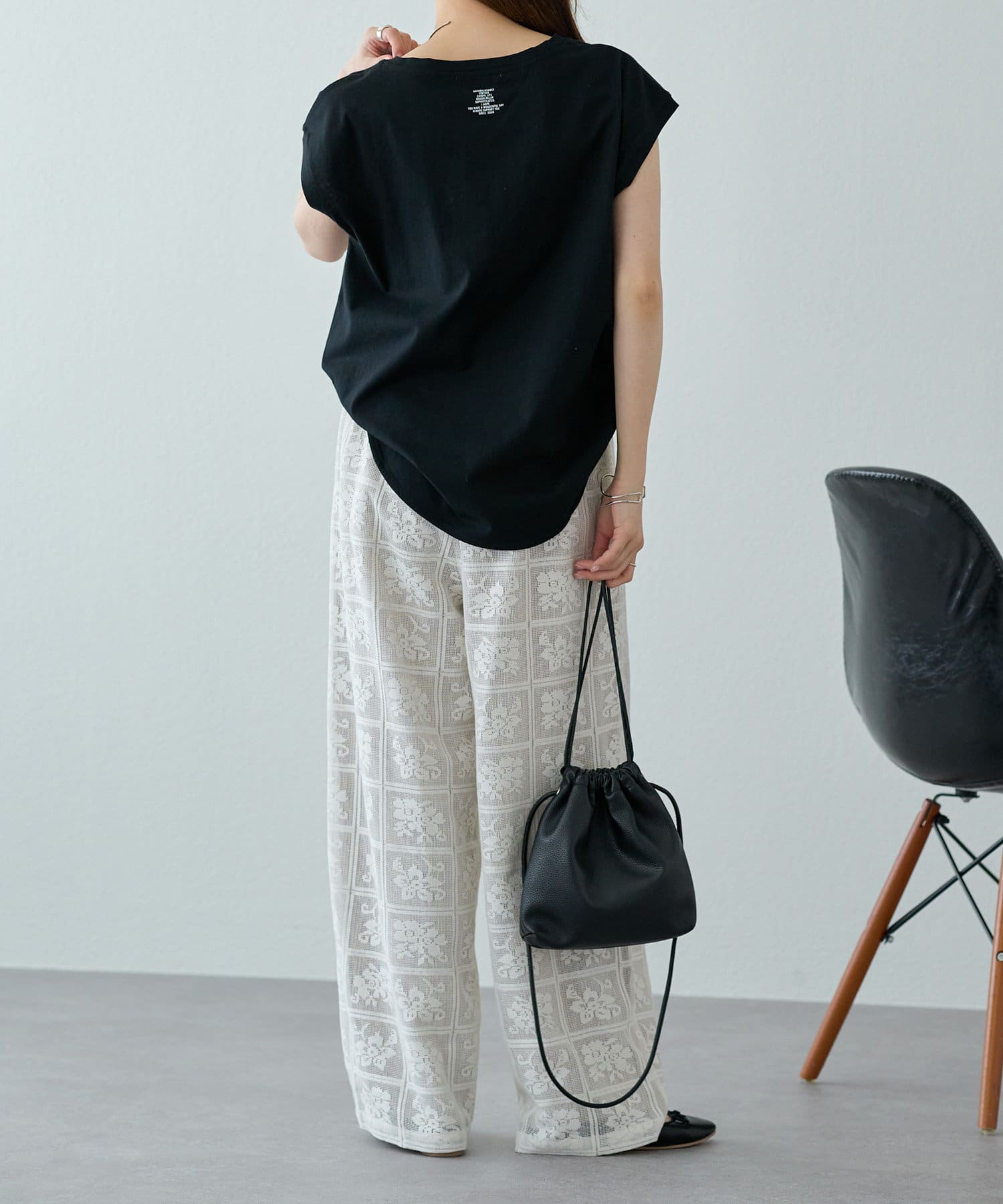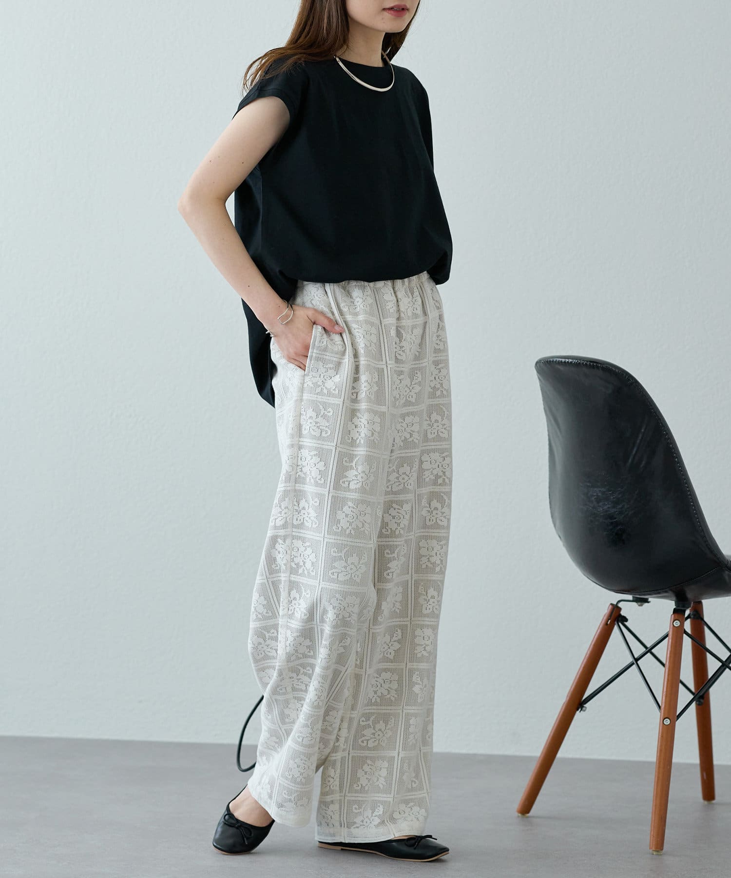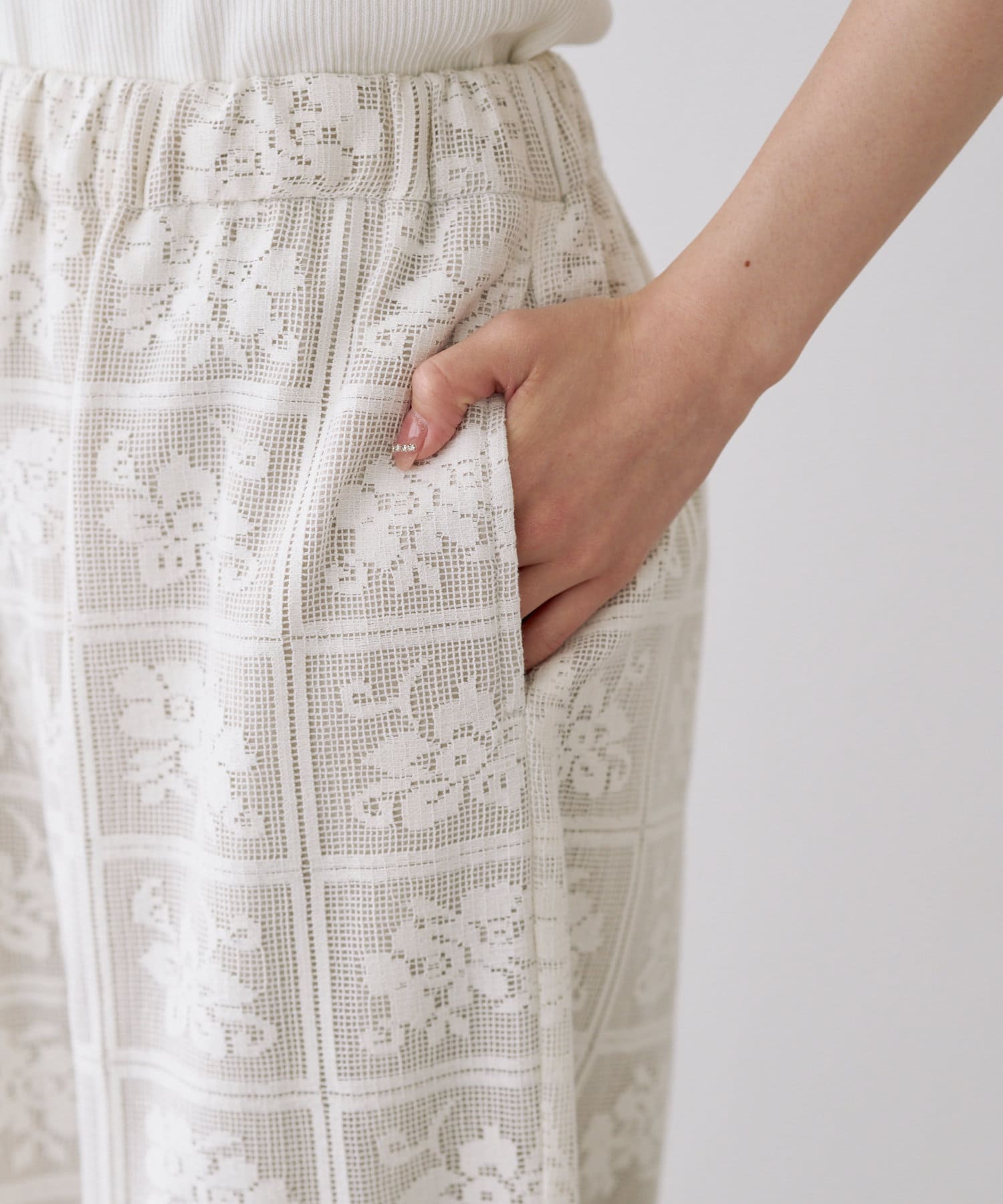 クロシェットレース風生地を使用し、柔らかくレース自体に程よい厚みのある生地感です。