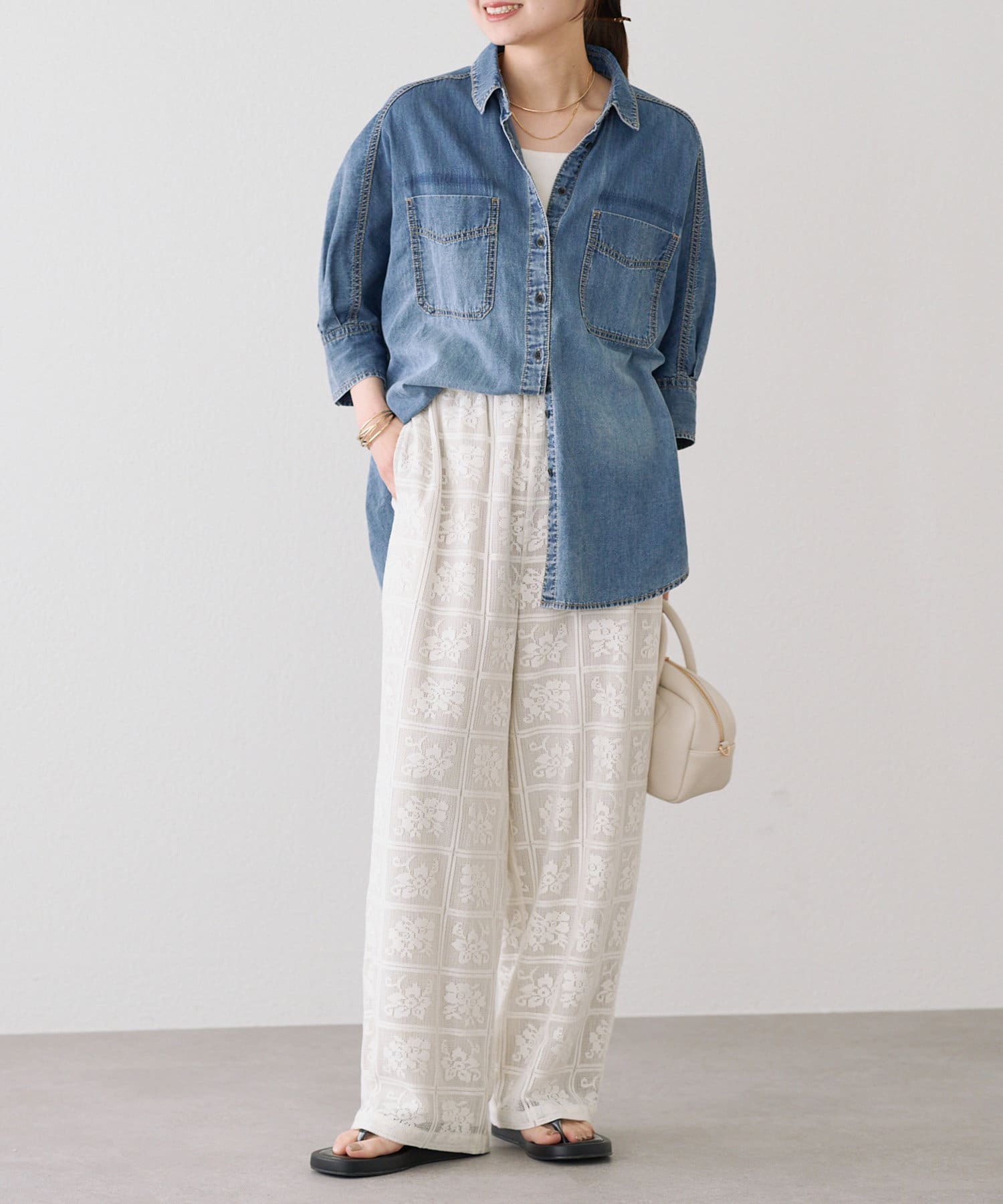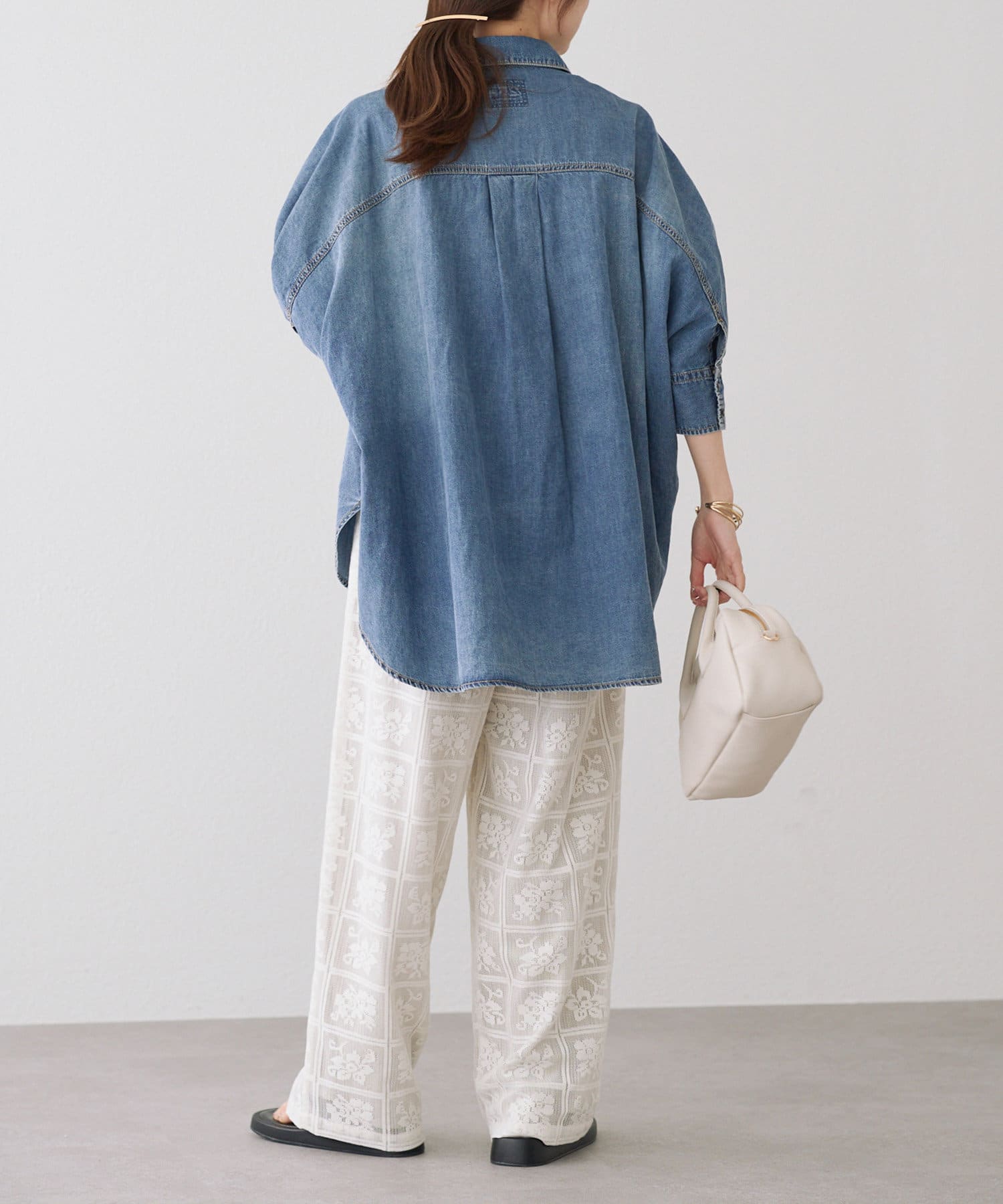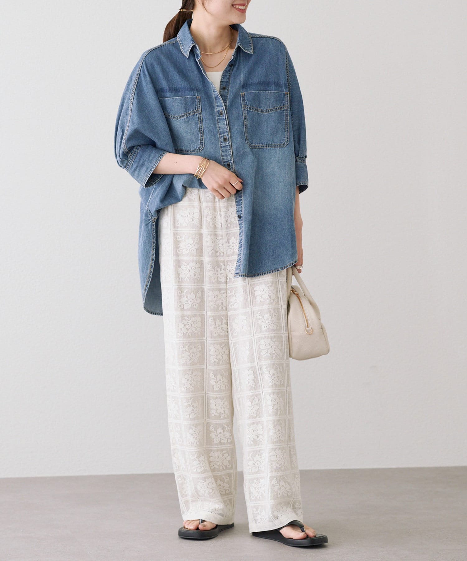 ストンと落ちたストレートシルエットでコーディネートがスッキリ見え。