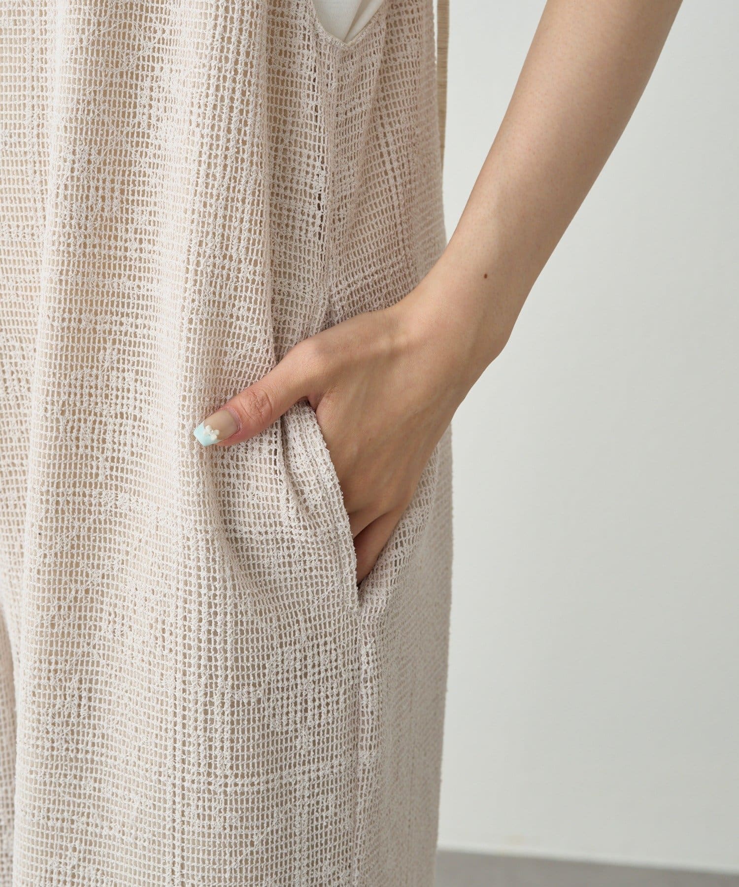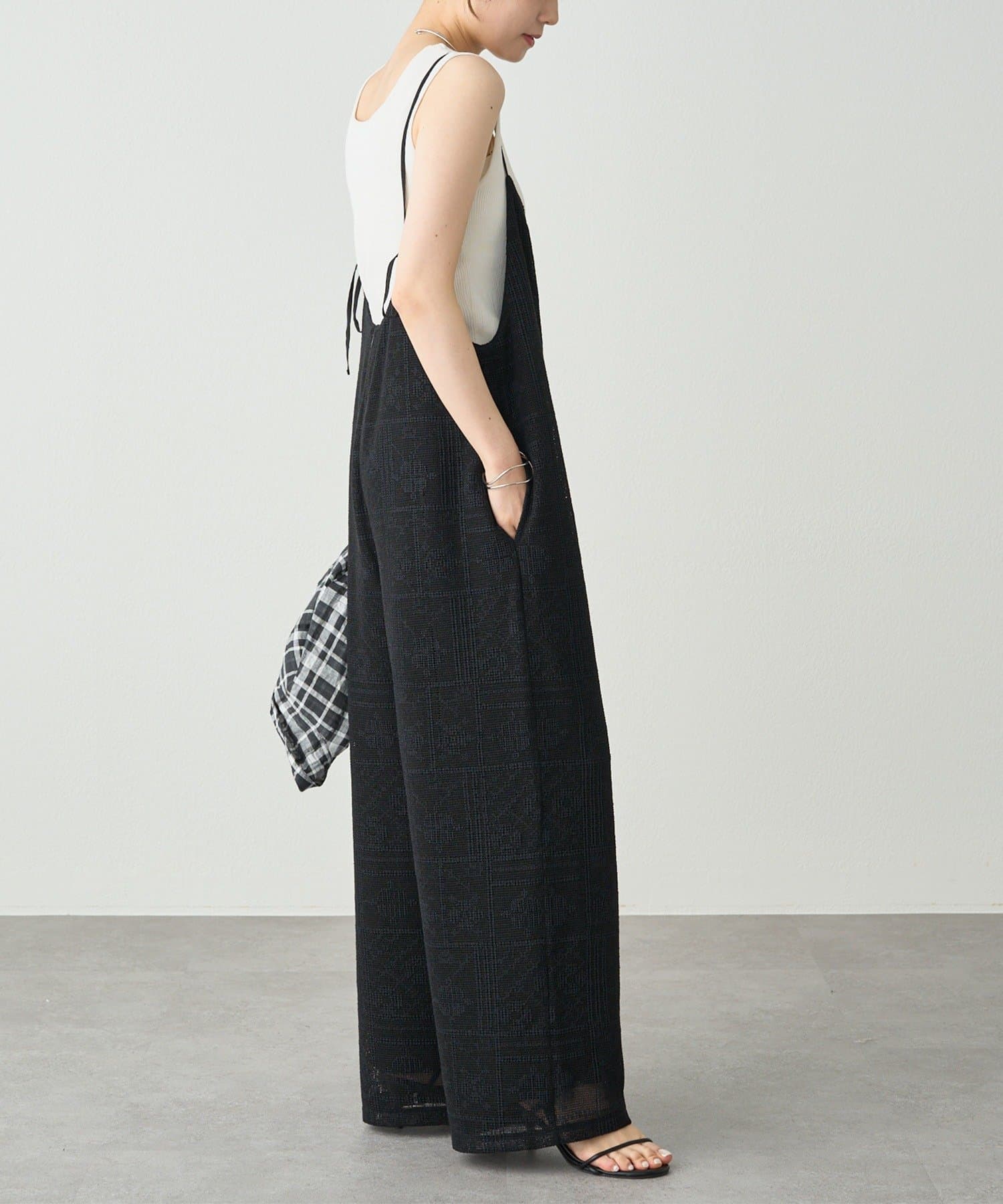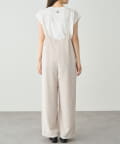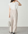 カジュアルな印象が強いサロペットを女性らしくフェミニンな雰囲気をプラスして仕上げたアイテムです。