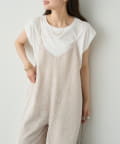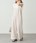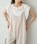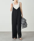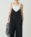リラックス感のあるシルエットですが、華奢な肩紐とVネックの胸当てがすっきり見えを叶えてくれます。