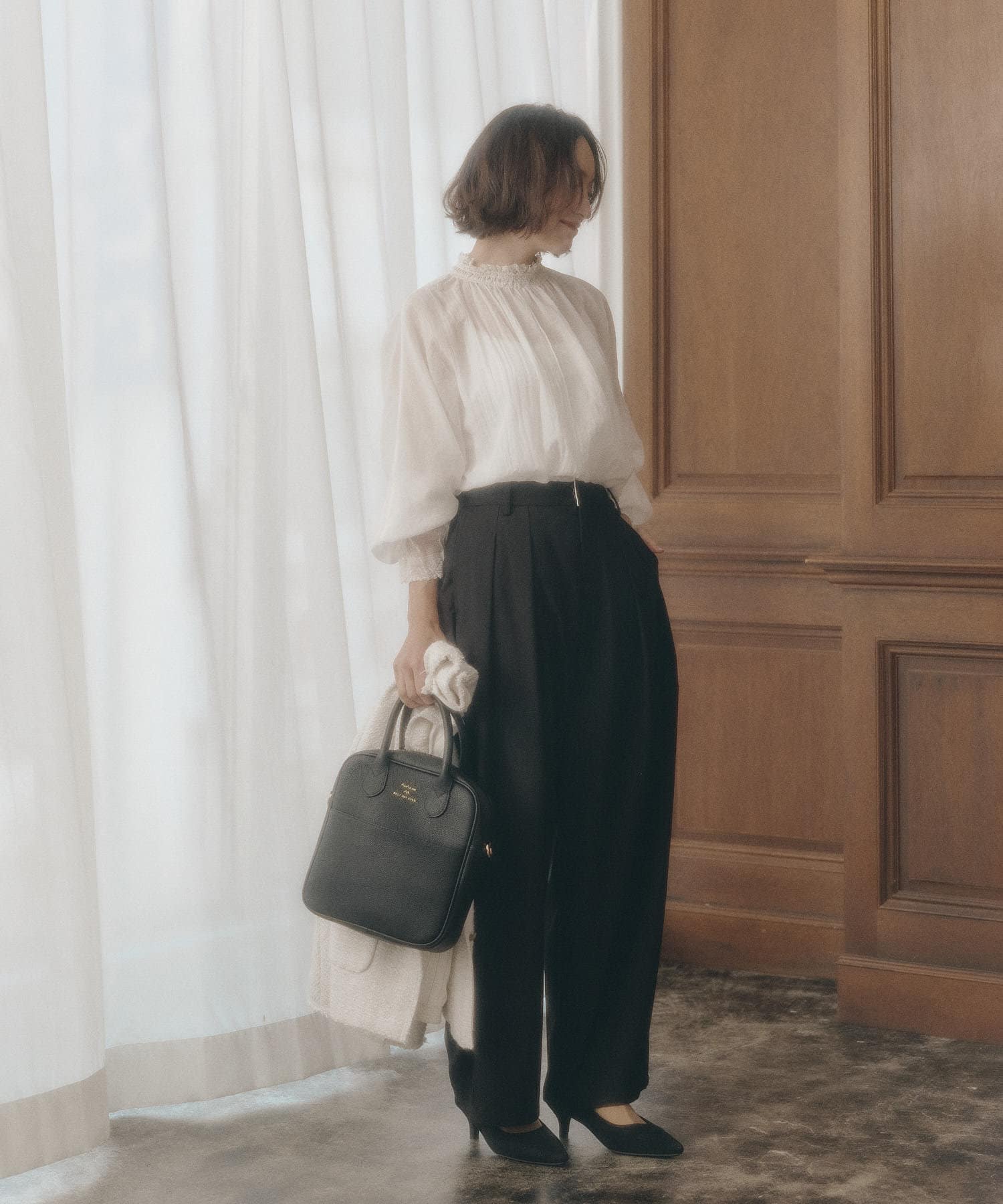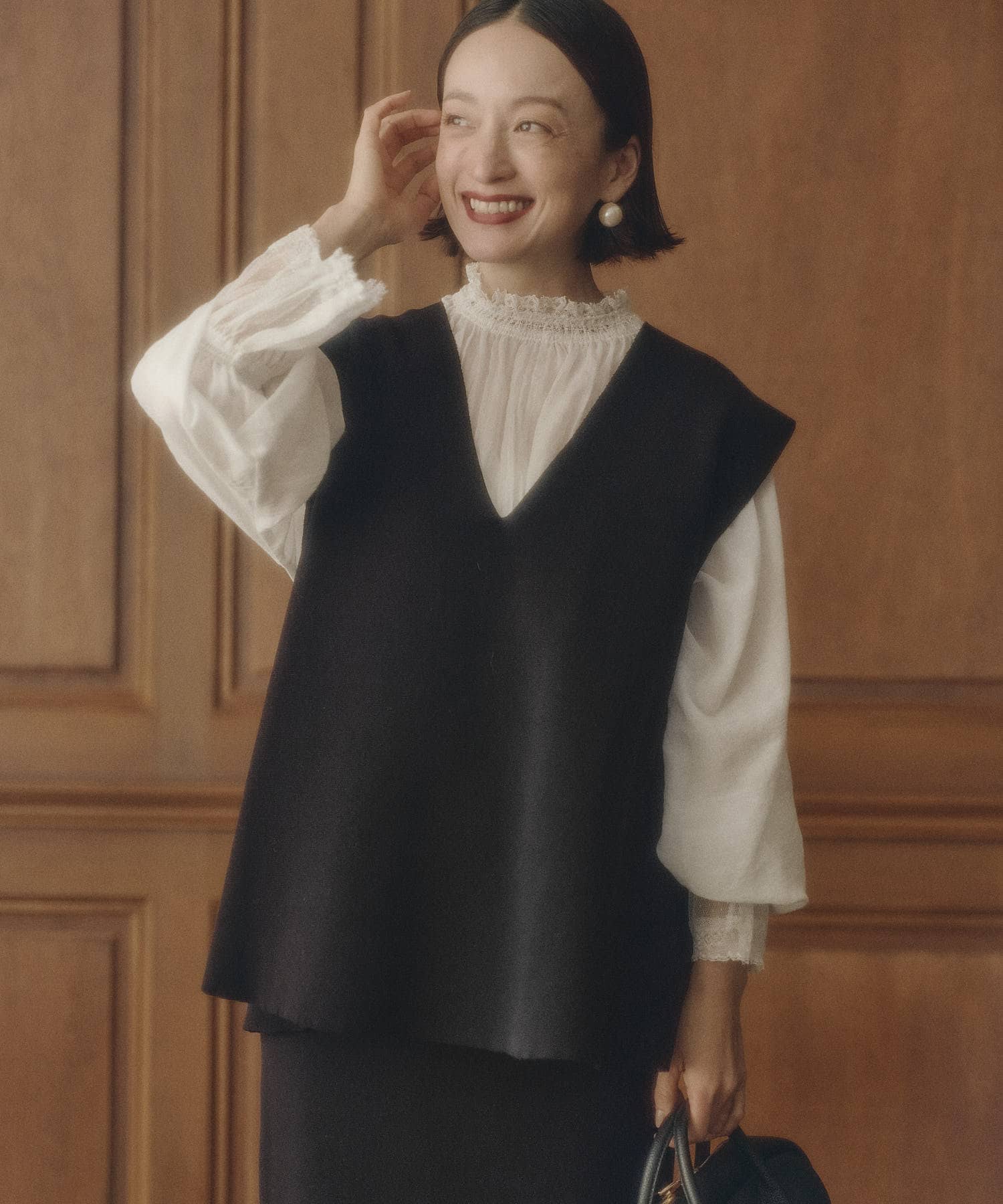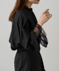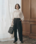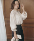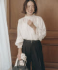 スタイリングに華やかさを添えるプルオーバーブラウス。