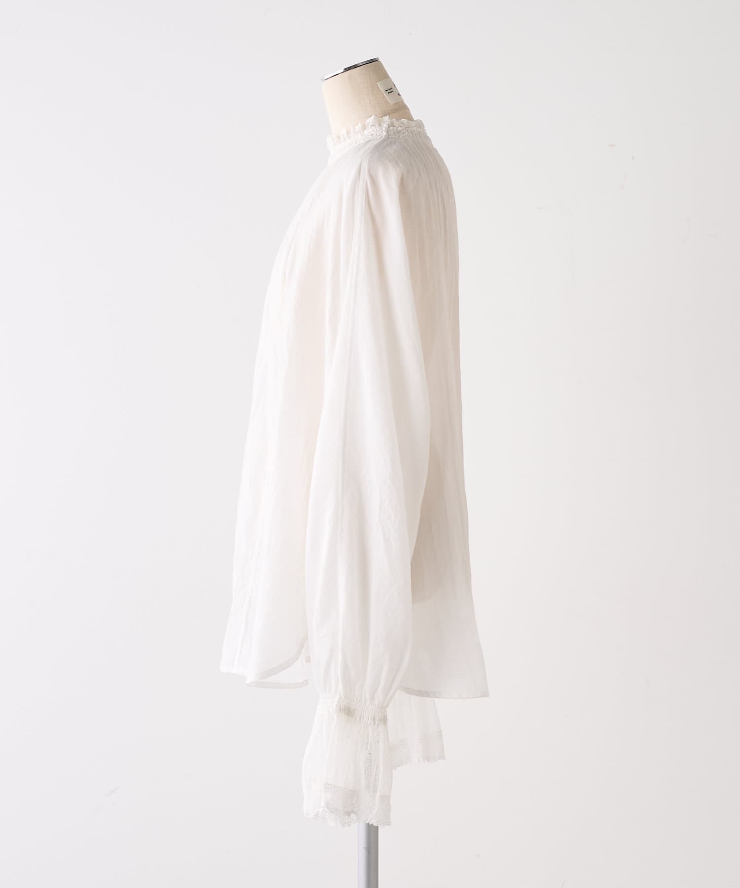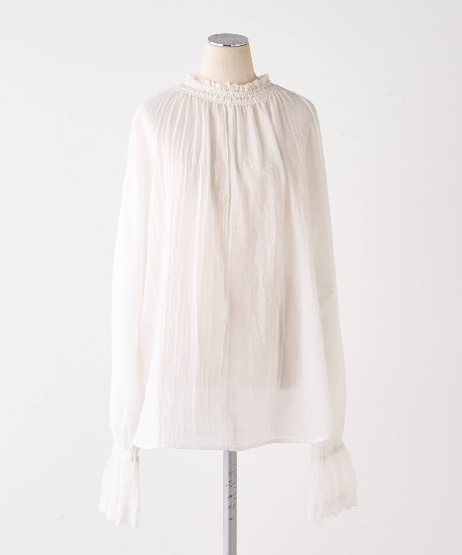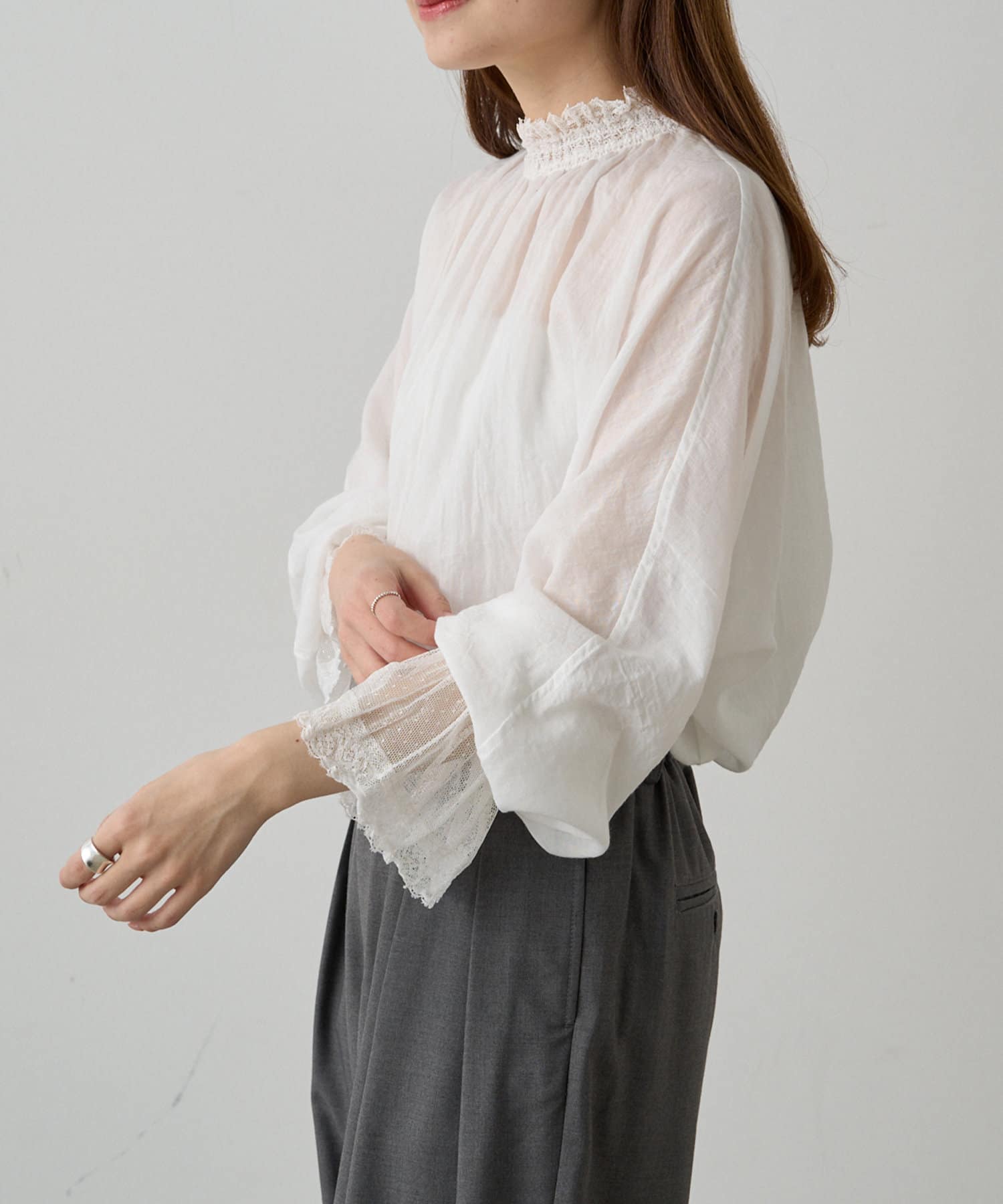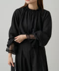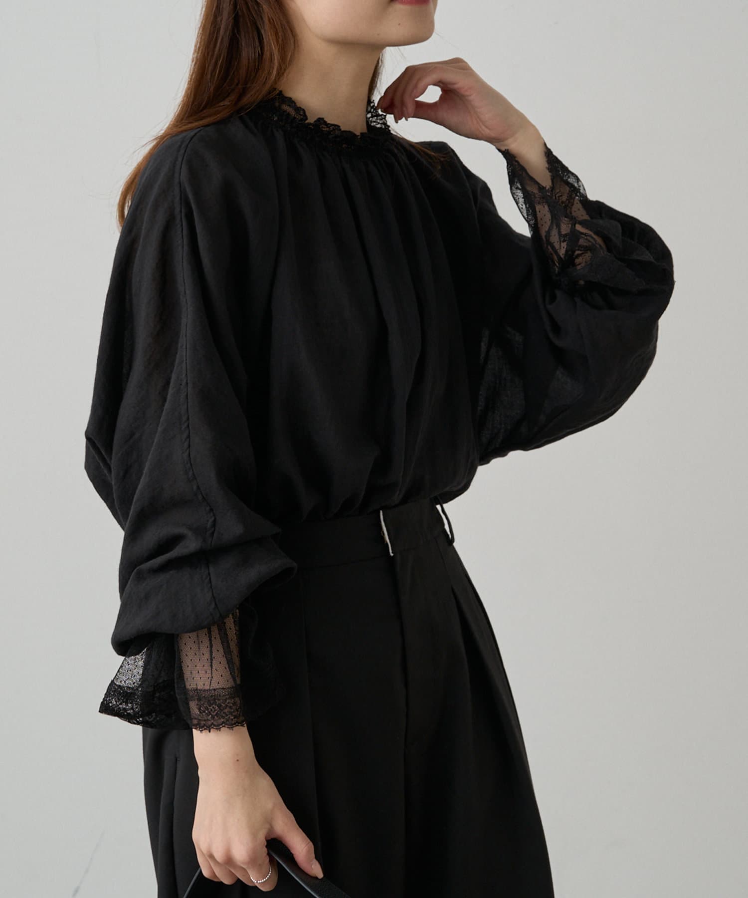 襟袖レースプチハイネックブラウス