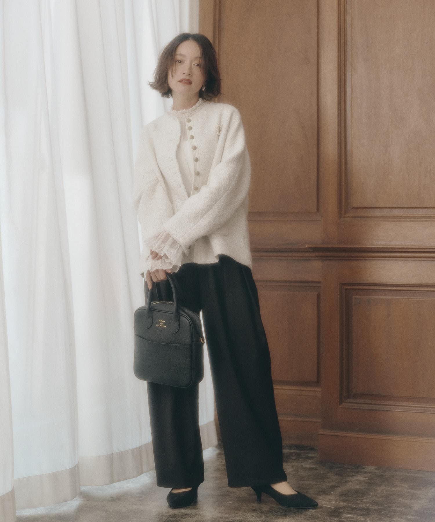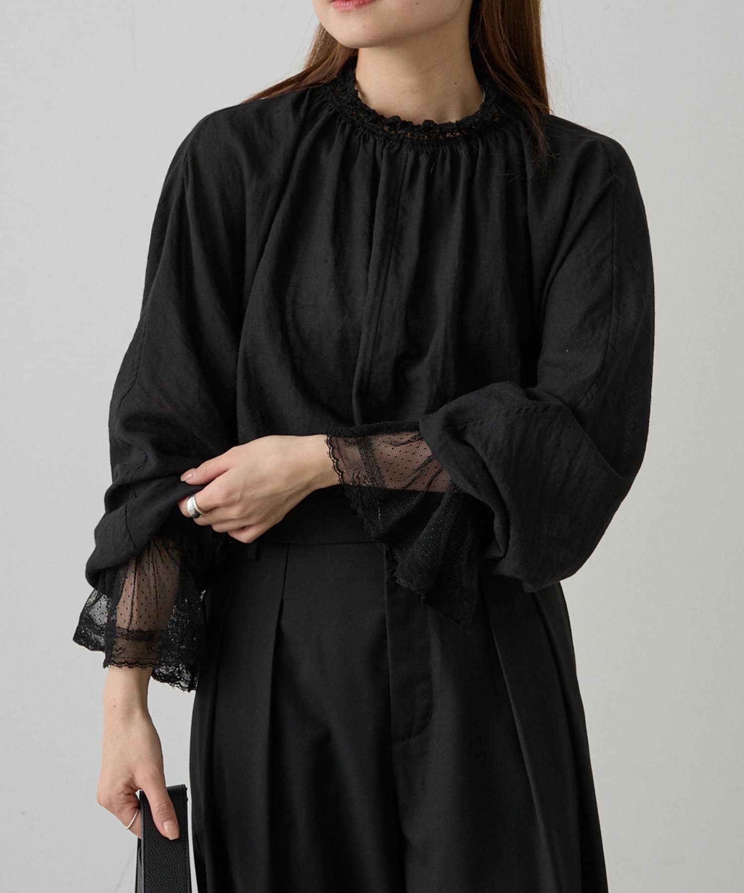 カーディガンやジャケットと重ねると袖口からレースが覗き素敵なアクセントに。