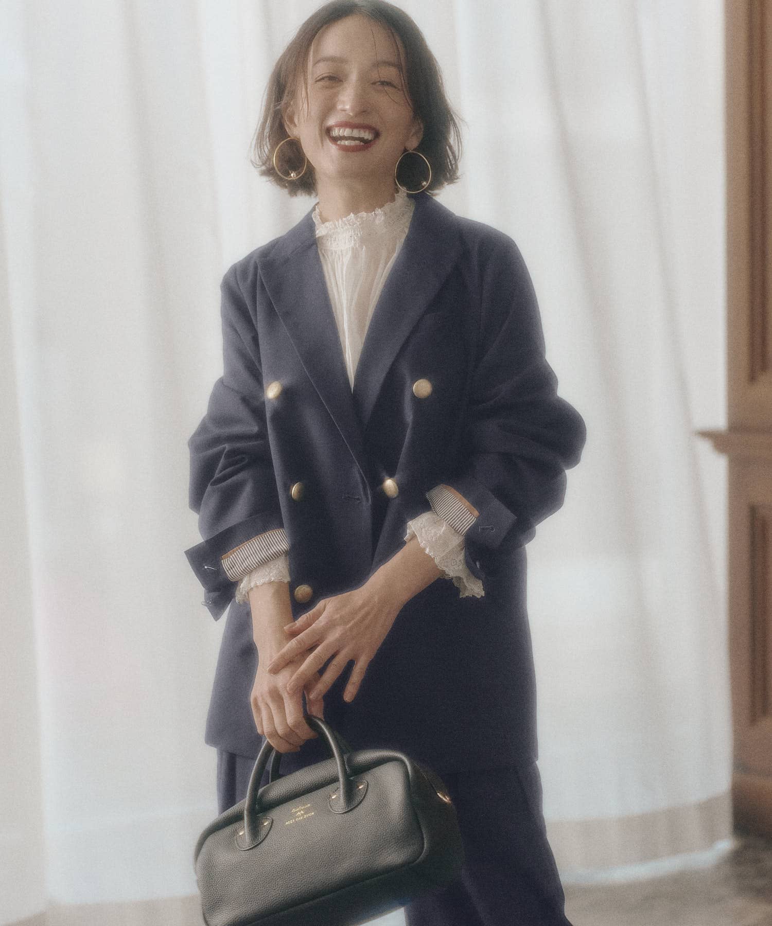 ボトムはスラックスからスカートまで幅広く相性が良く、