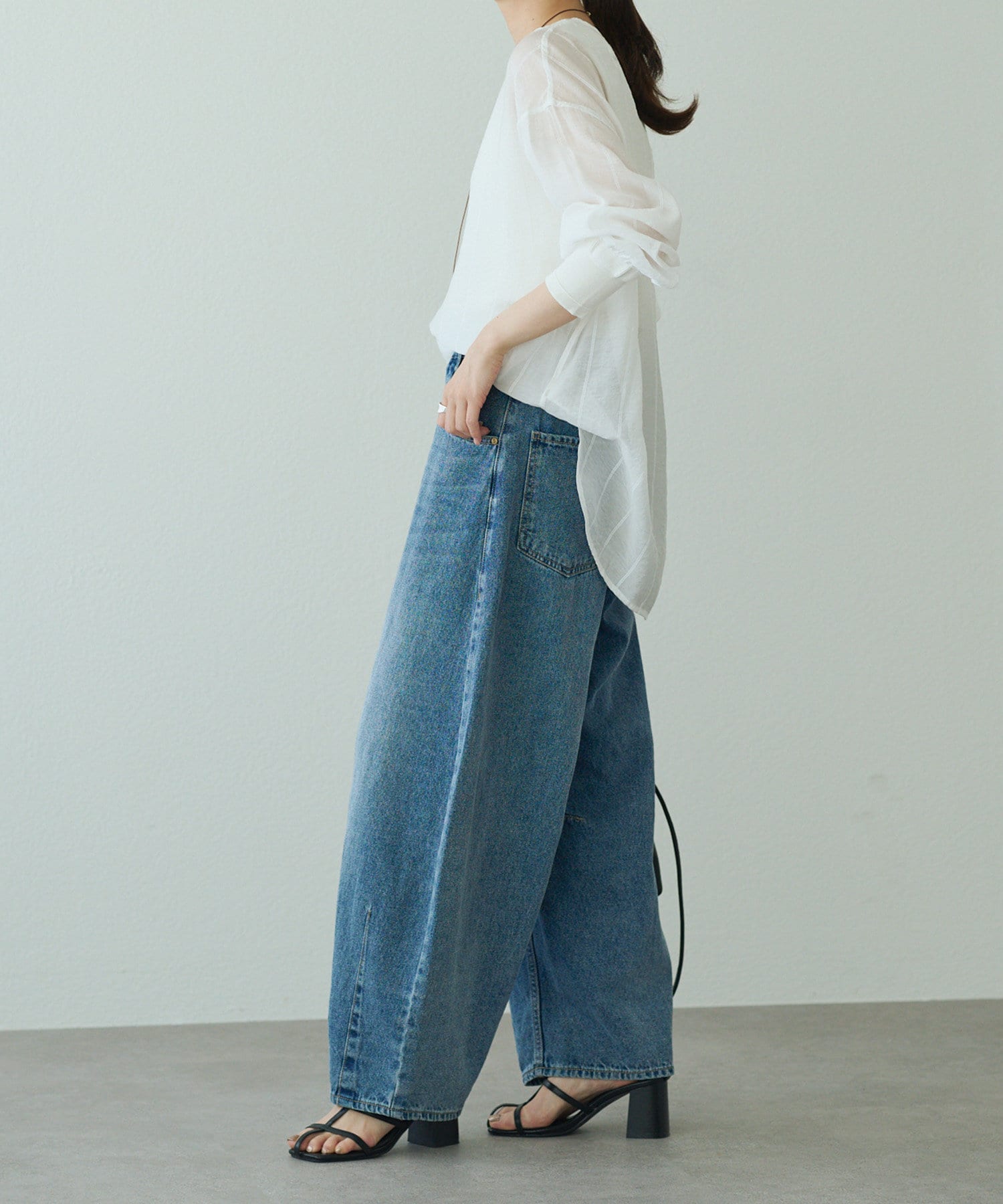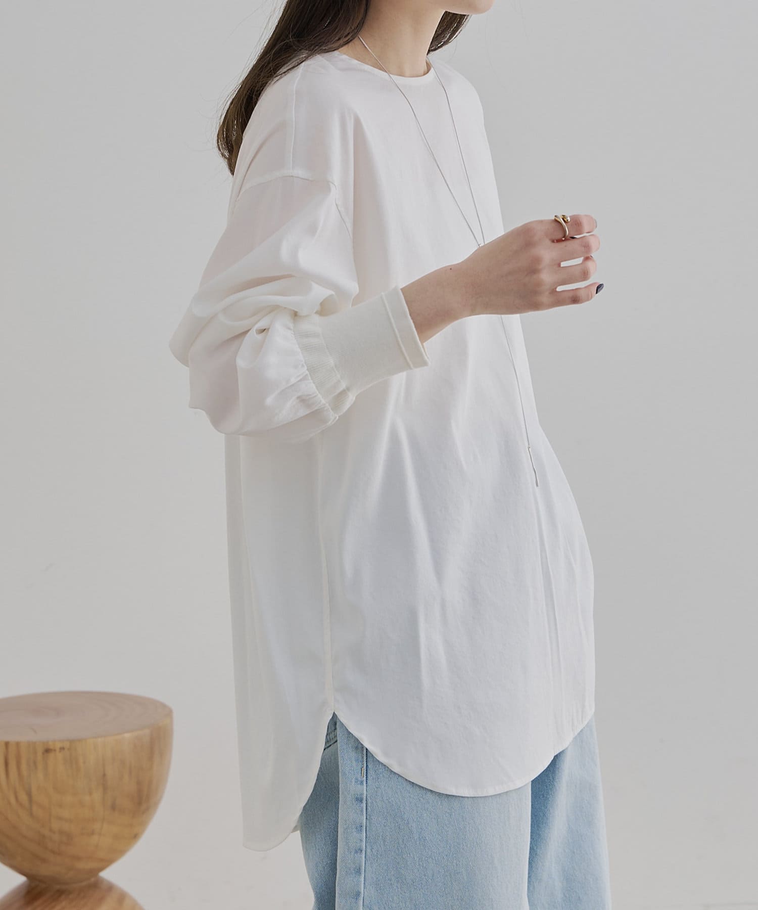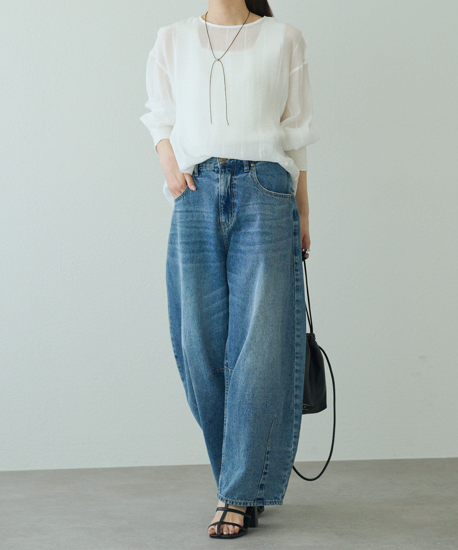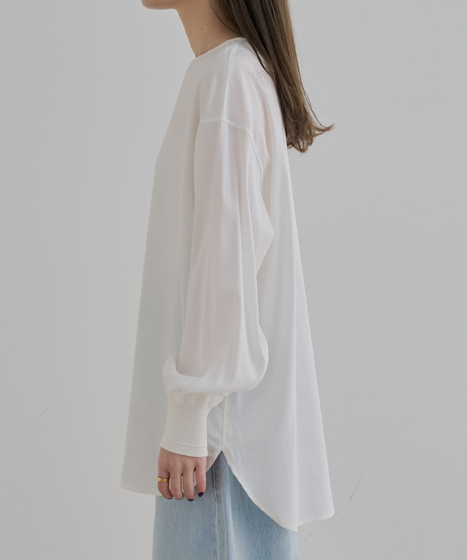 軽い仕上がりながらも、ややオーバーなシルエットとラウンドヘムラインが大人にスタイリングに最適な1枚。