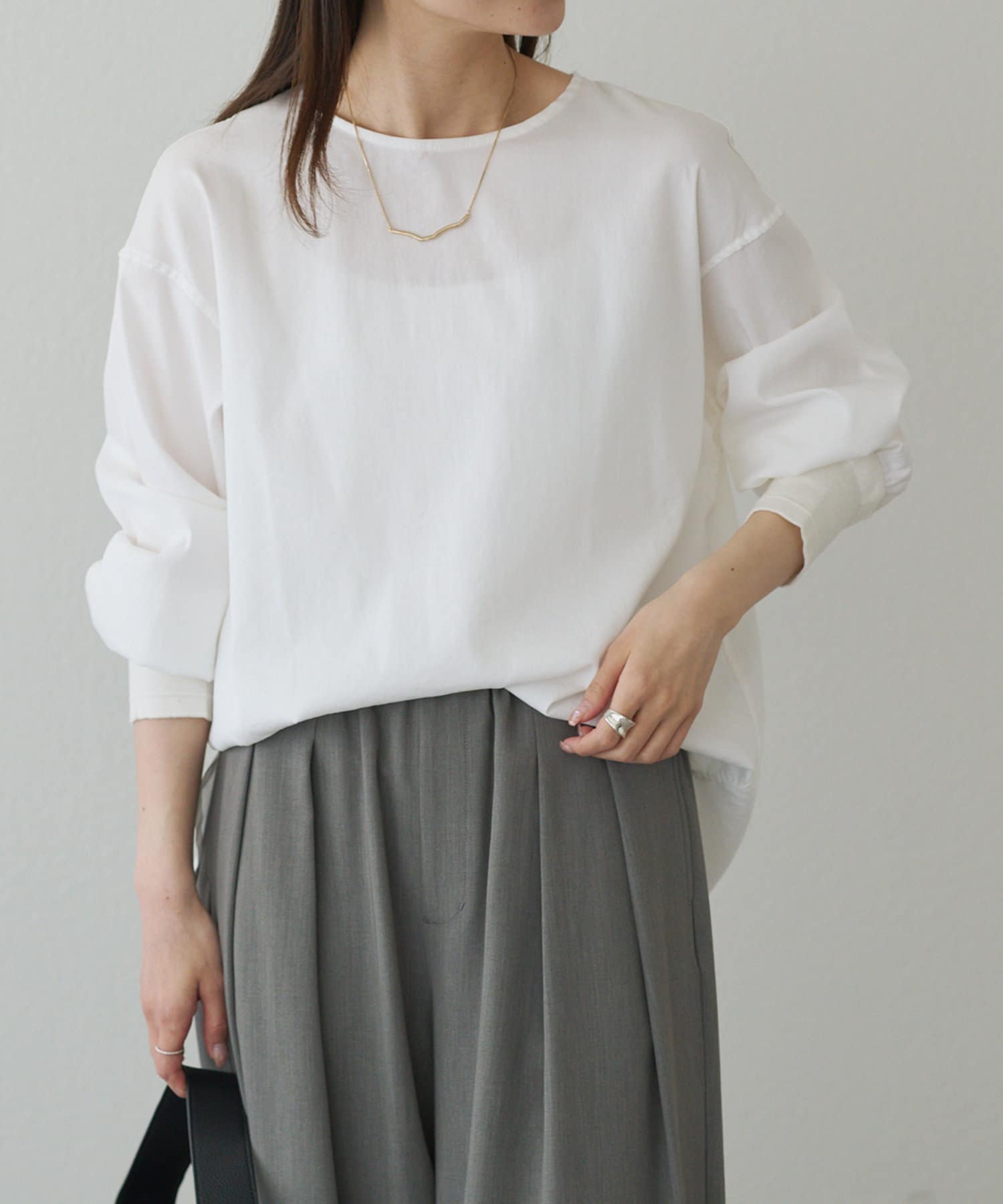 1枚でもレイヤードインナーとしても使える万能ブラウス。