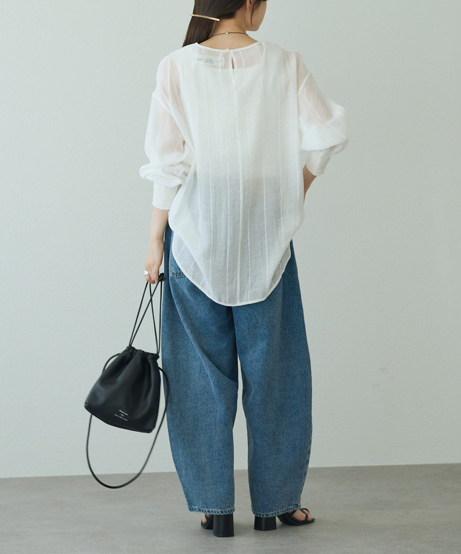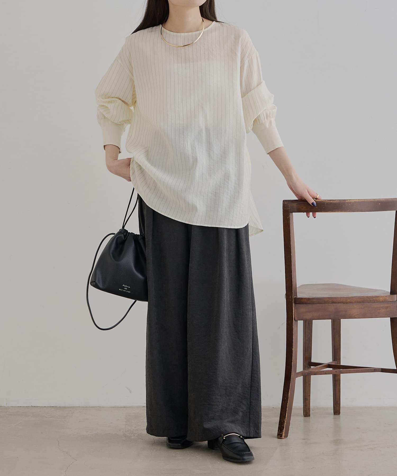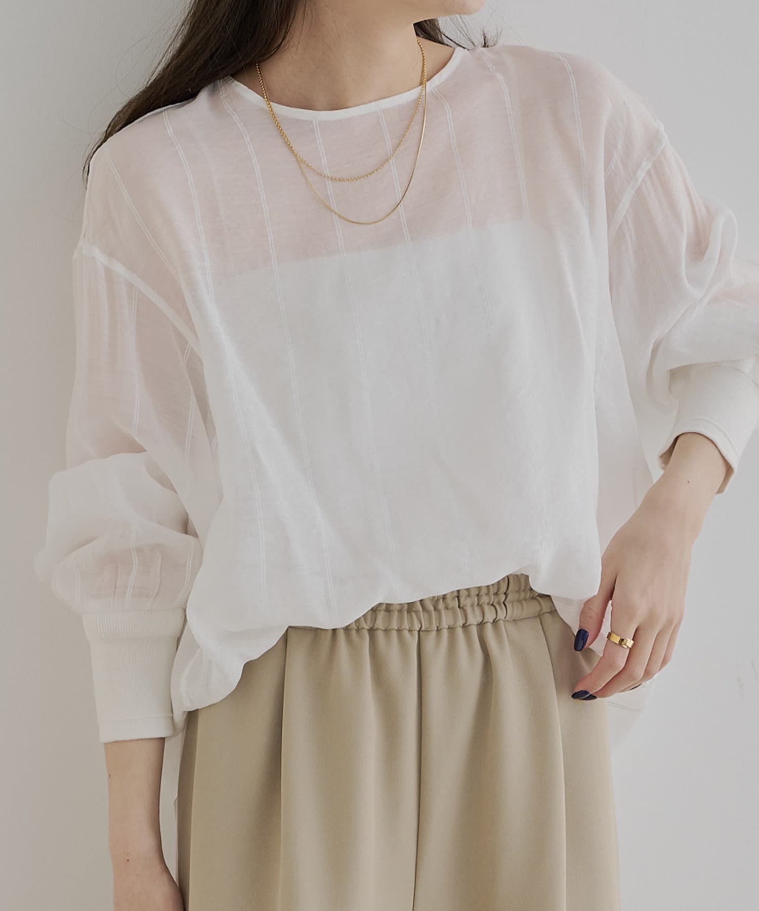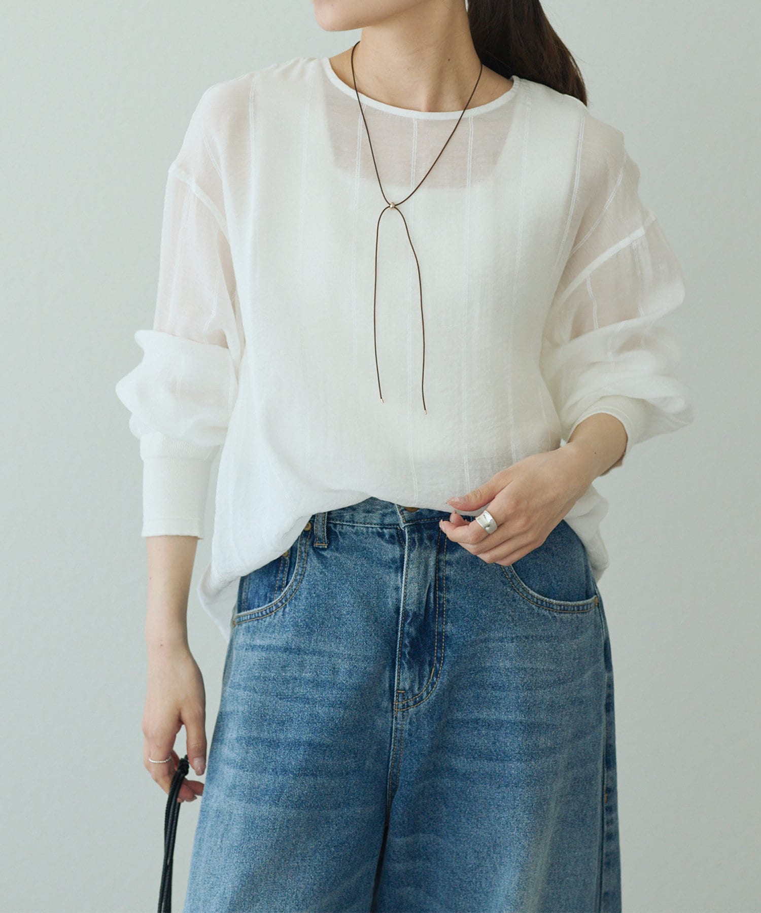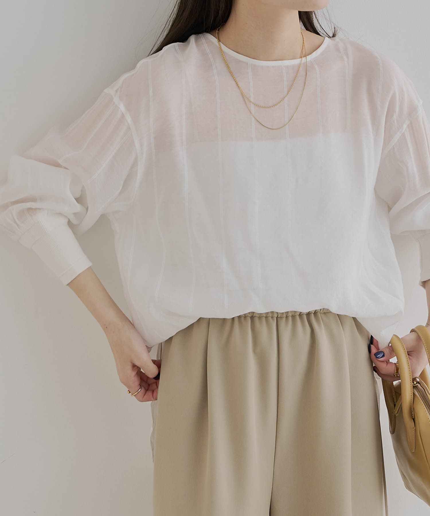 やや透け感のある、さらりとした軽やかな素材感で長時間の着用でも快適に過ごせます。