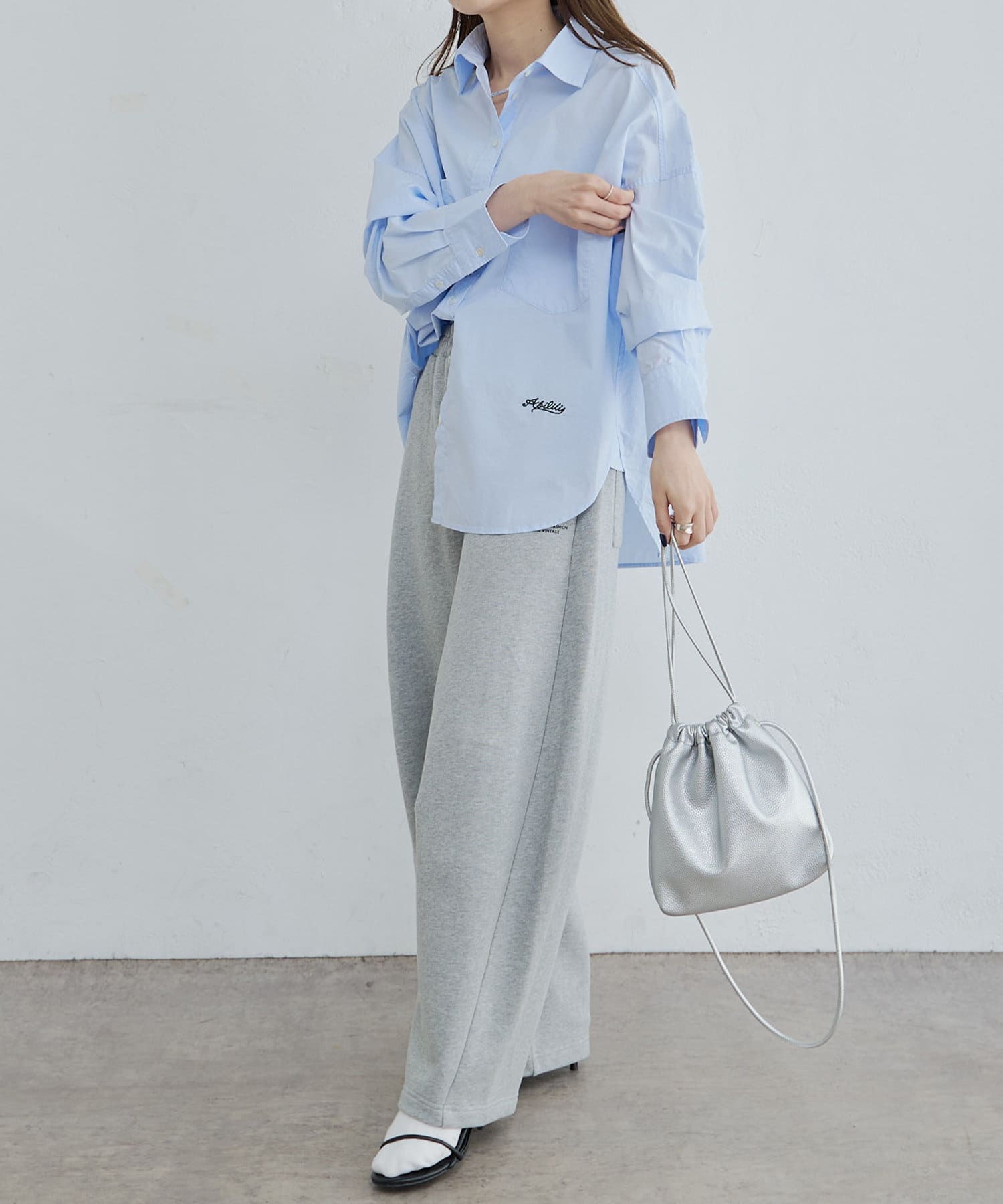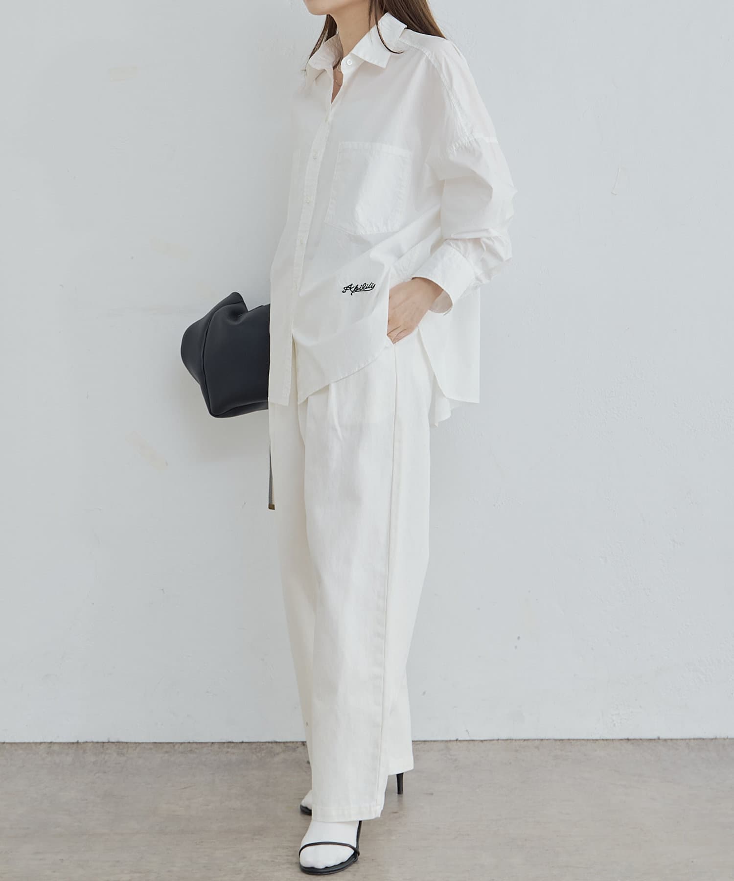 胸元のパッチポケットとロゴ刺繍がカジュアルテイストなアクセントをプラス。