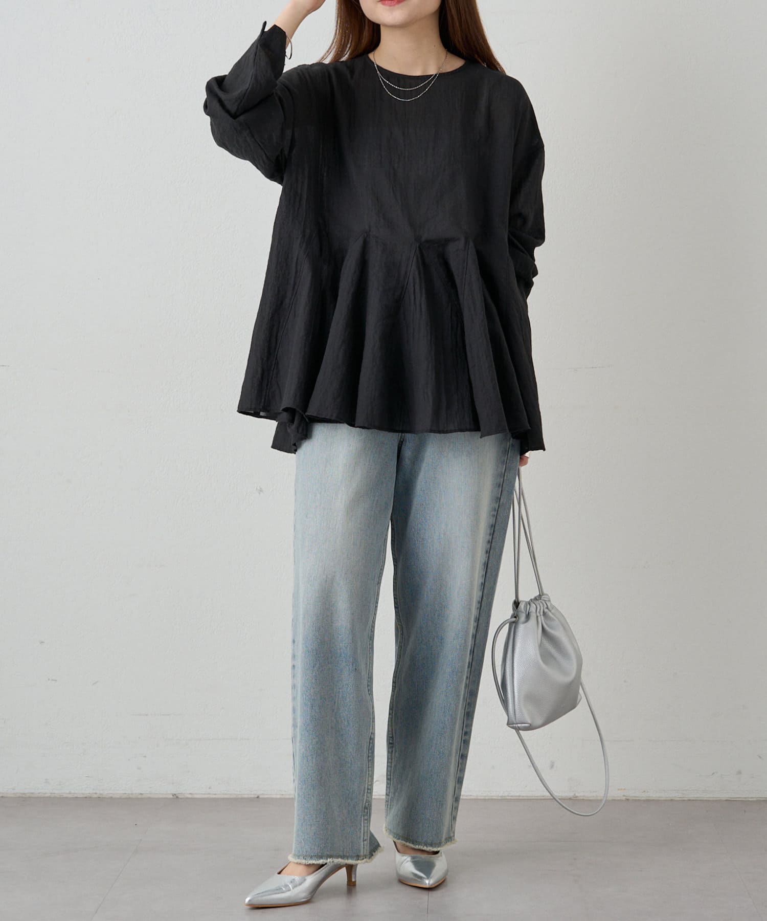 ◇ふんわりシルエットが柔らかな印象のペプラムブラウス◇