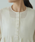 ブランド25周年を記念し、特別なシルクコットンファブリックを使用したフレアなブラウスになります。