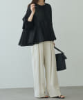 ナロースカートなどを合わせるとフレアなデザインと相まってレディな装いに。