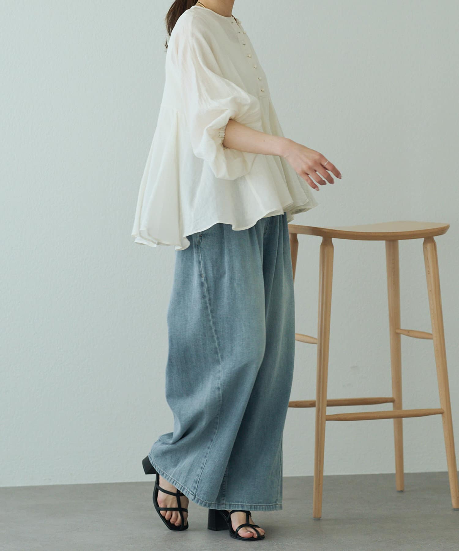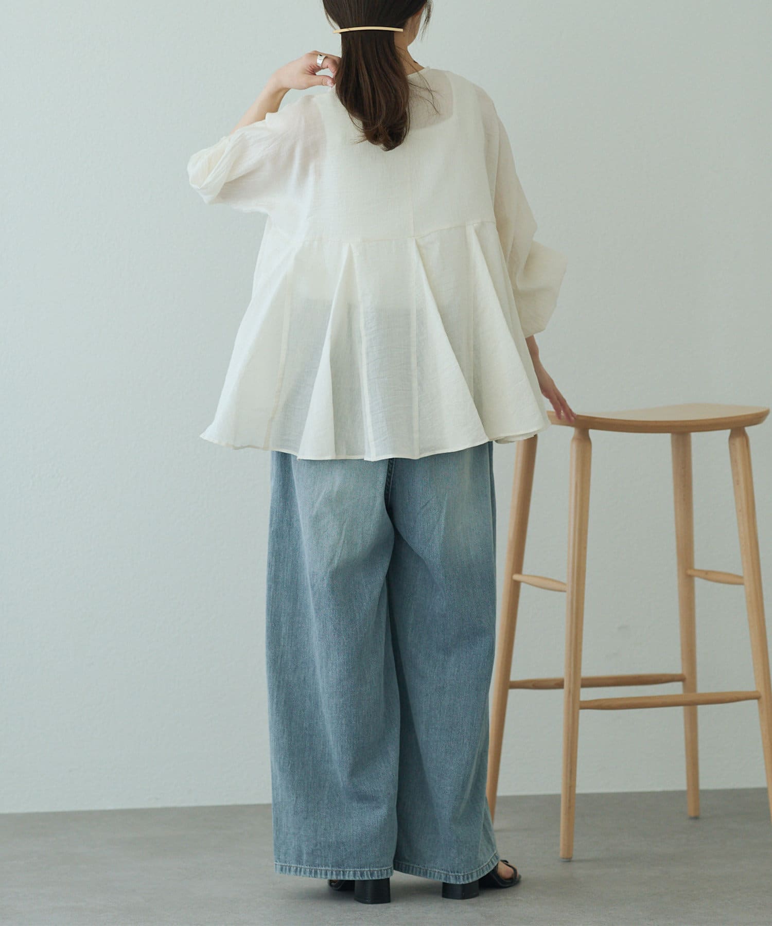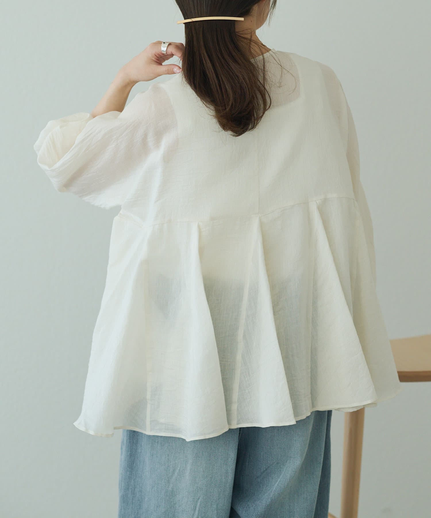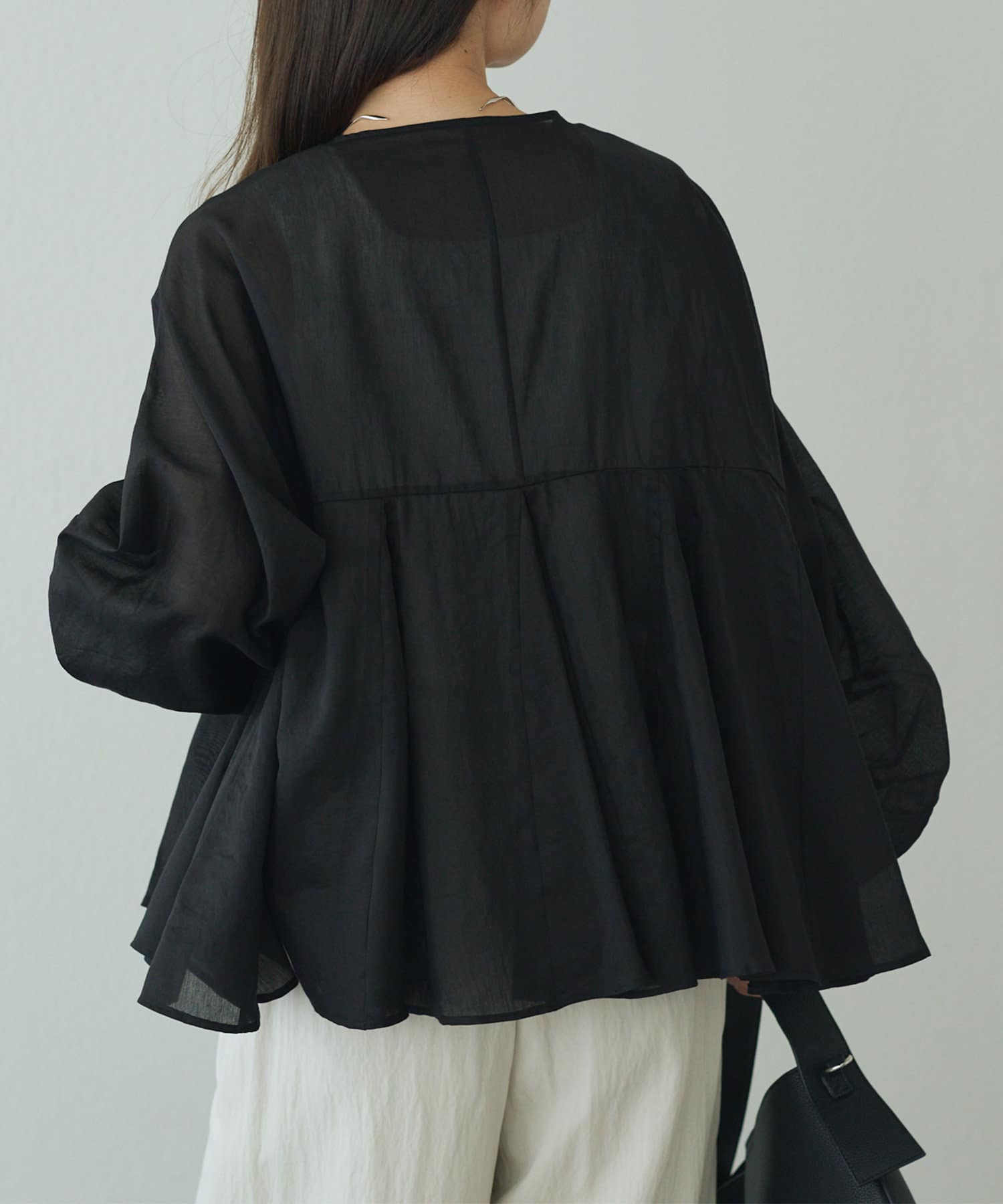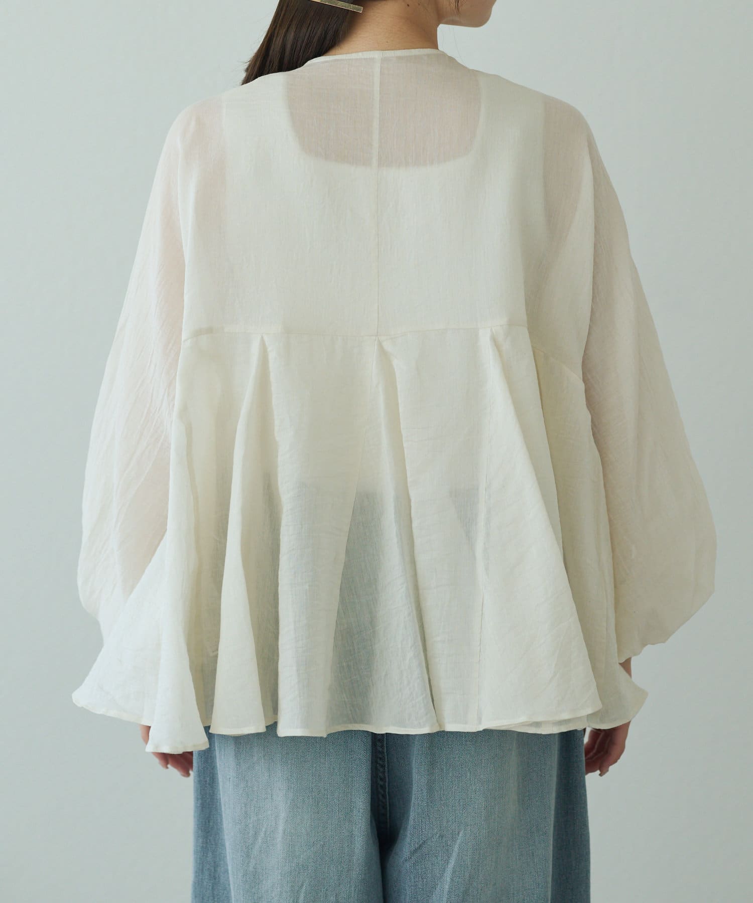 シアー素材で、エレガントかつ軽やかな印象で着用できるアイテムです。