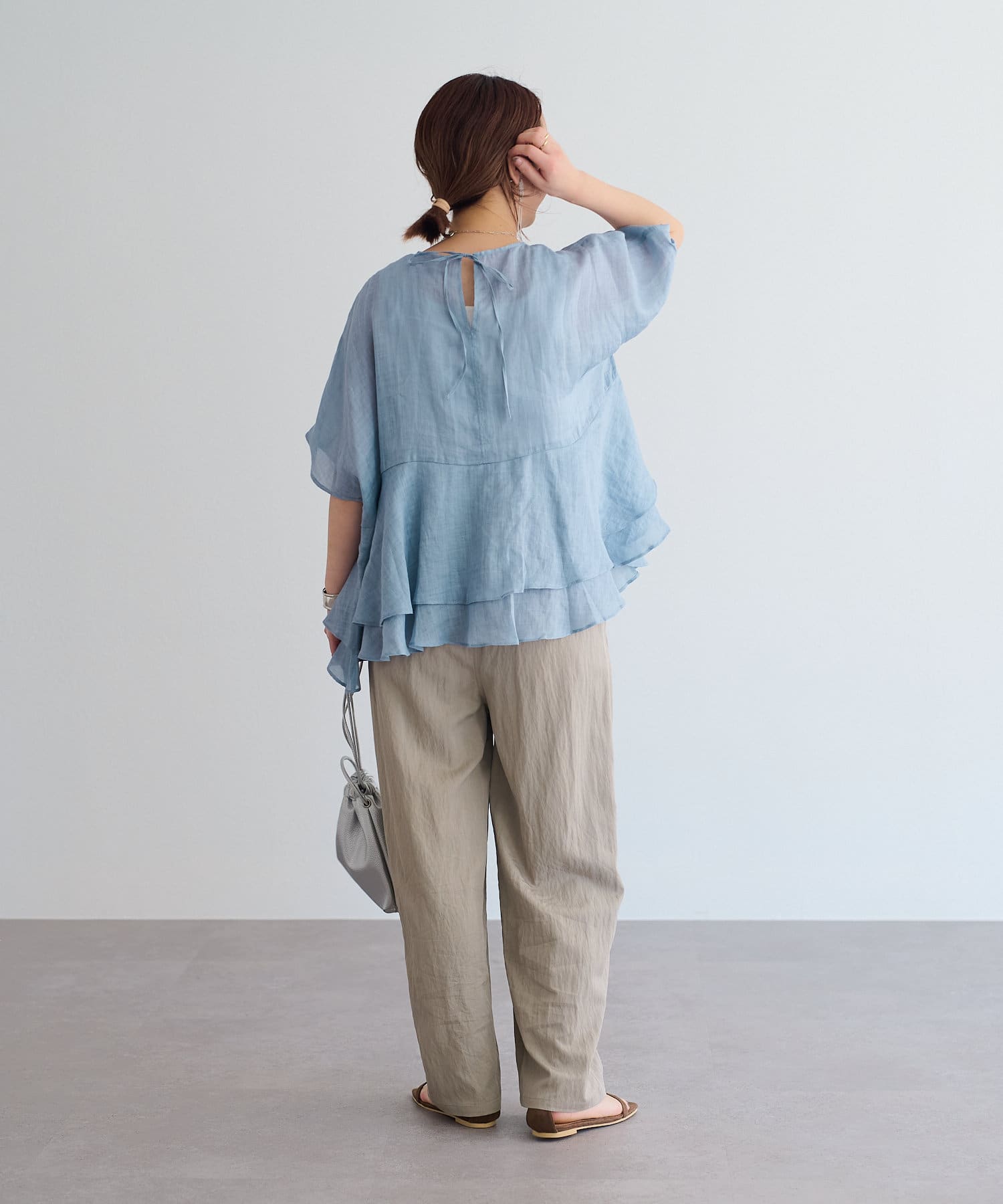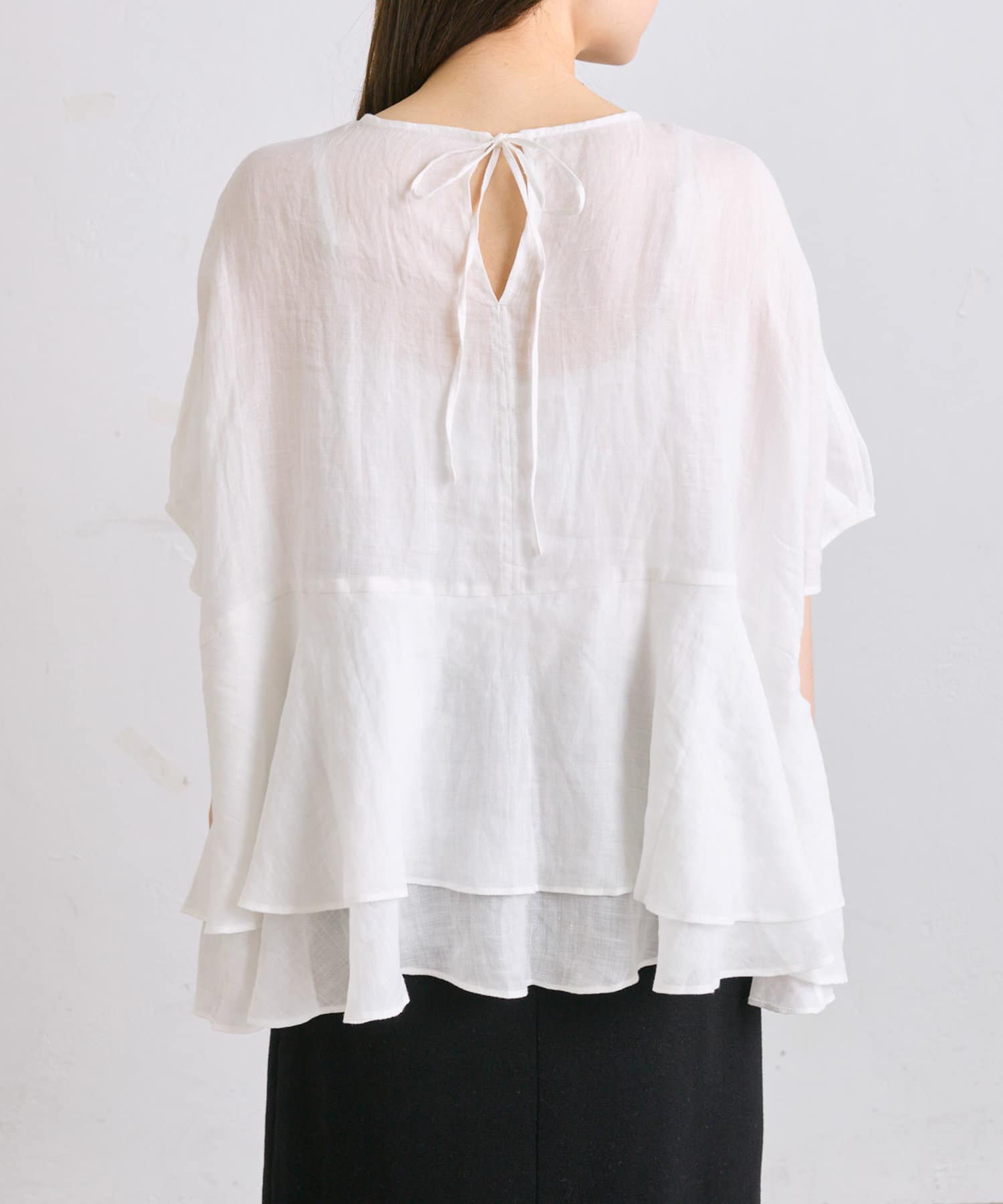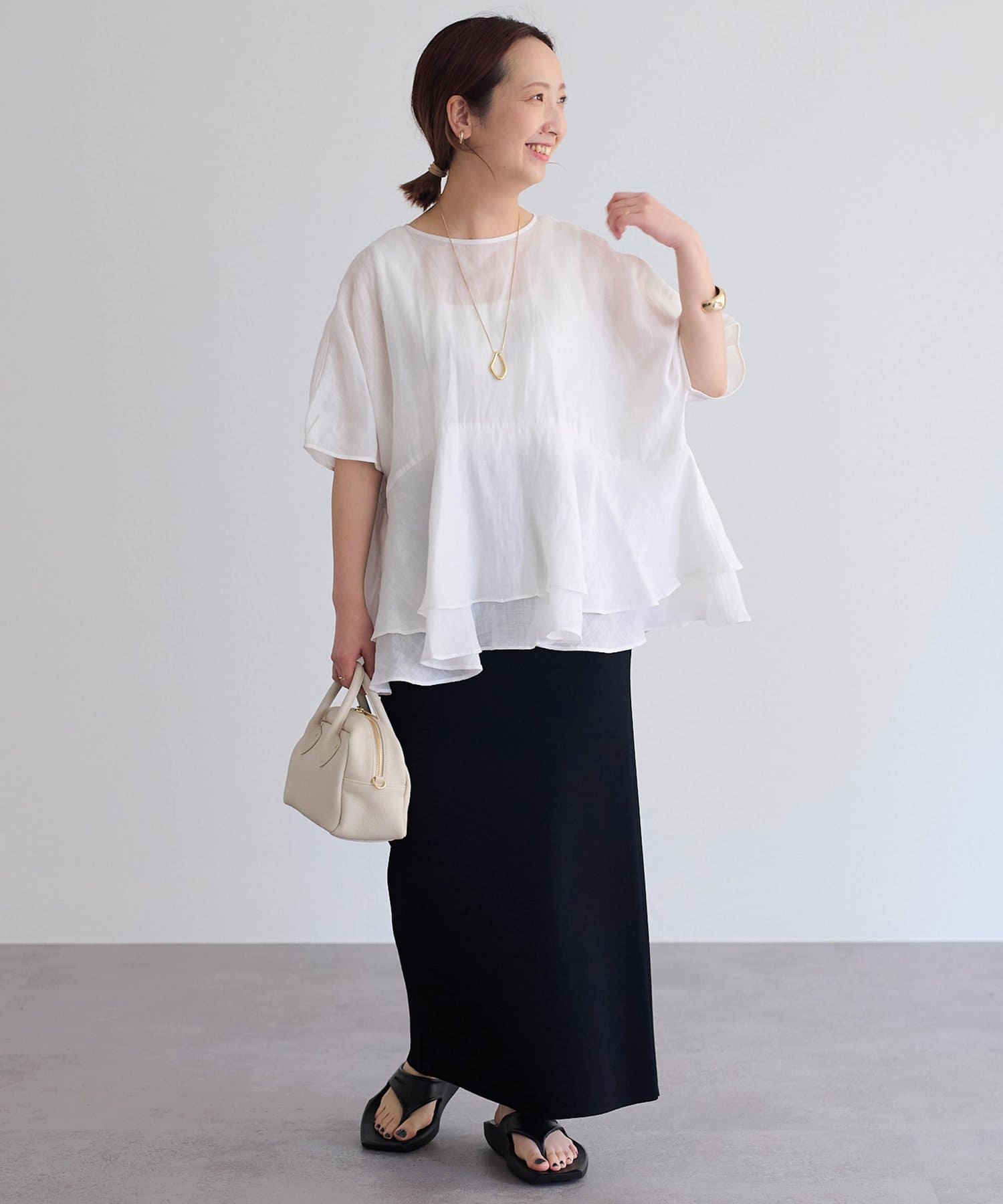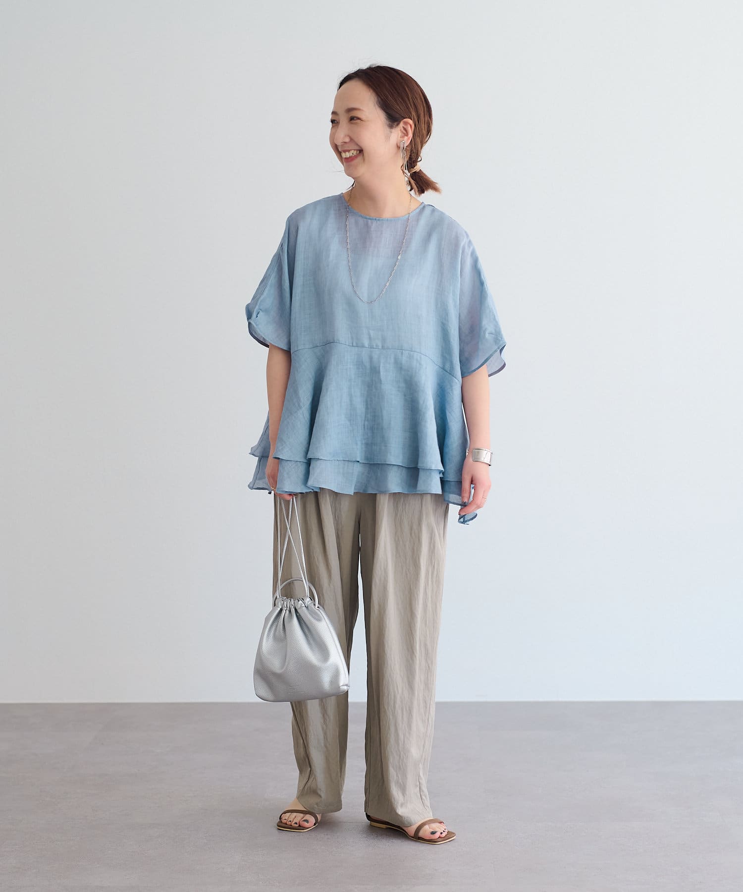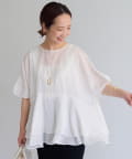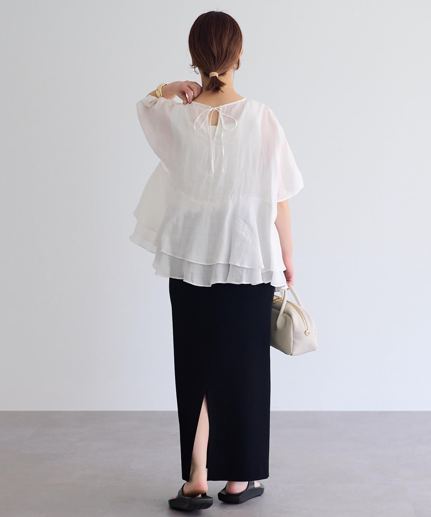 上品なシアー感と2段重ねのペプラムが軽やかな印象のブラウス。