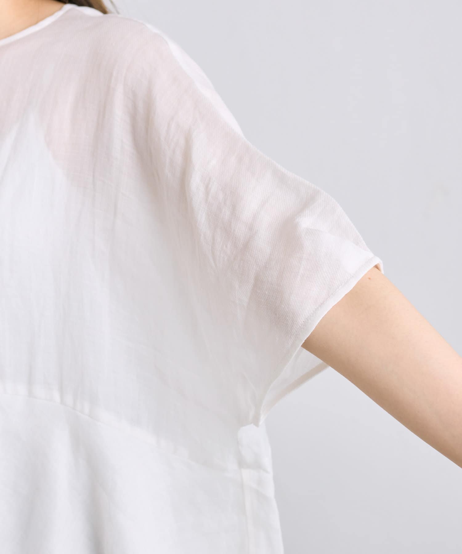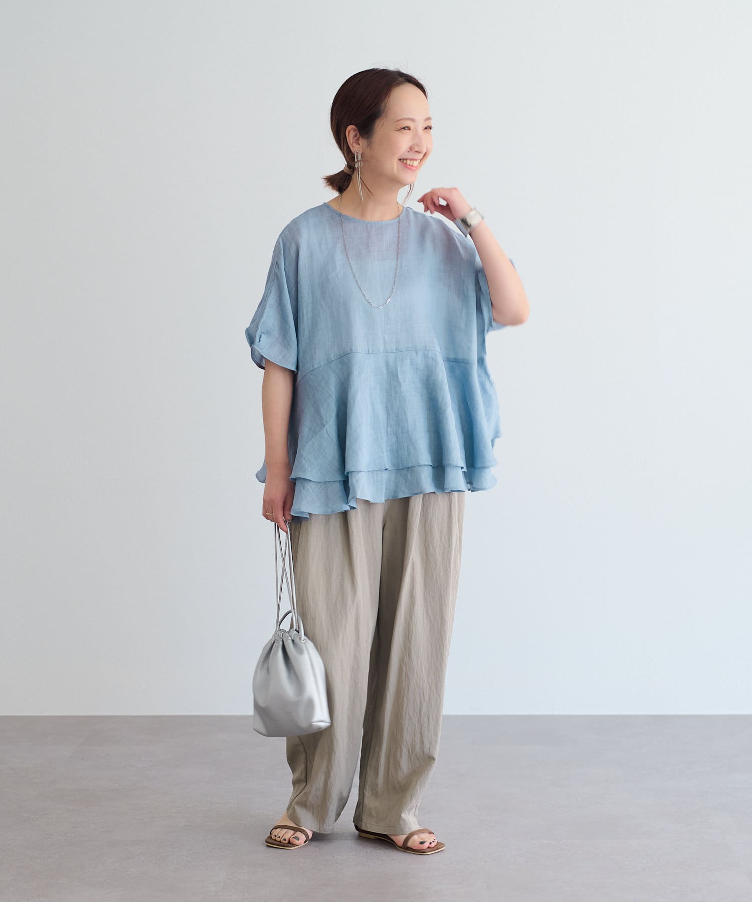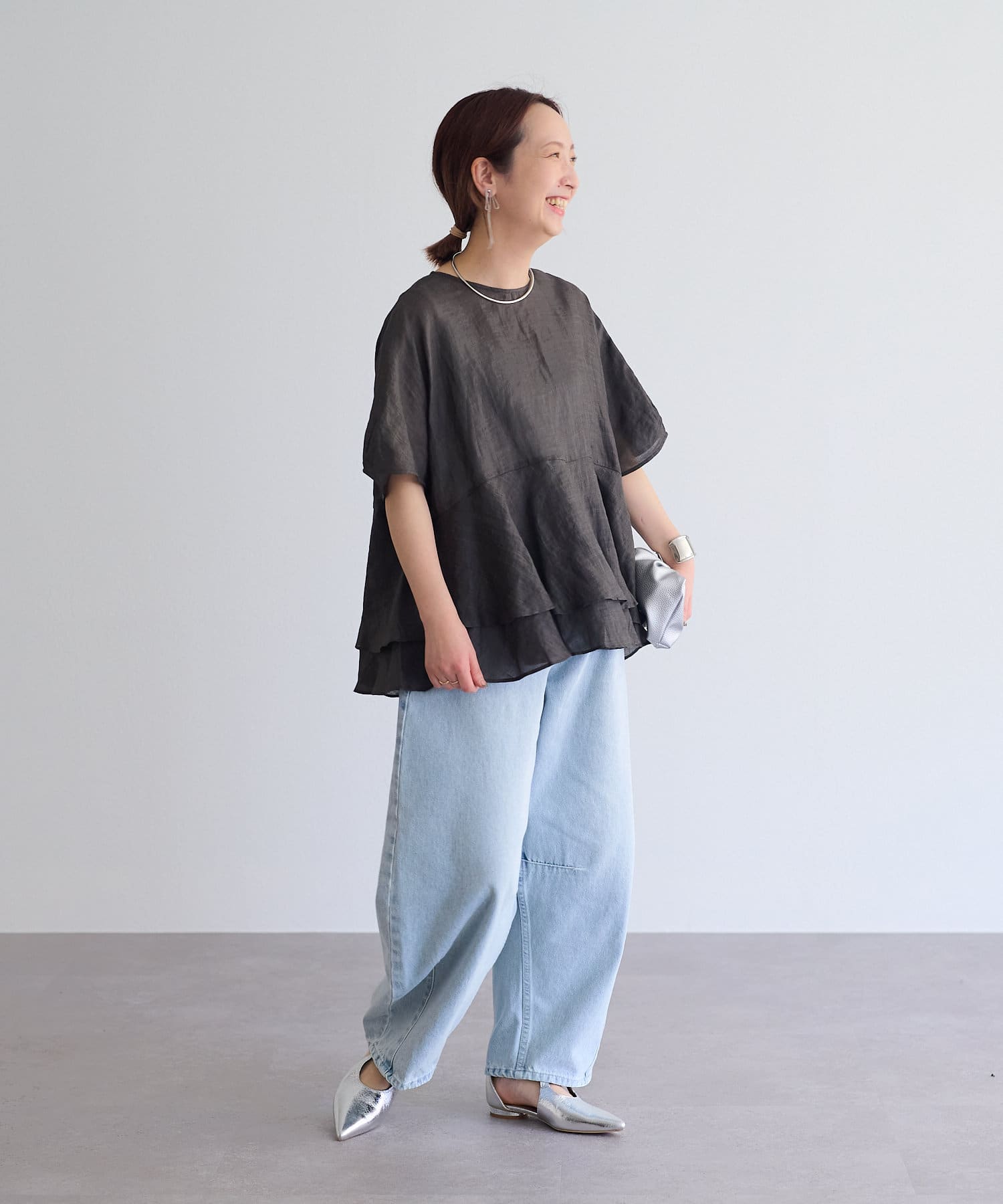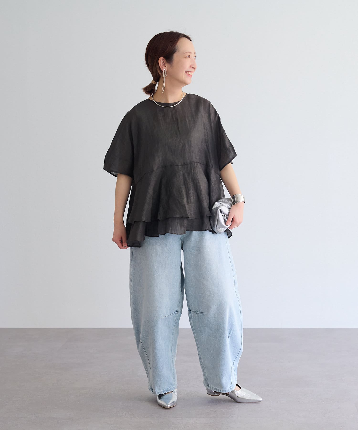 上品なシアー感と2段重ねのペプラムが軽やかな印象のブラウス。