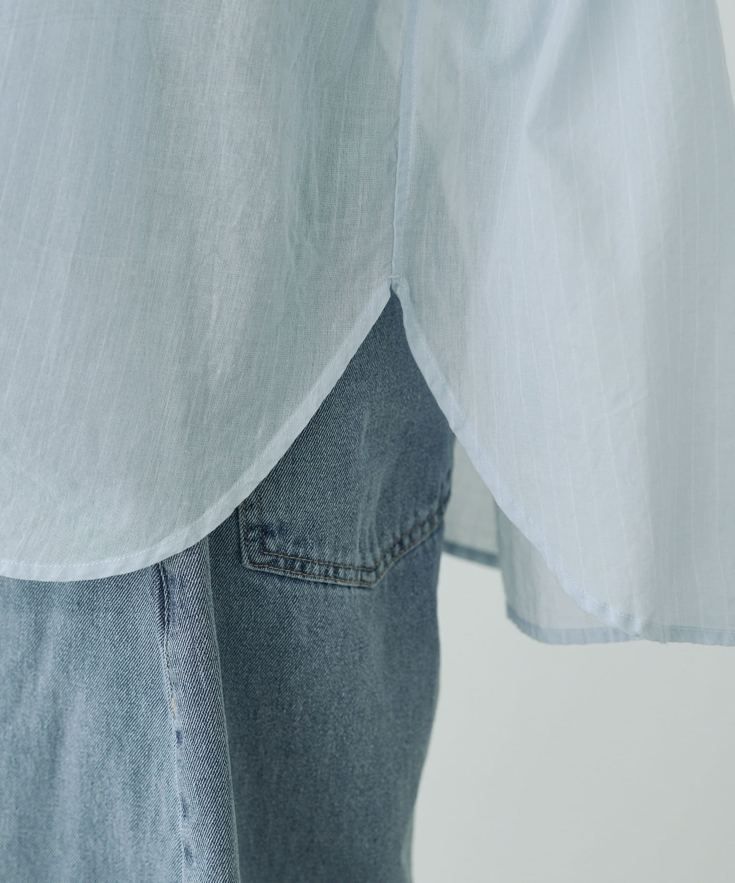 着用感:薄手の生地にラウンドヘムで、ボトムスに入れてもダボ付かずキレイに着ることができました。
