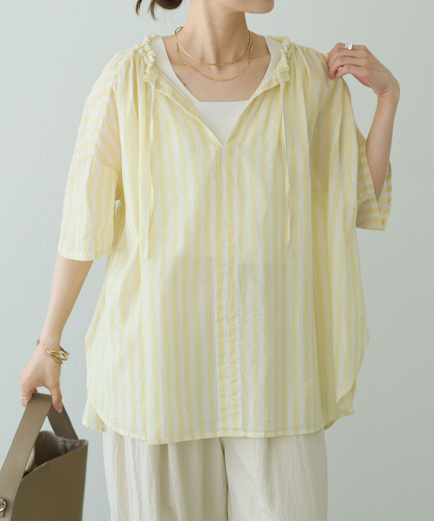 Vネックが大人な抜け感のスキッパーブラウス。