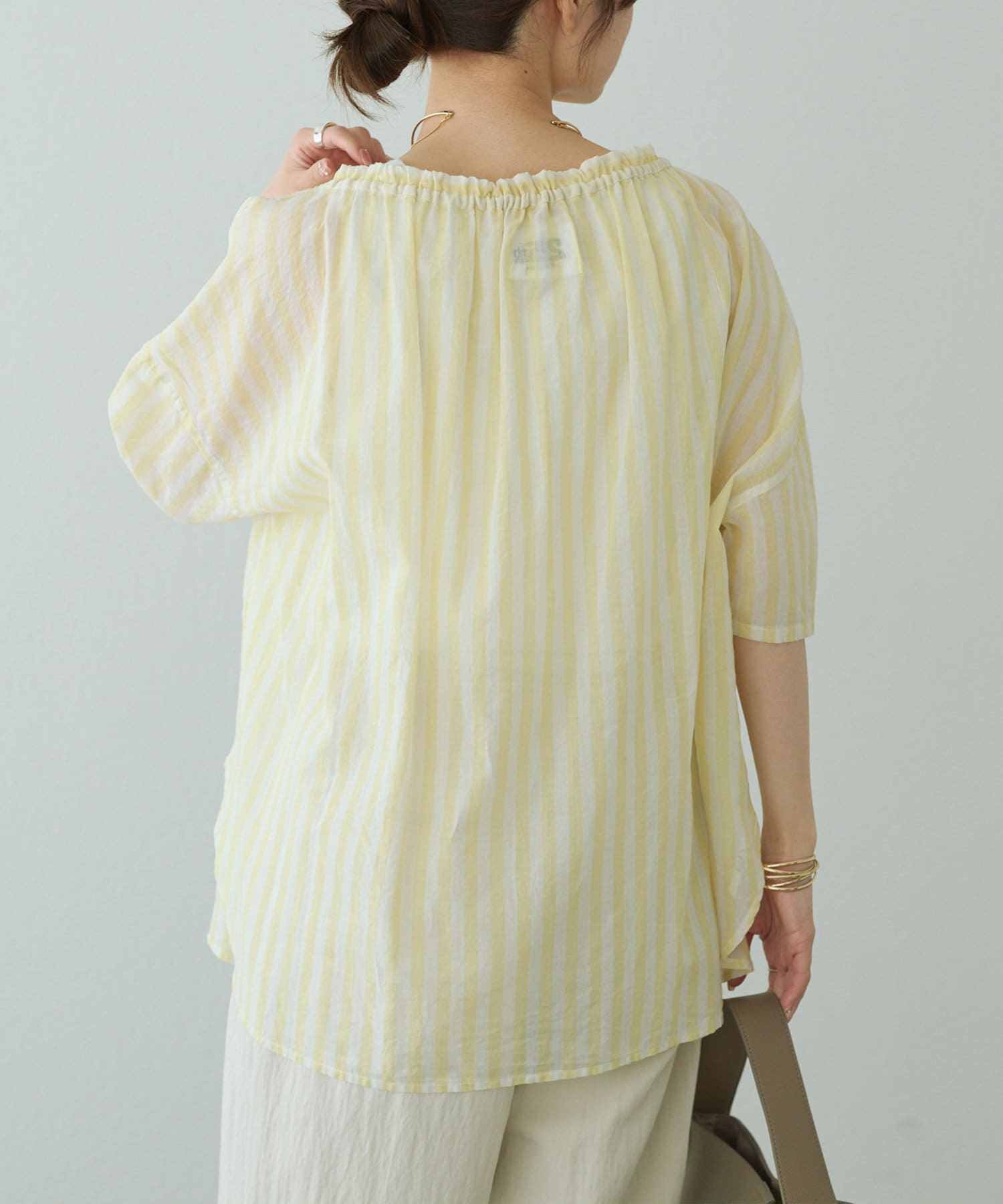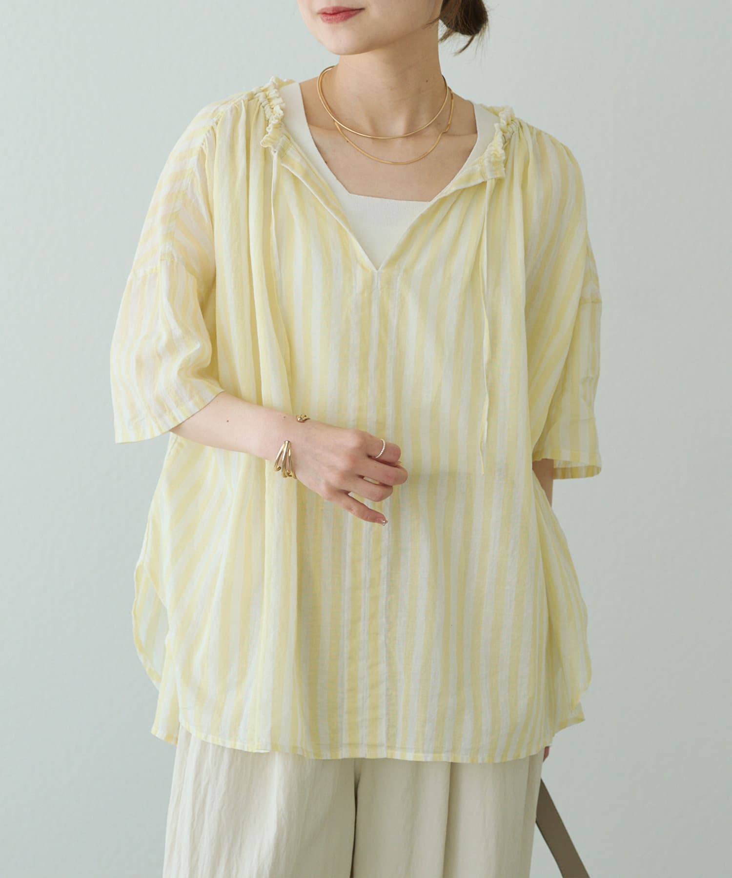 【25th】ストライプコットンラミースキッパーブラウス