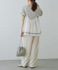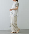 ボトムスにスラックス、足元は華奢なサンダルにすると女性らしいキレイめなスタイリングに。