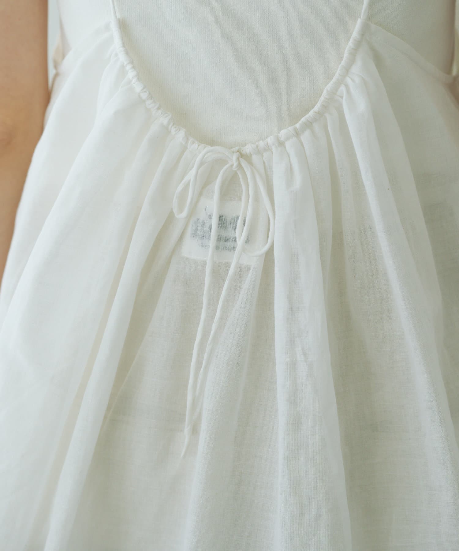 大人っぽさのある肩の華奢なコード紐は、リボン結び仕様で自分好みの長さに調節可能。