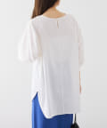 真夏に5分袖は暑いかしら?と心配しながら購入。さらりとしており、肌にくっつかない生地感、二の腕を隠す安心の袖丈、おしゃれ洗いで自宅洗濯可能な点で大人のブラウスとして最適と感動。