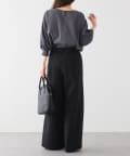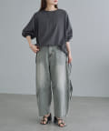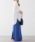 着丈は長めなのでぴったりしたパンツの時には外に、コンパクトにまとめたい時には裾をインして着用。
