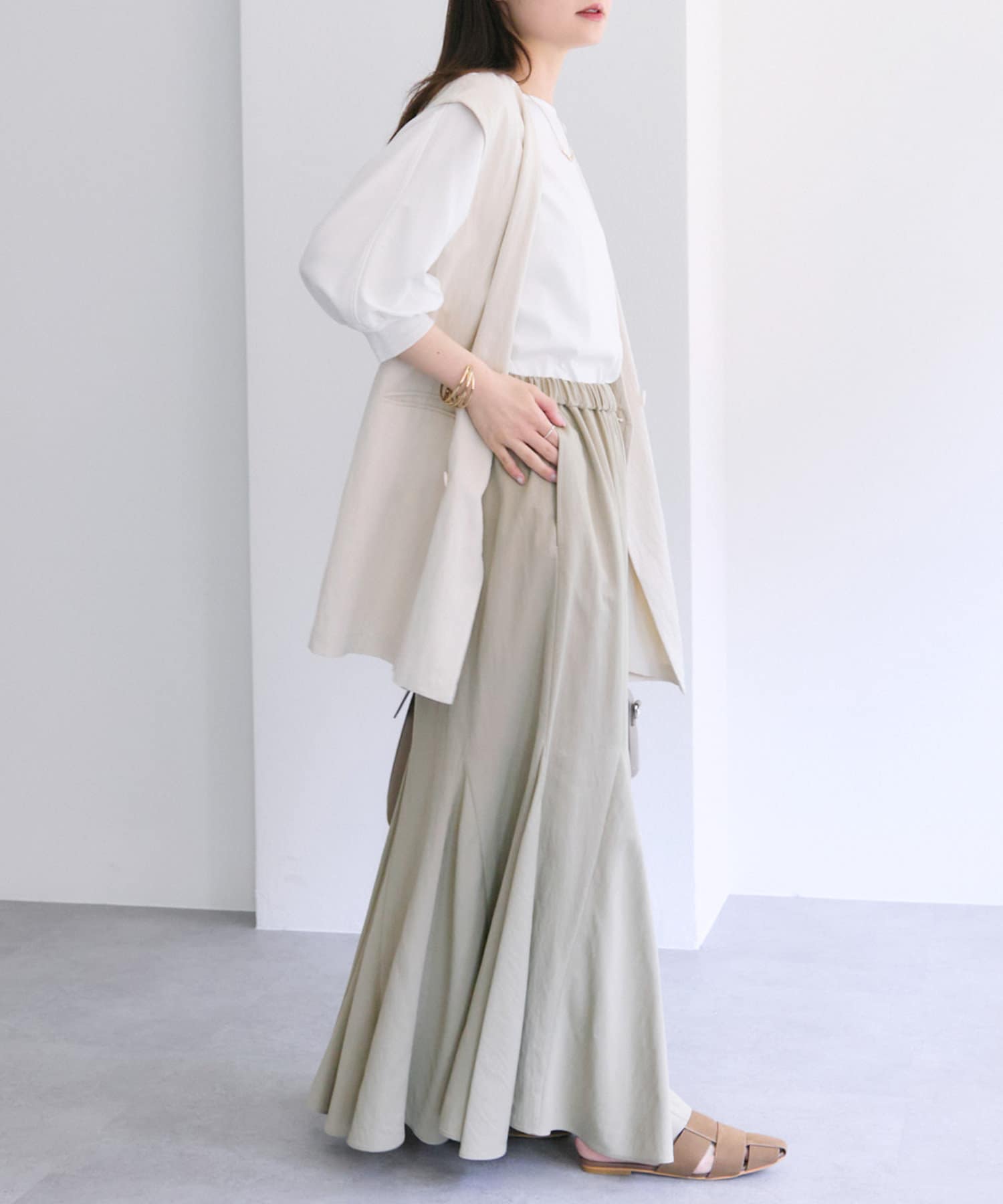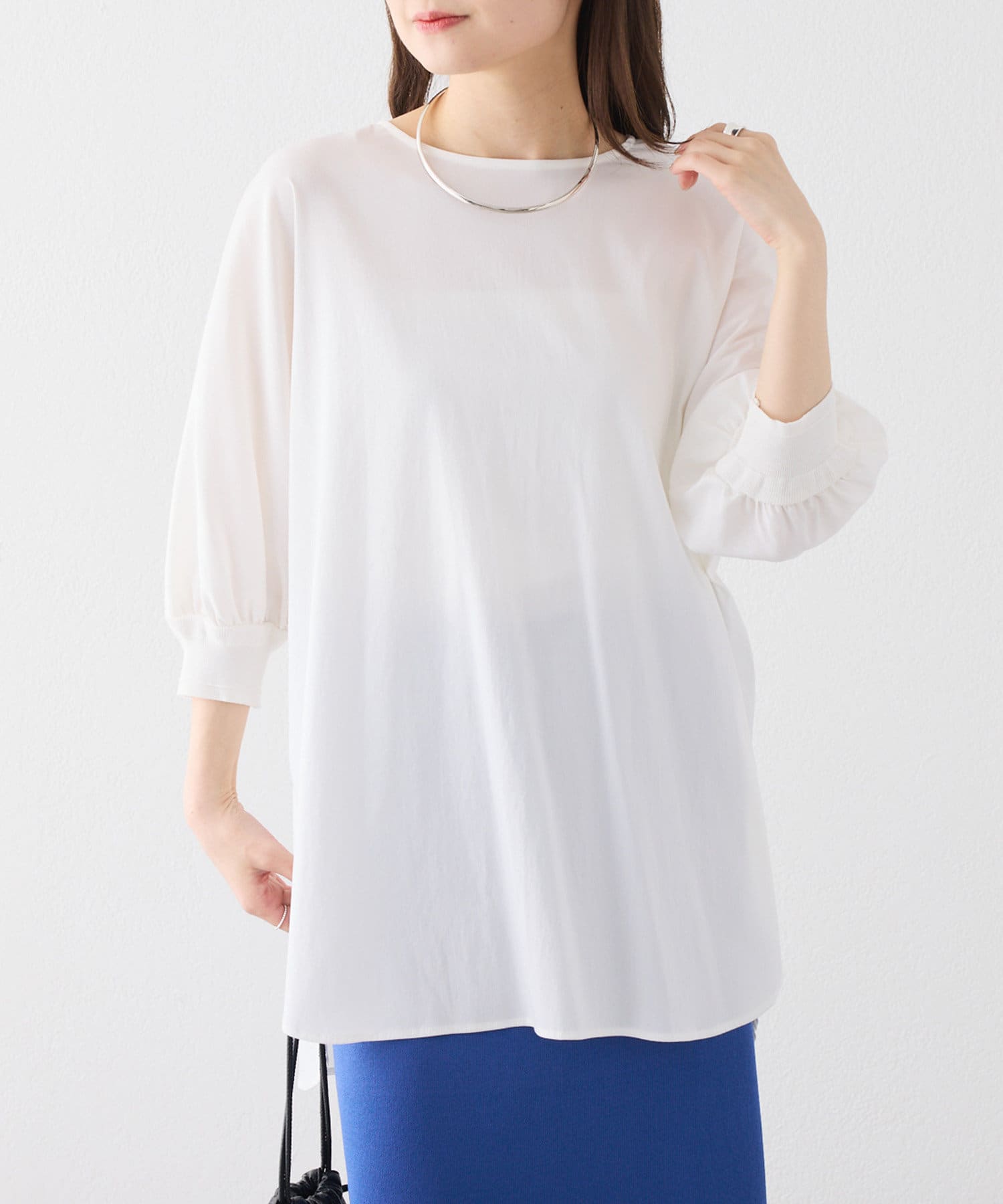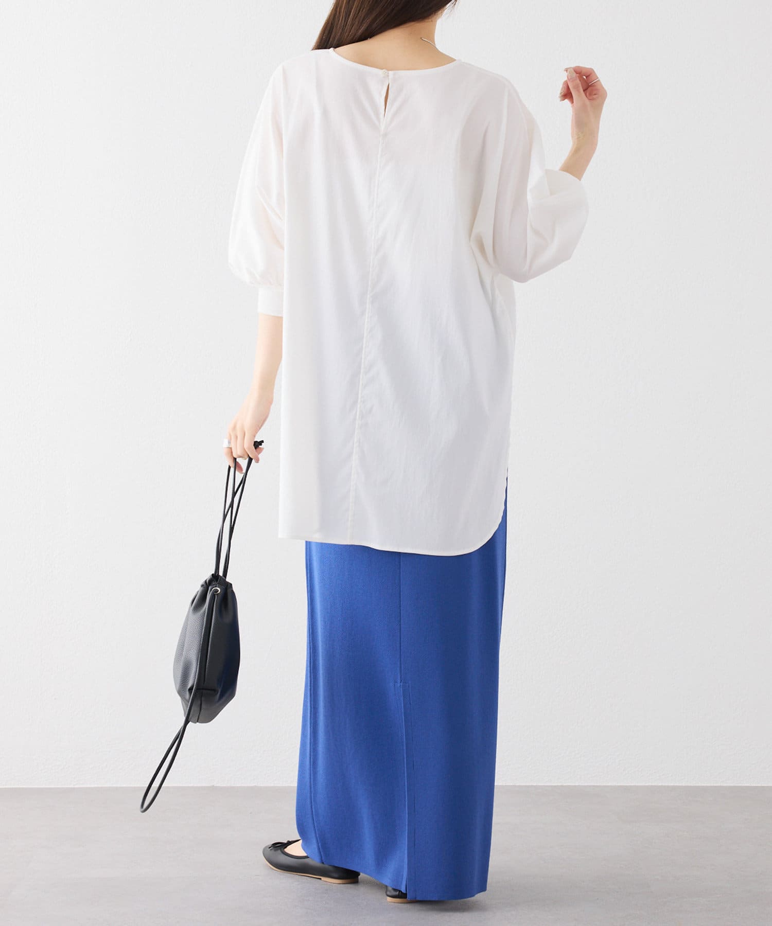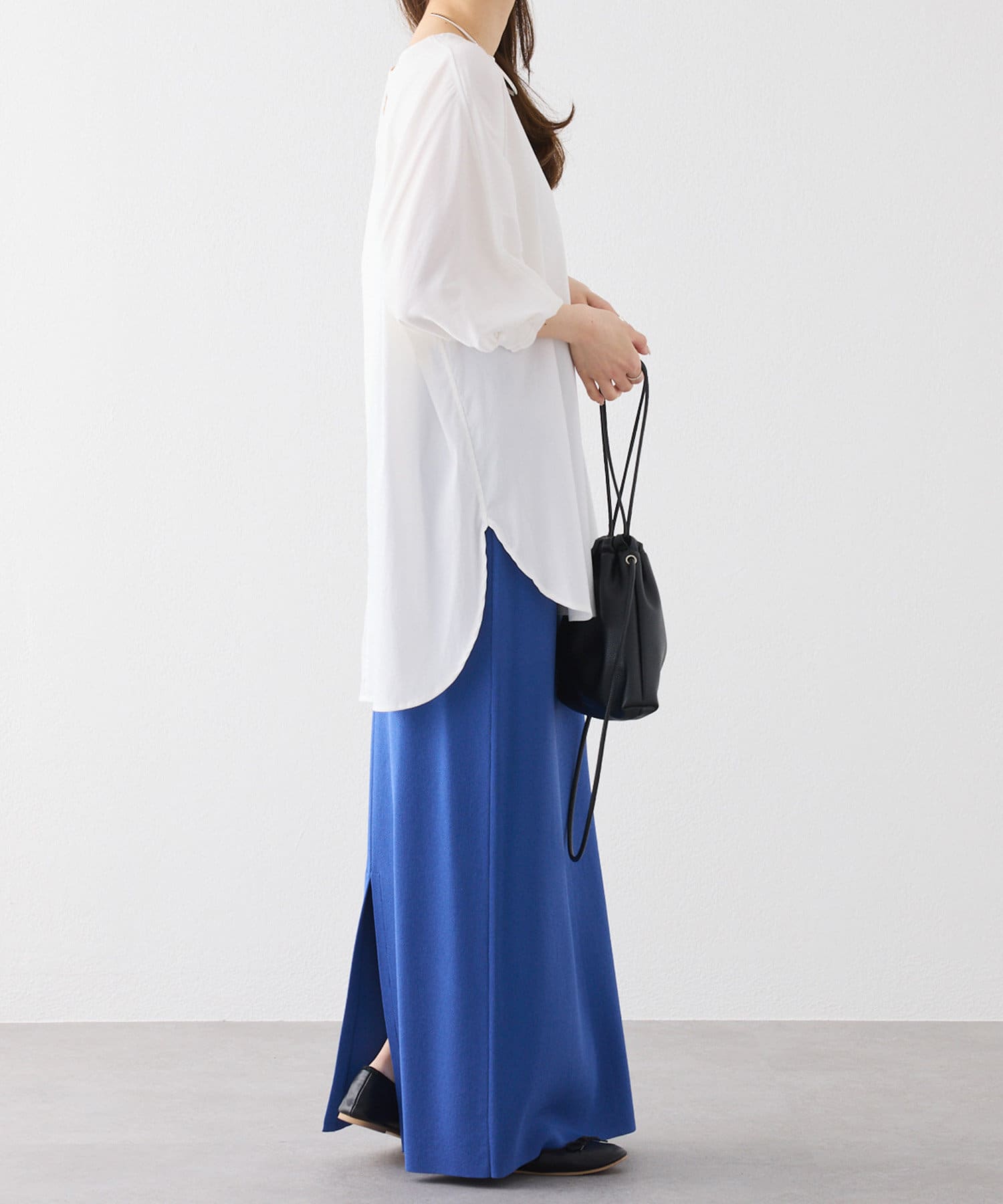 ナロースカートなどスッキリしたボトムス合わせもおすすめです。