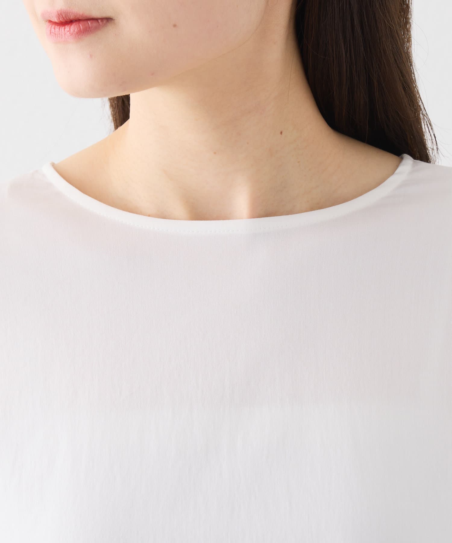 万能ブラウスは長袖バージョンも購入していて、サラリとして着心地も良くスッキリキレイめなのを知っていました。半袖バージョンも出ると知り早速購入。白とチャコールで迷いましたが、まず白を。やっぱりいい。ぽっちゃりの私でもスッキリ着れるのも嬉しいポイントです。涼しくなったら重ね着のインナーとして白をチラ見せしたいです。