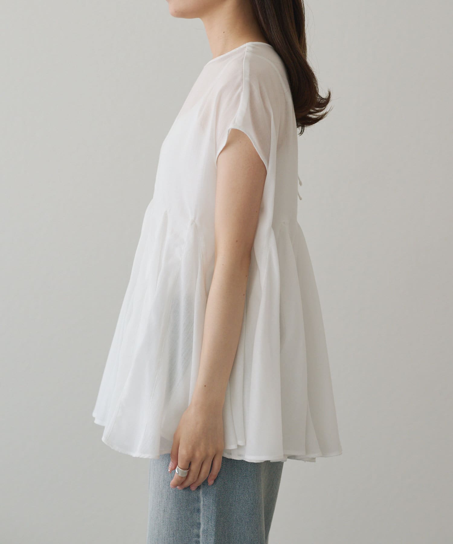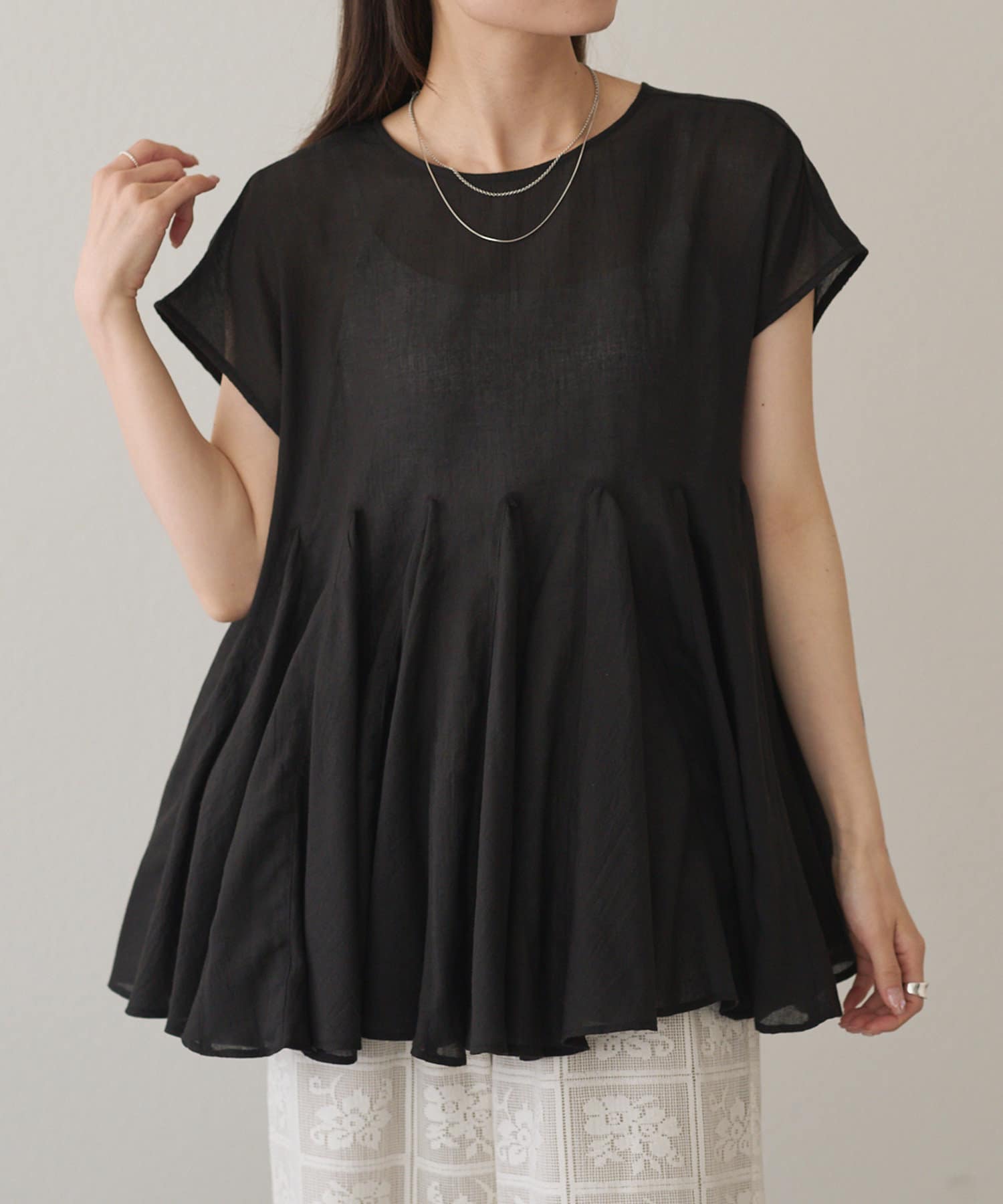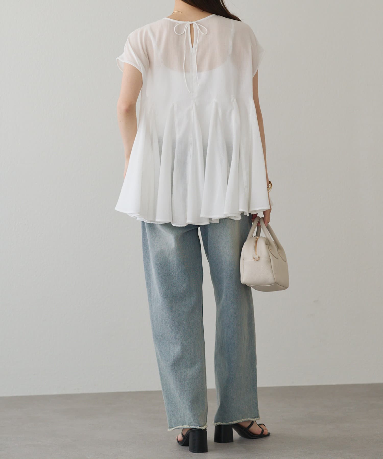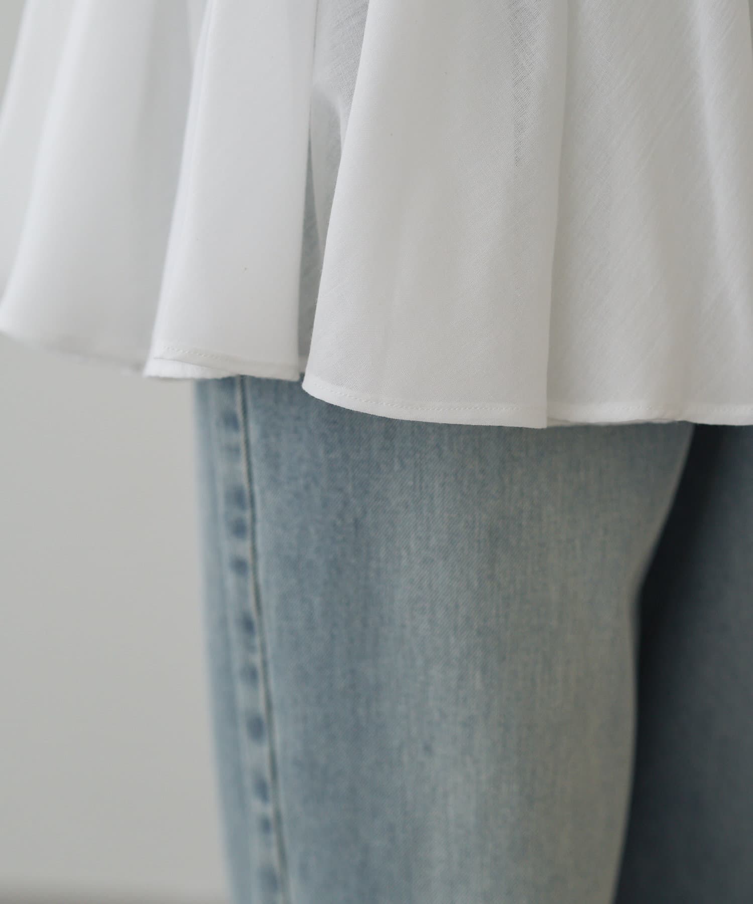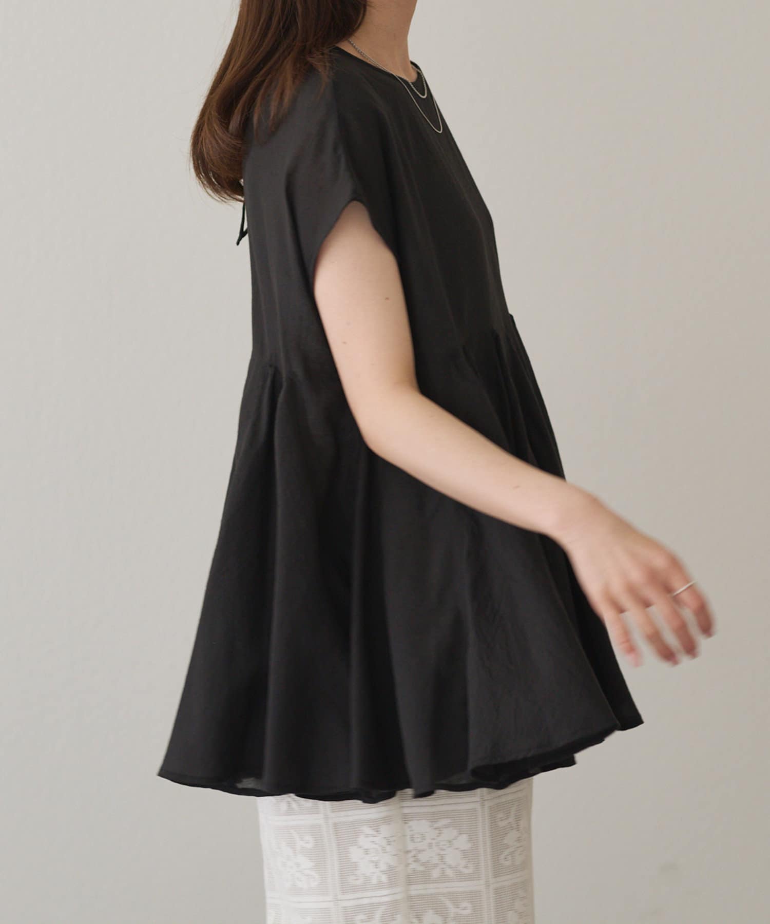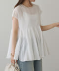 ふんわりとしたペプラムデザインが華やかな前後2WAYで着まわせるチュニックブラウス。