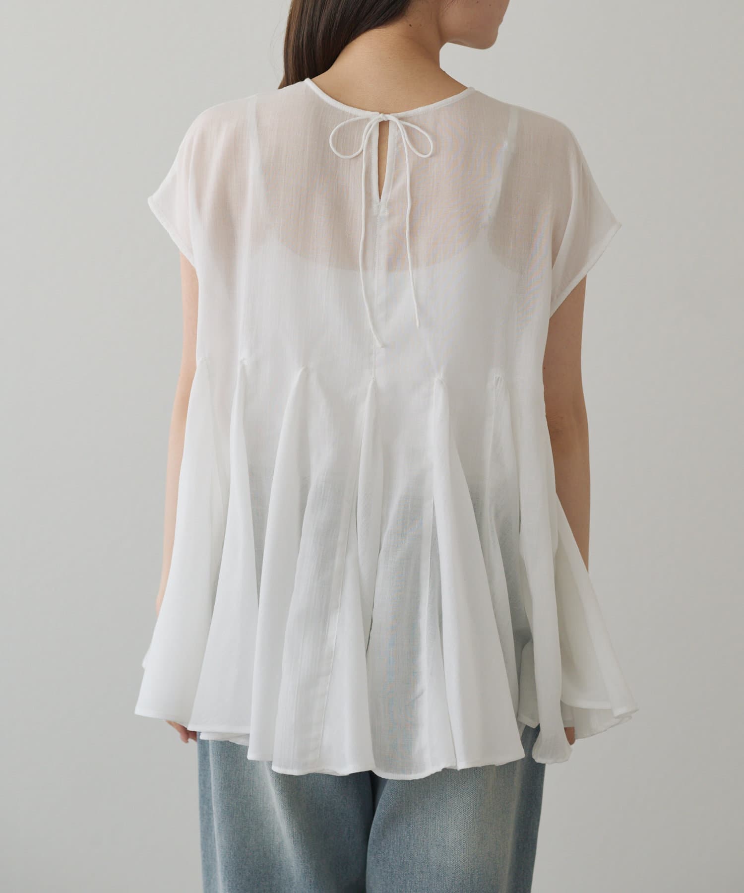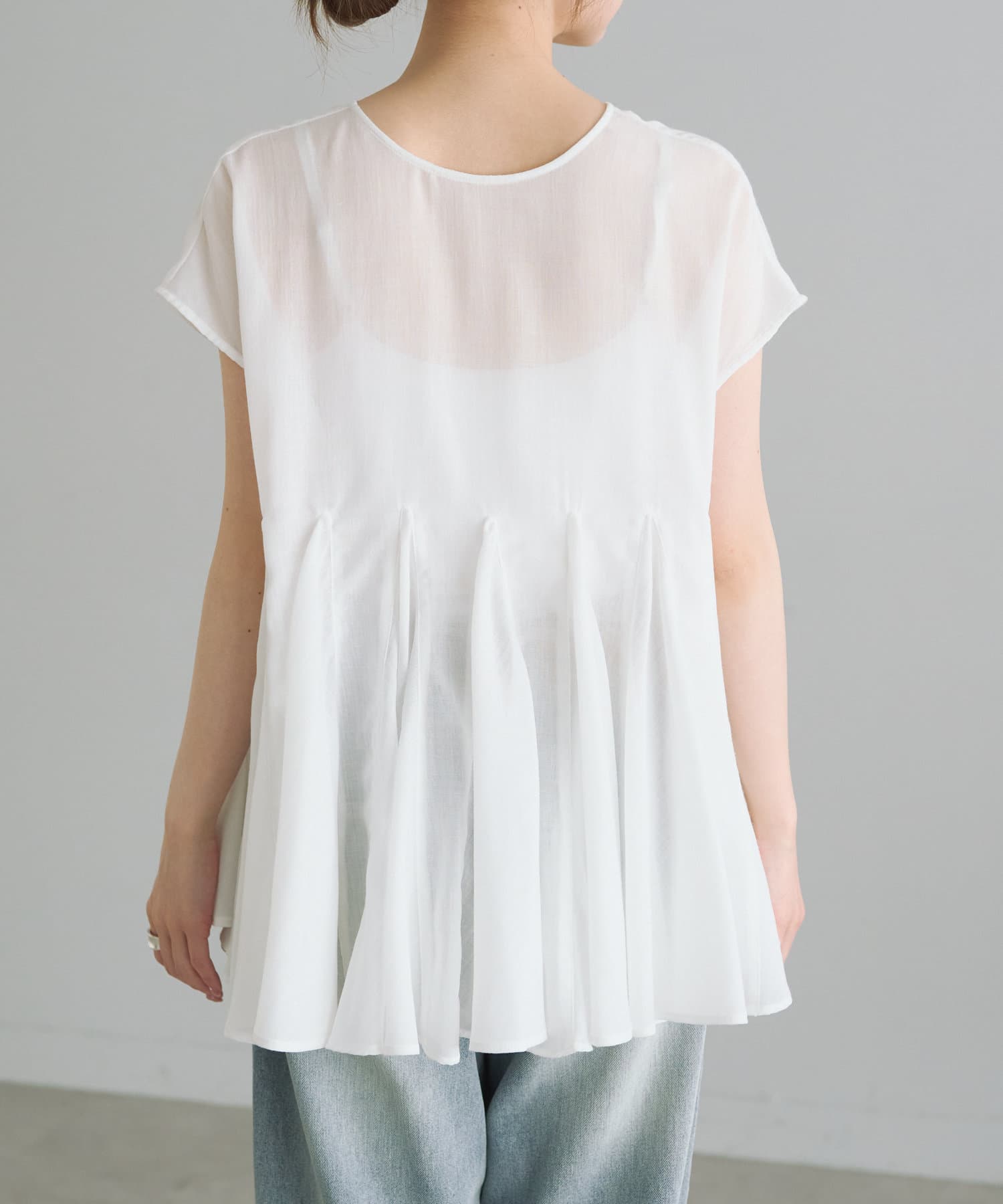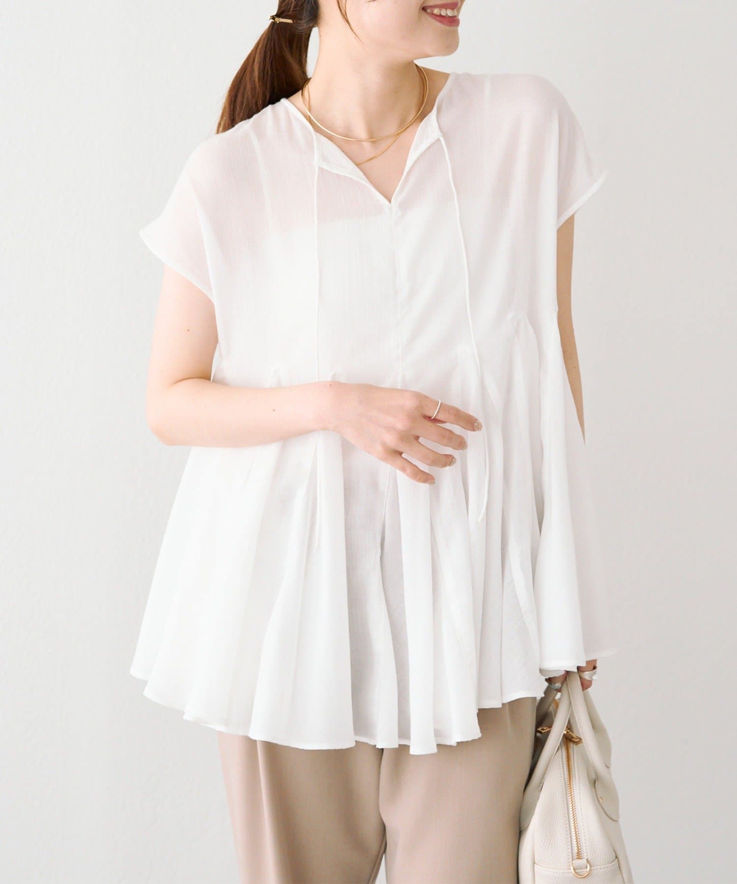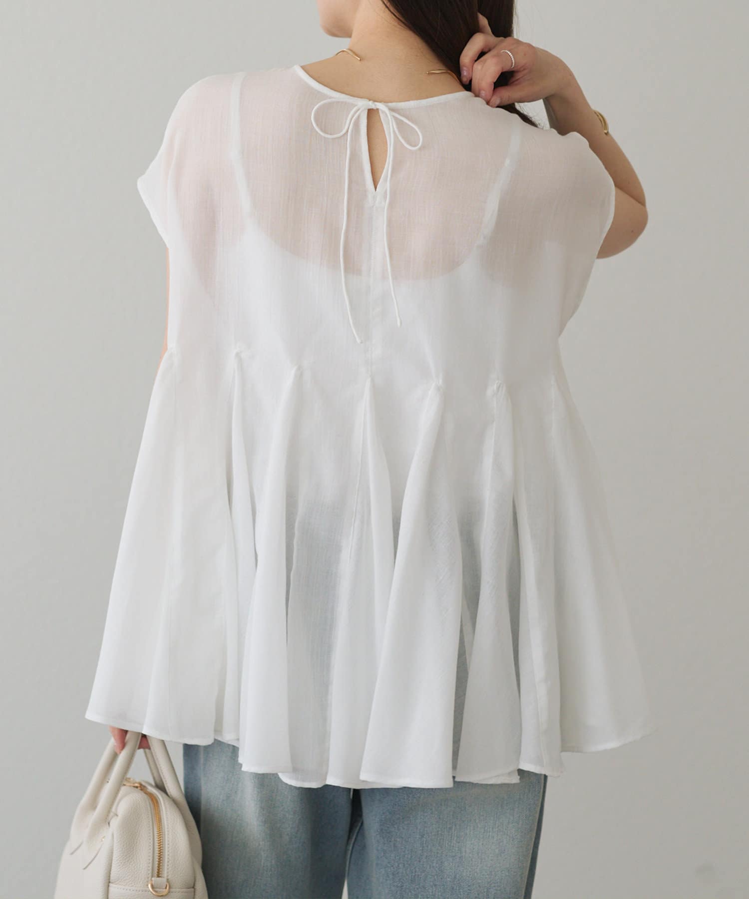 ふんわりとしたペプラムデザインが華やかな前後2WAYで着まわせるチュニックブラウス。