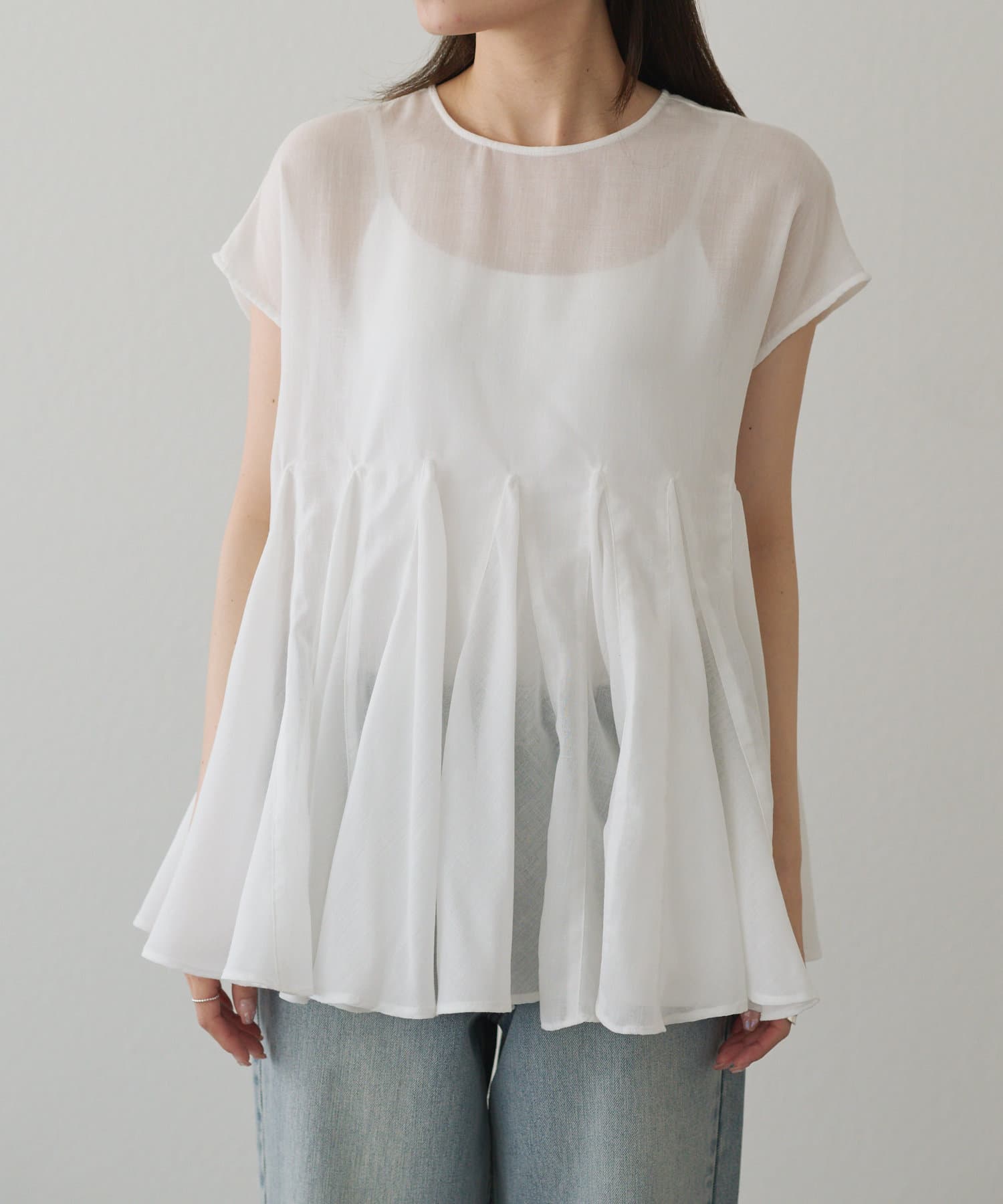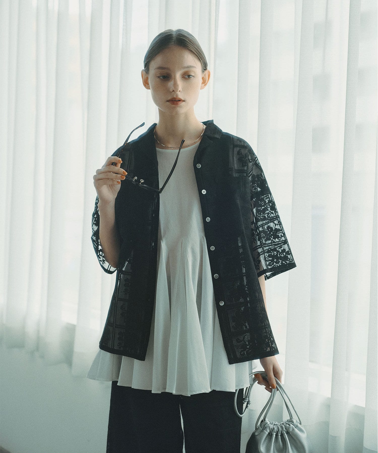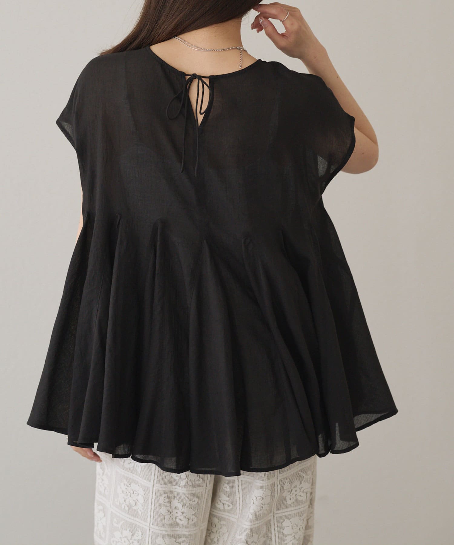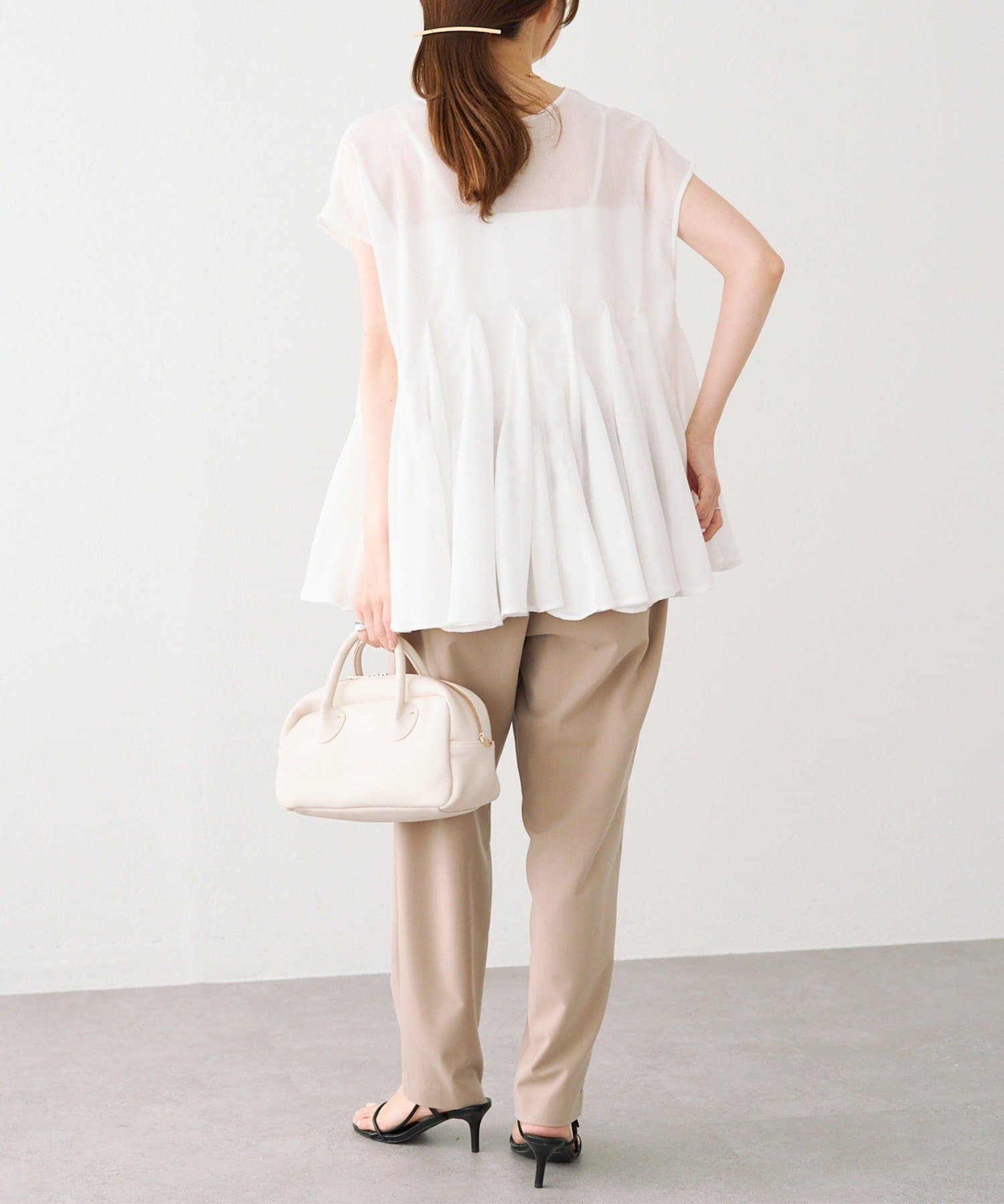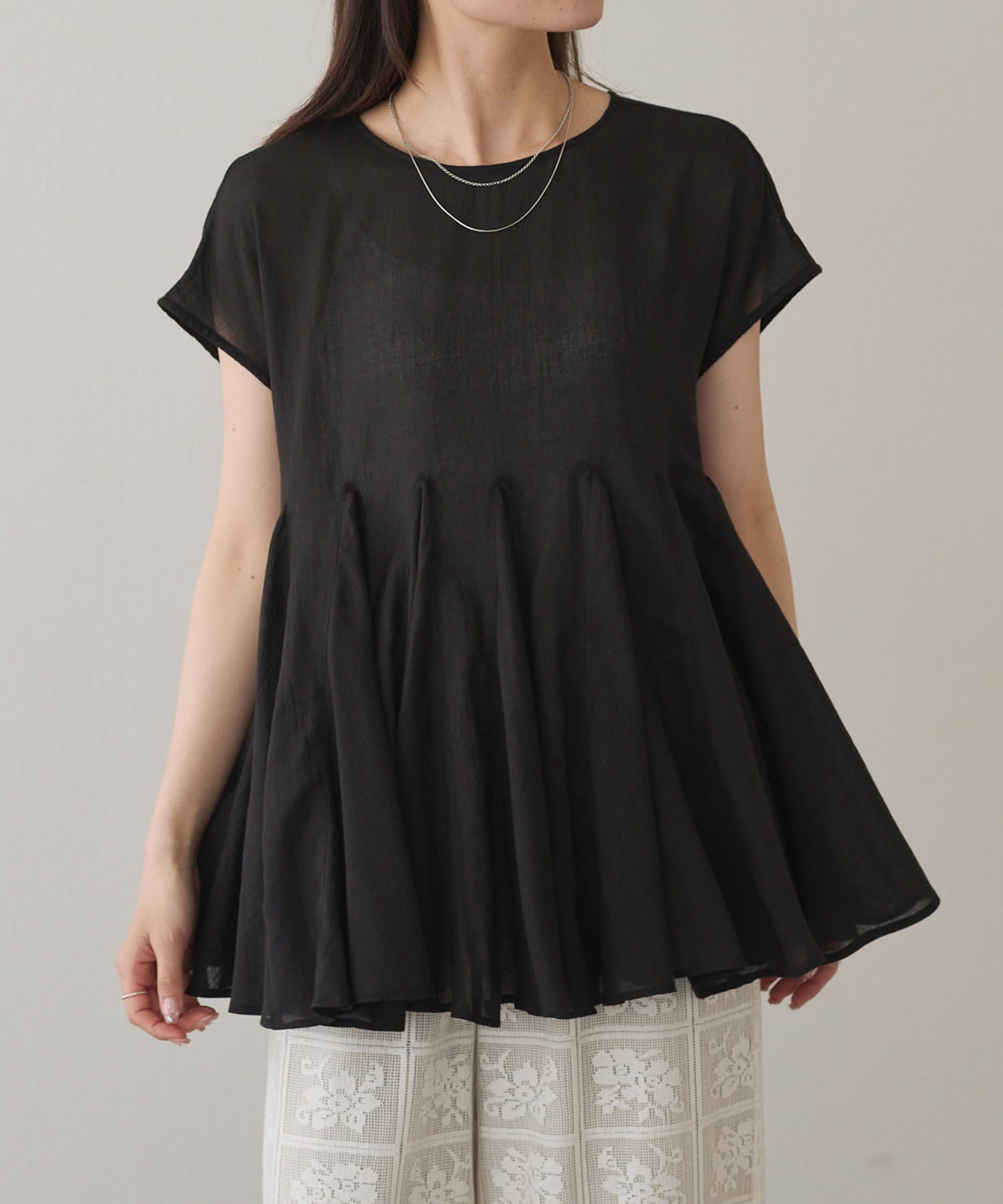 ふんわりとしたペプラムデザインが華やかな前後2WAYで着まわせるチュニックブラウス。