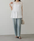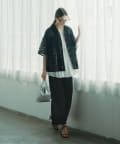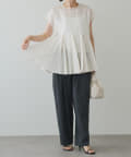 腰回りまで着丈があるため、ボトムスにはテーパードパンツやスラックスなど細身のアイテムでメリハリのあるスタイリングがおすすめです。
