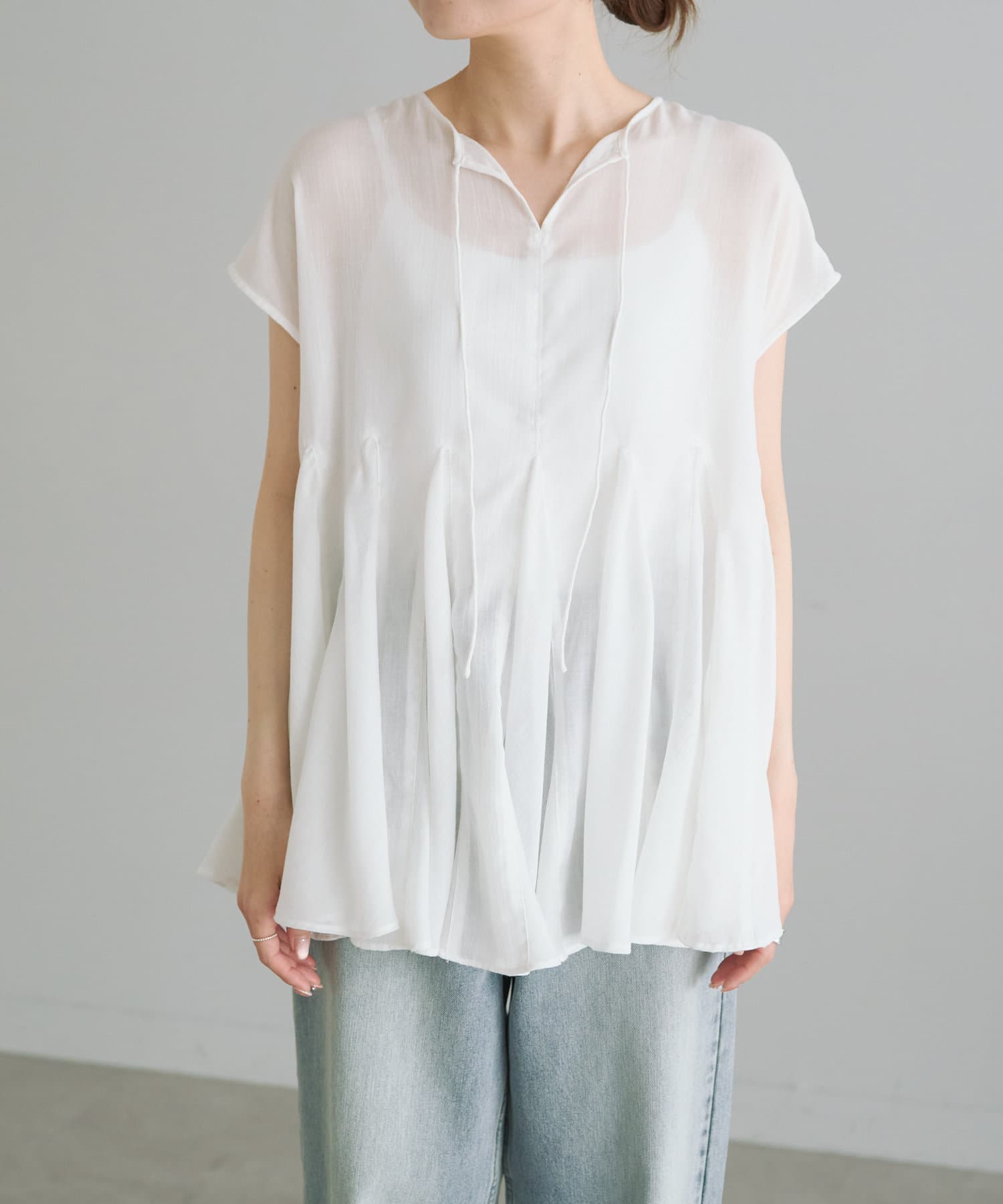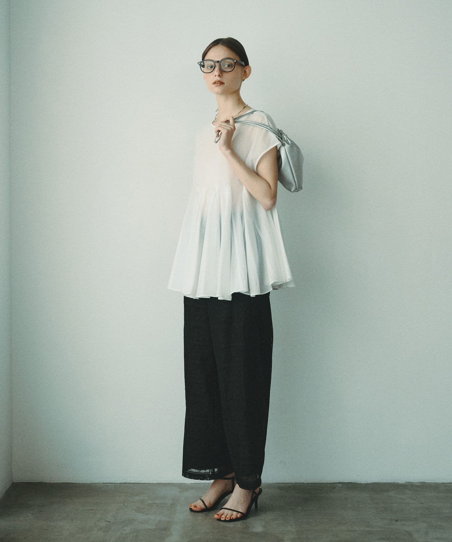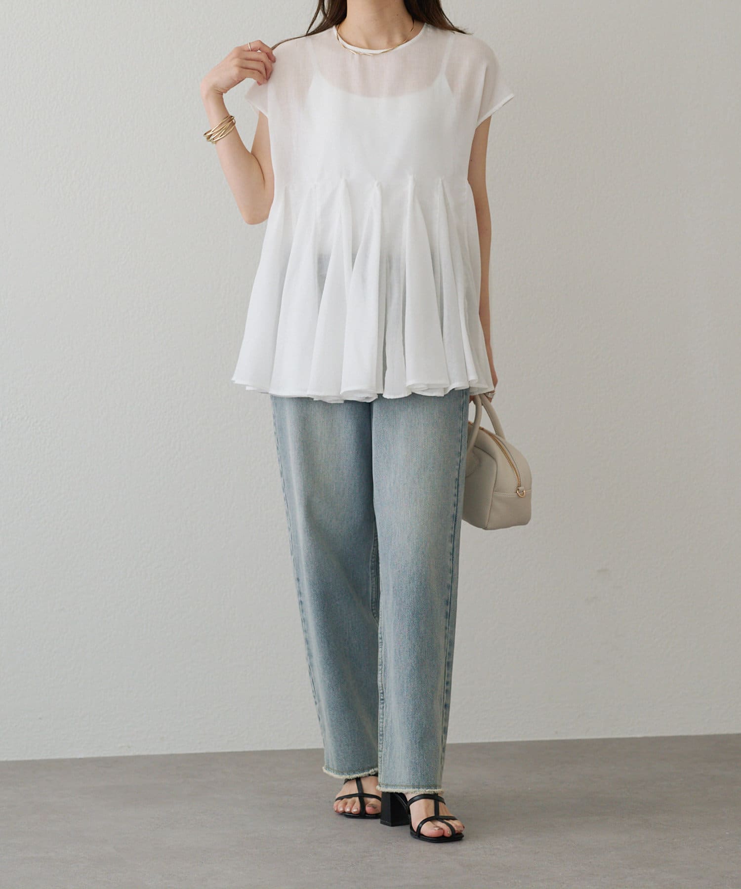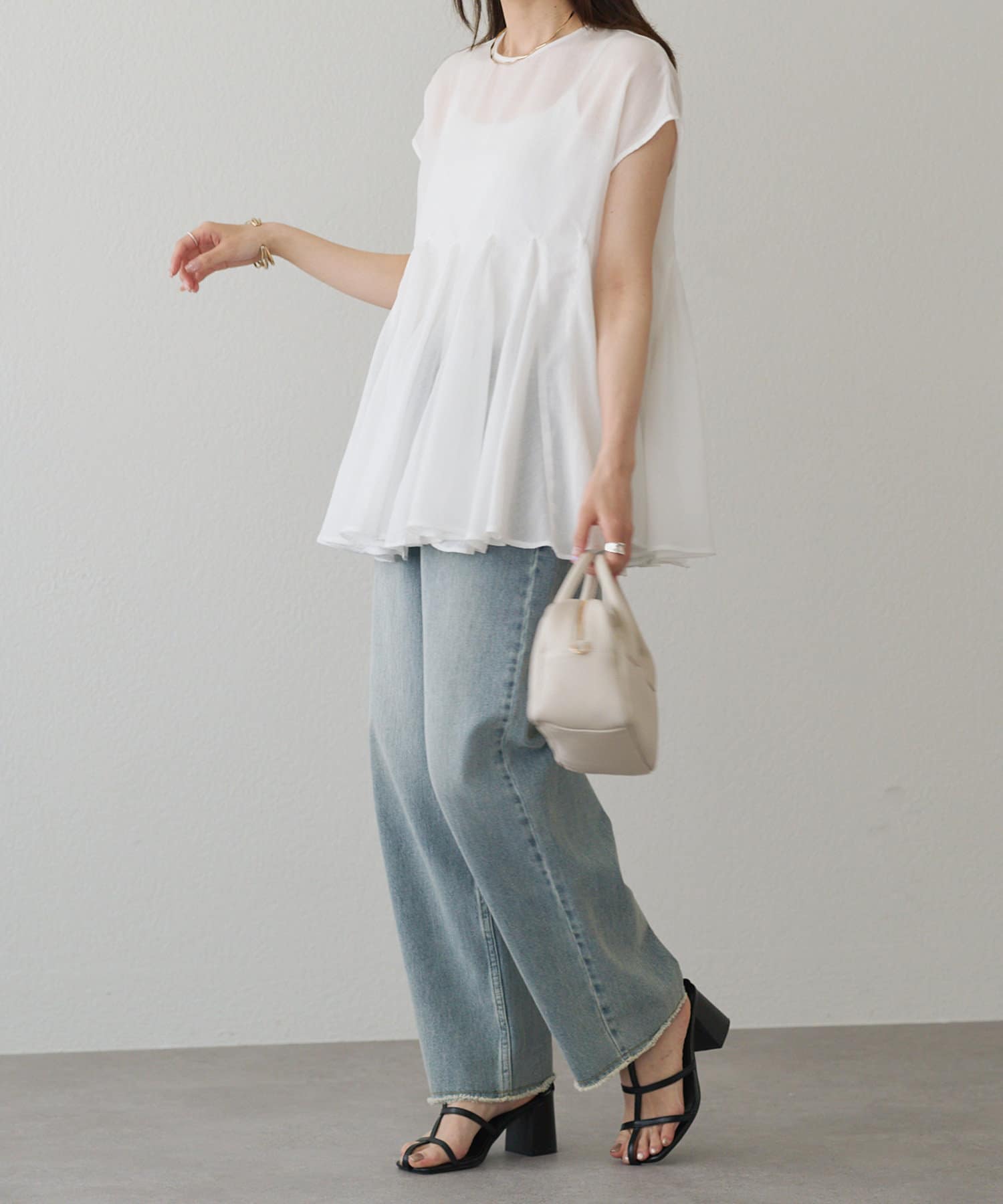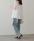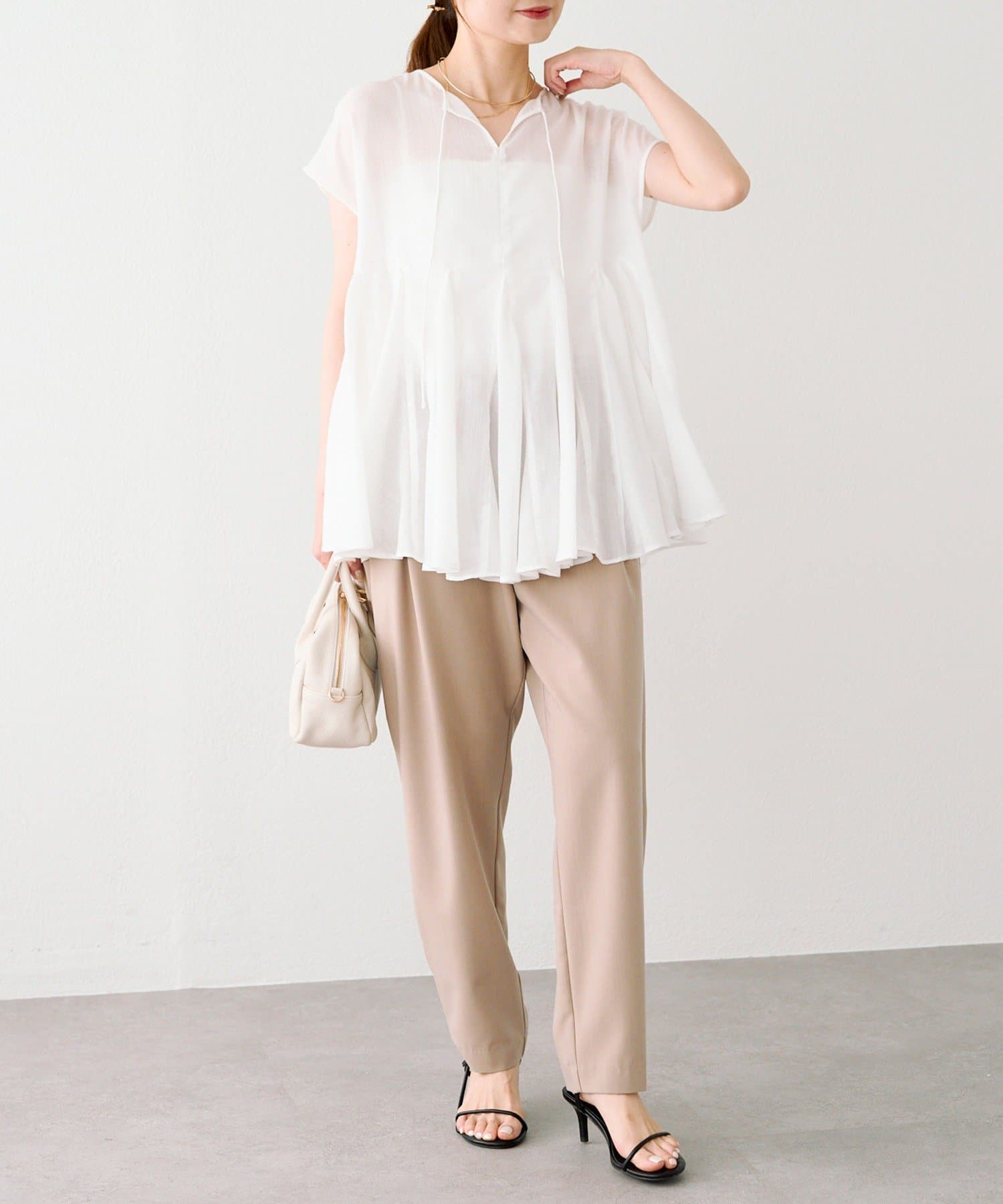 肩や二の腕をカバーしてくれるゆとりあるフレンチスリーブで、盛夏にも涼やかに着用いただけます。