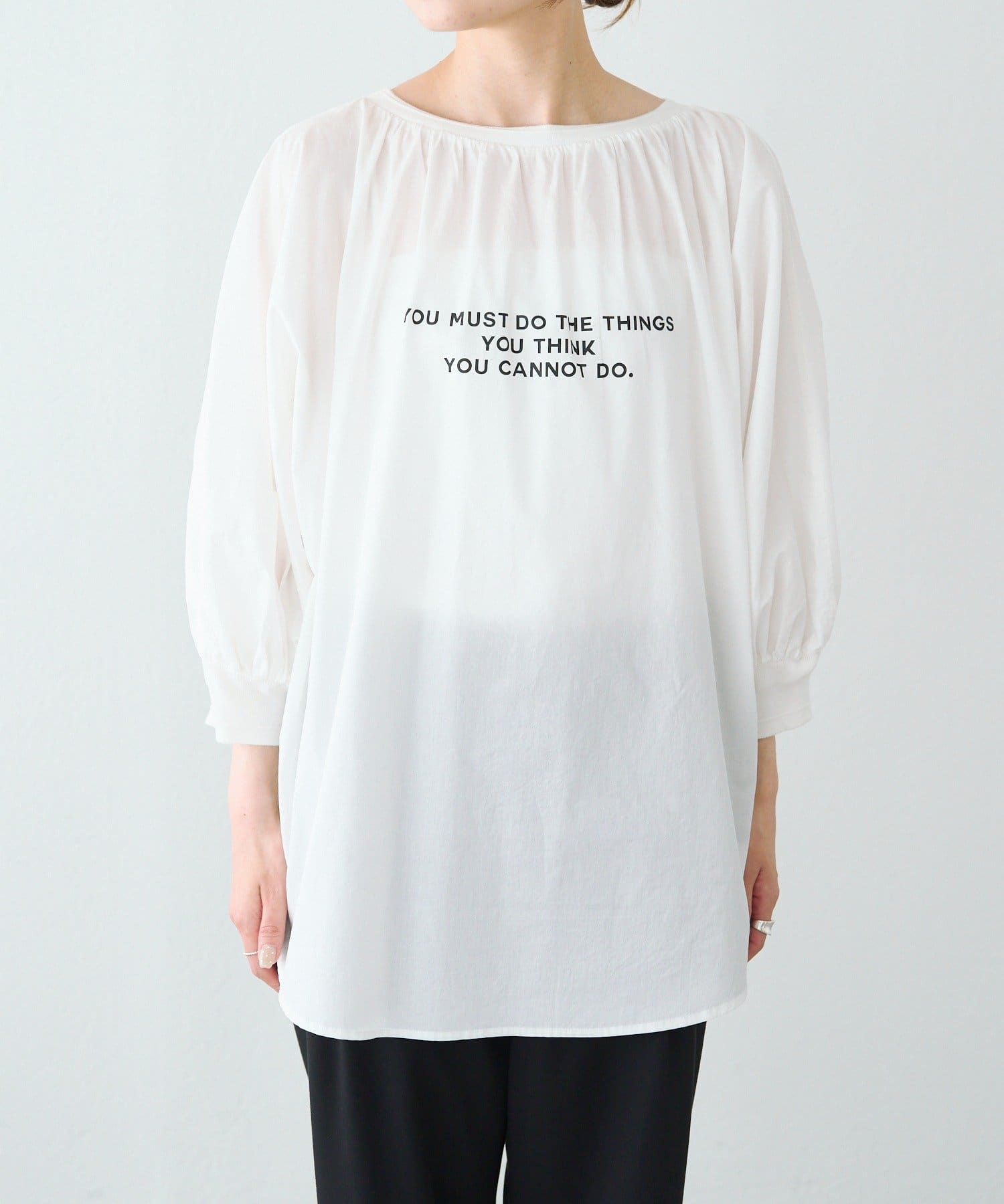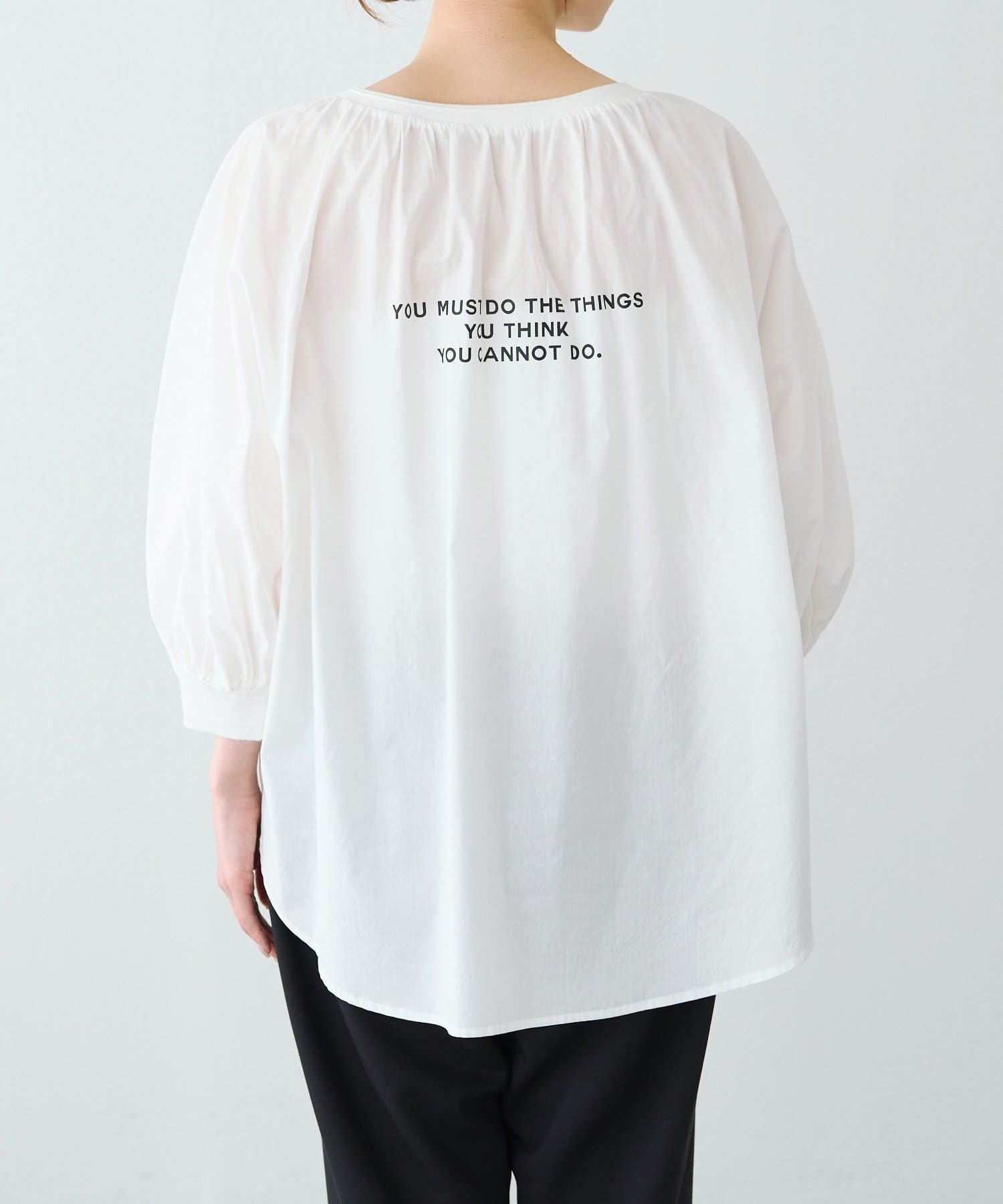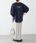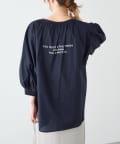 【前後着用】ロゴプリント リブ袖ブラウス