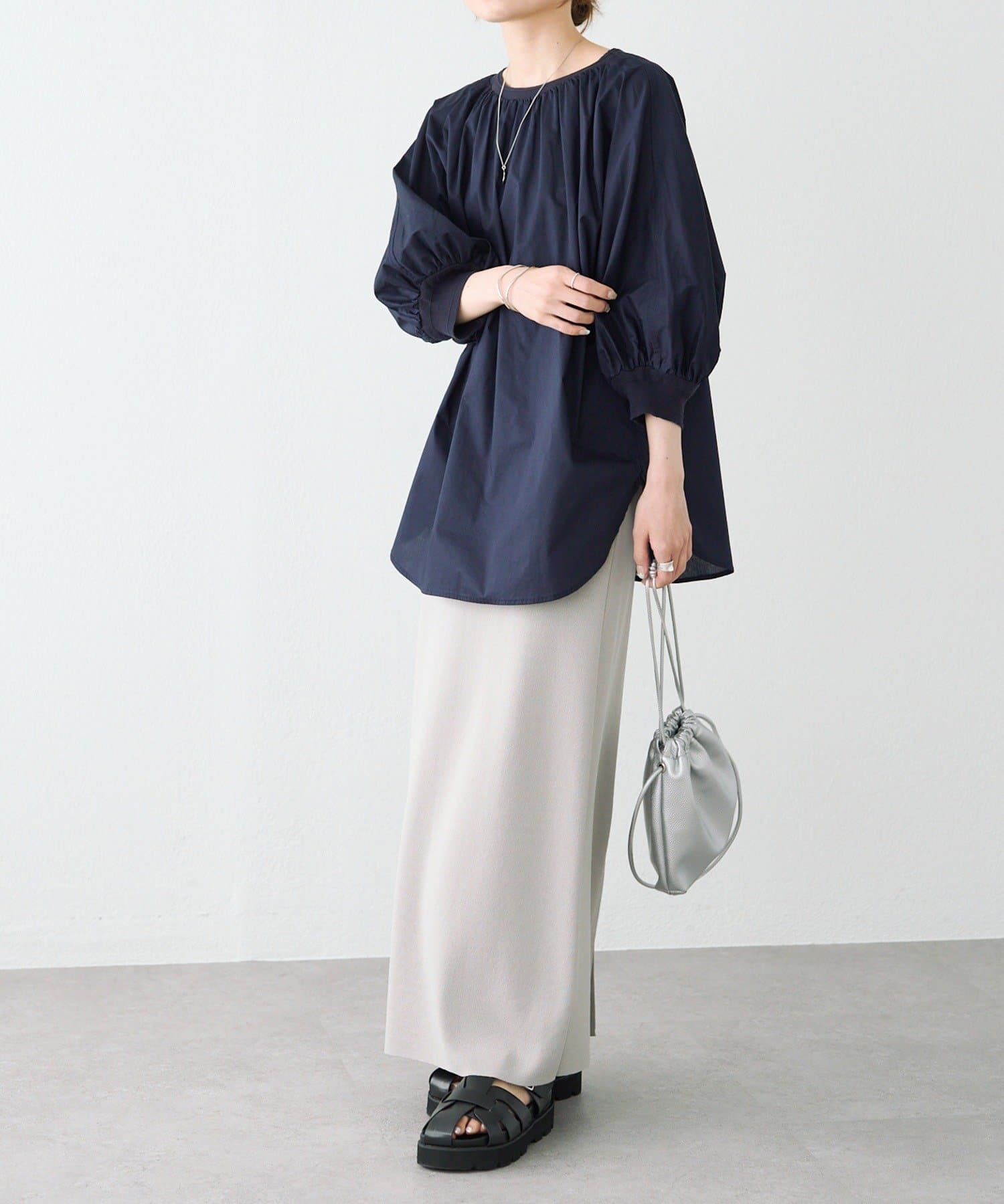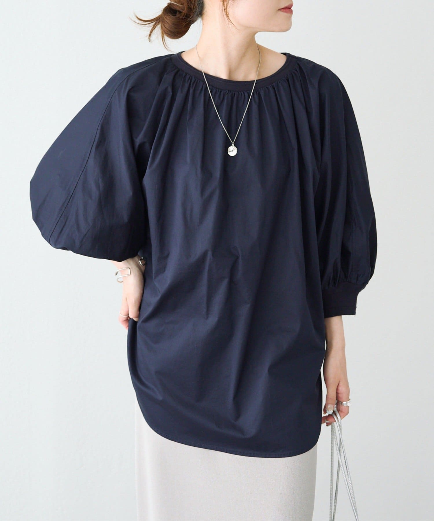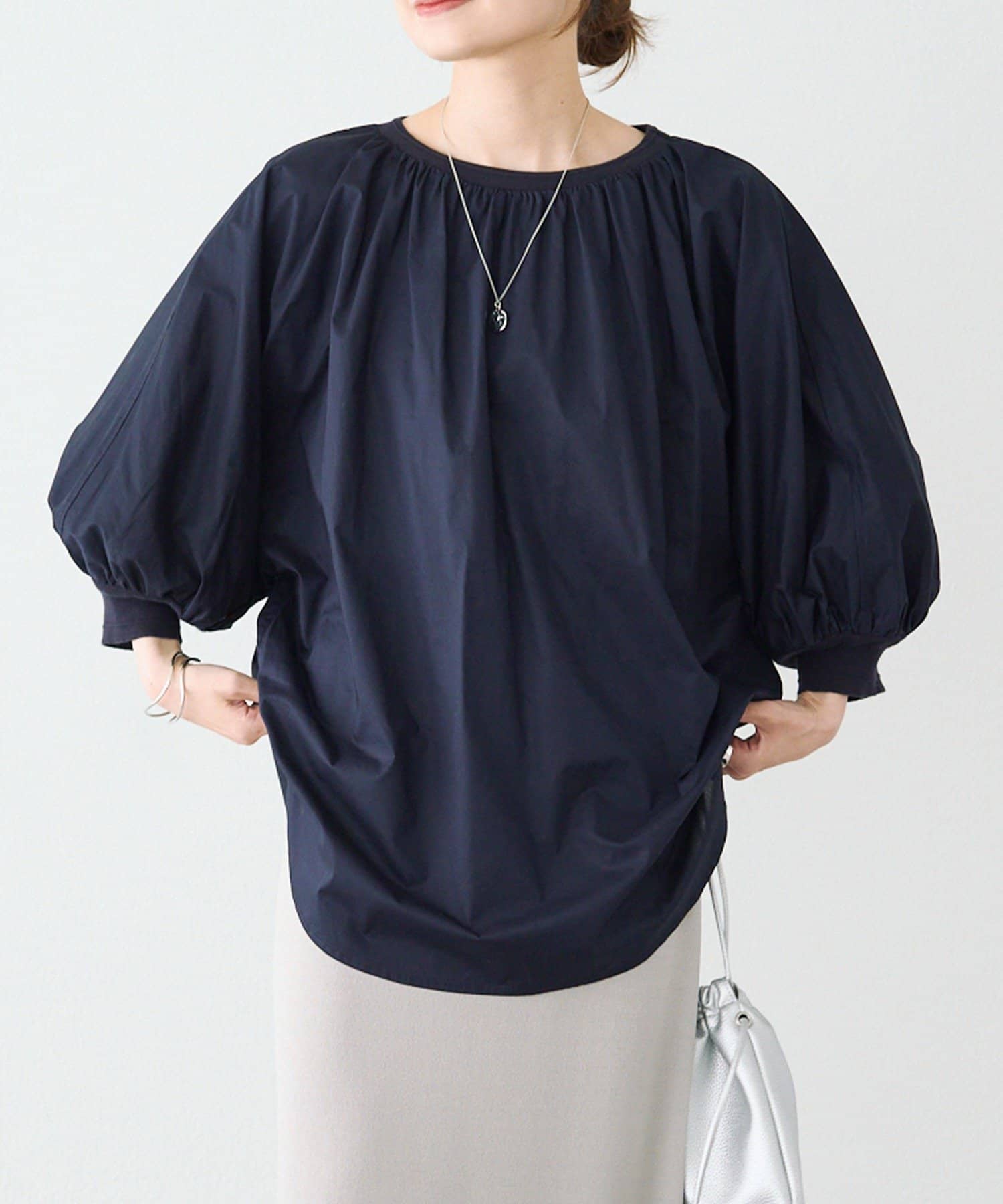 ゆとりのあるブラウスなので、
