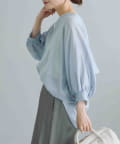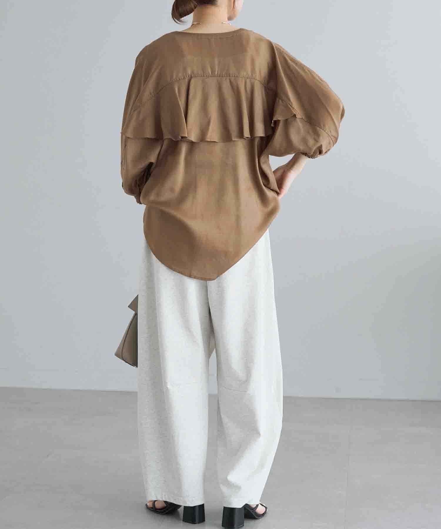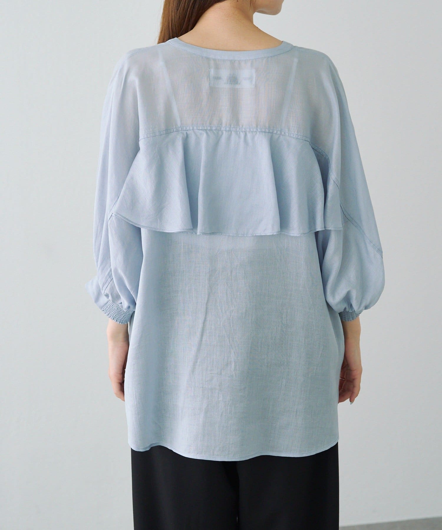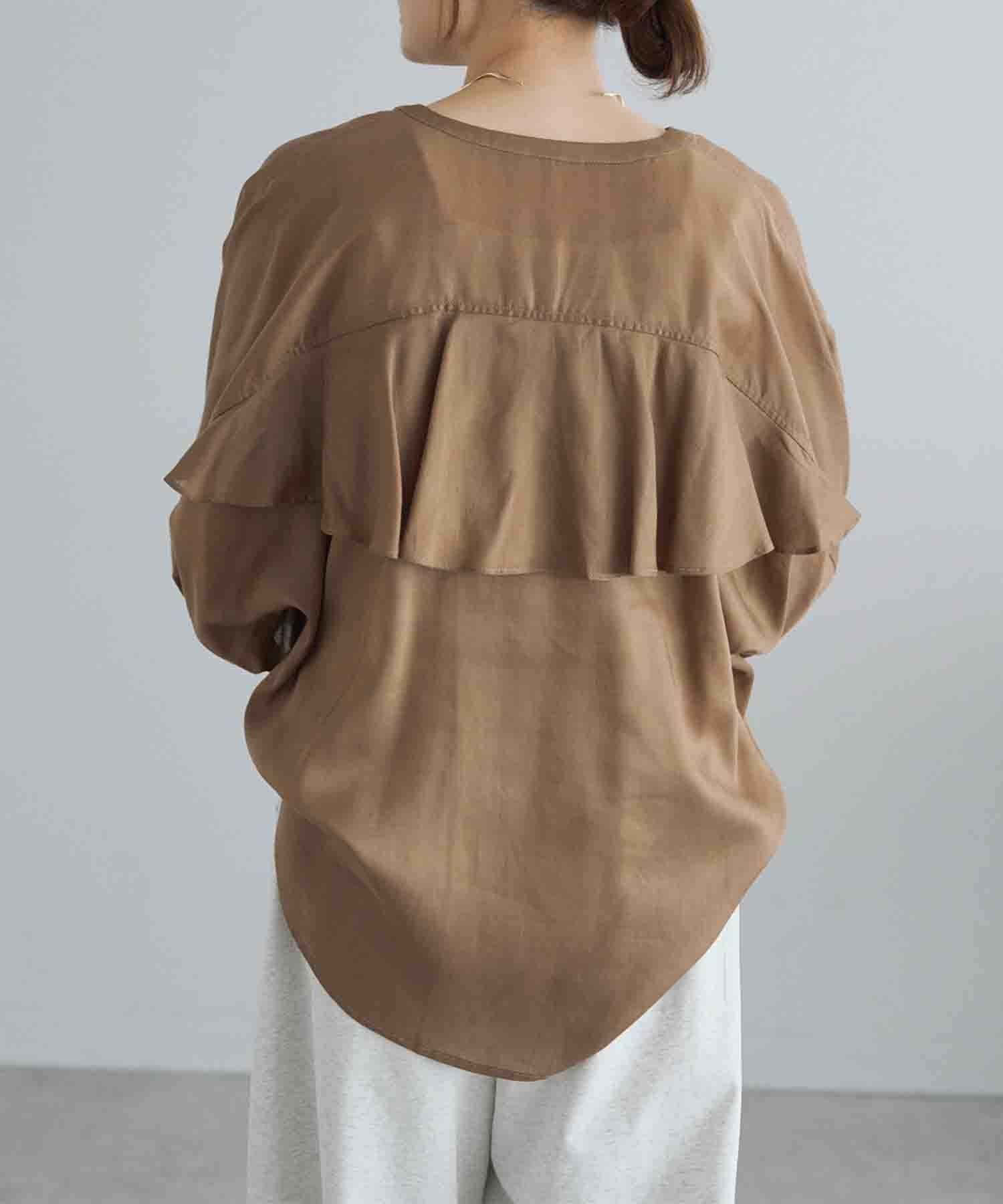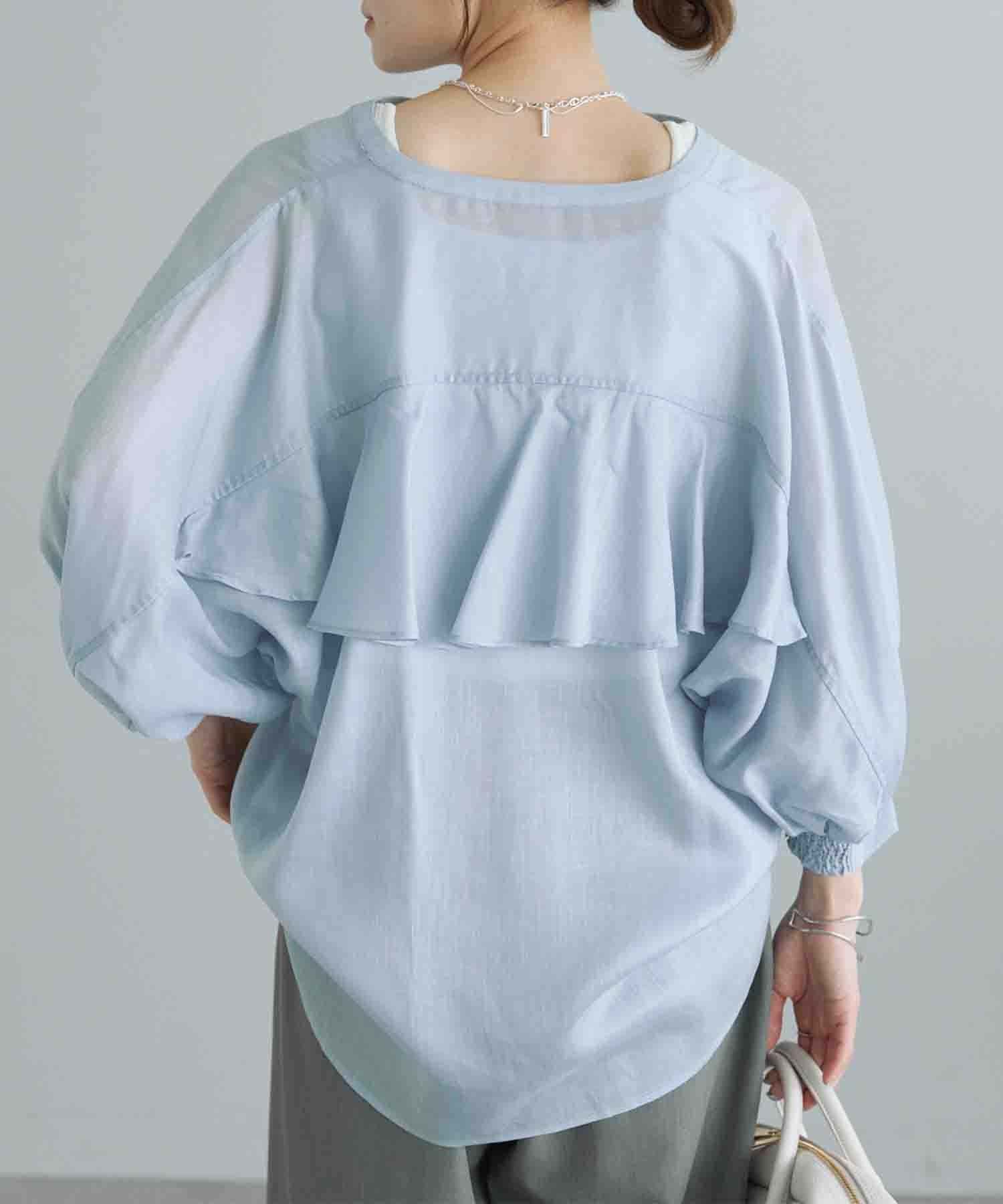フロントのシンプルなデザインから振り返ったときのギャップが魅力のブラウス。