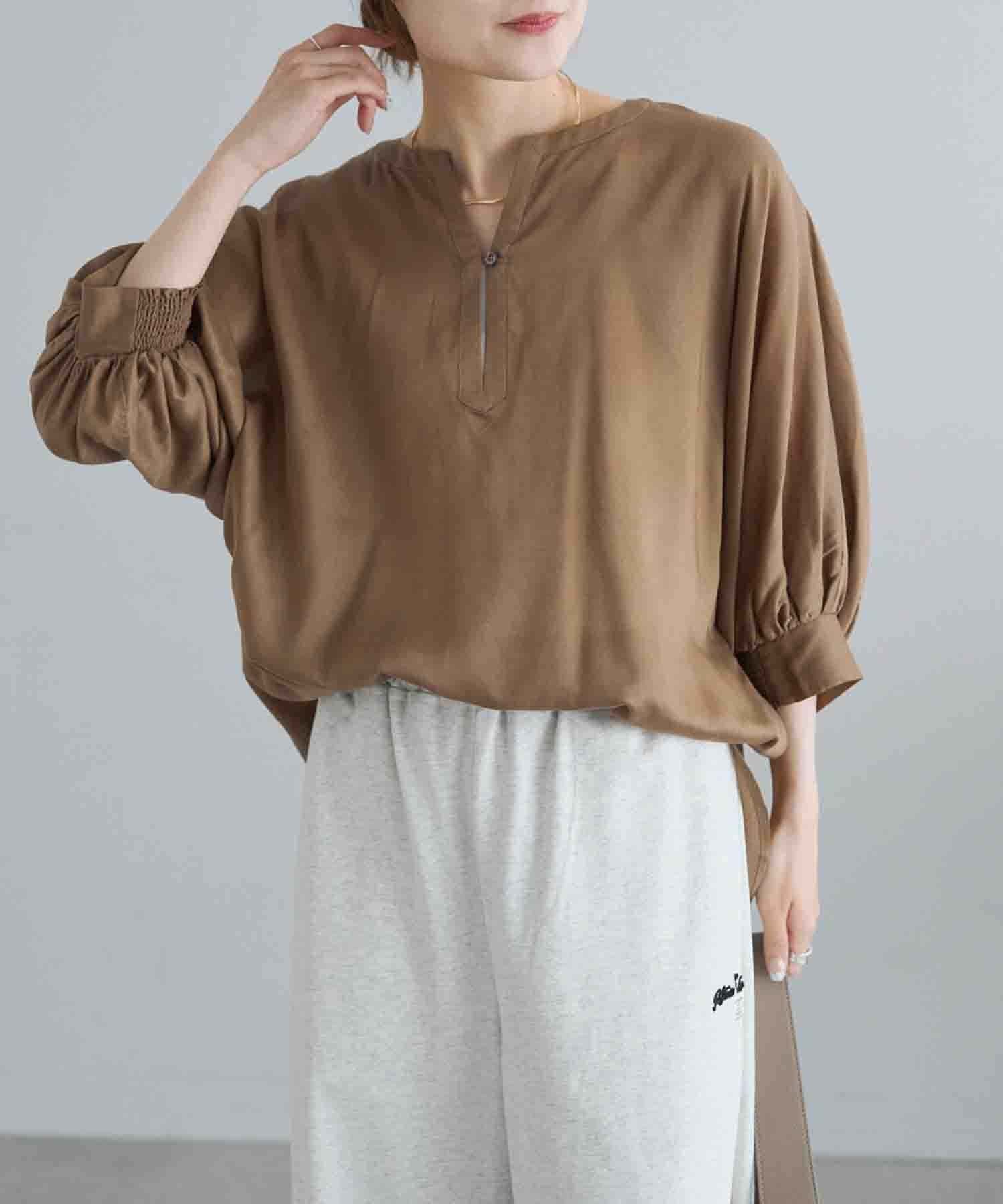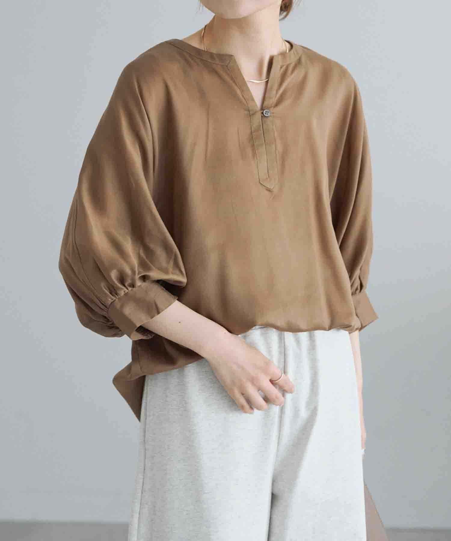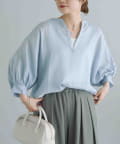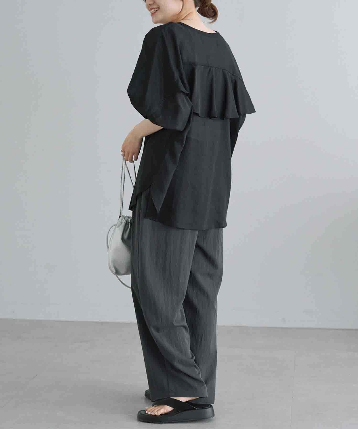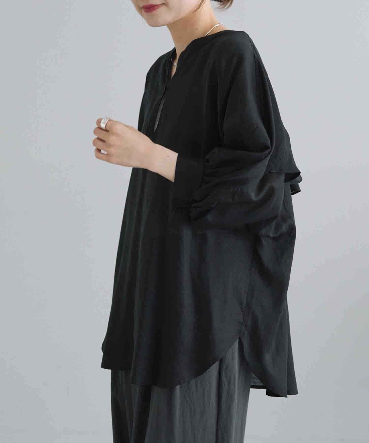 フロントのシンプルなデザインから振り返ったときのギャップが魅力のブラウス。