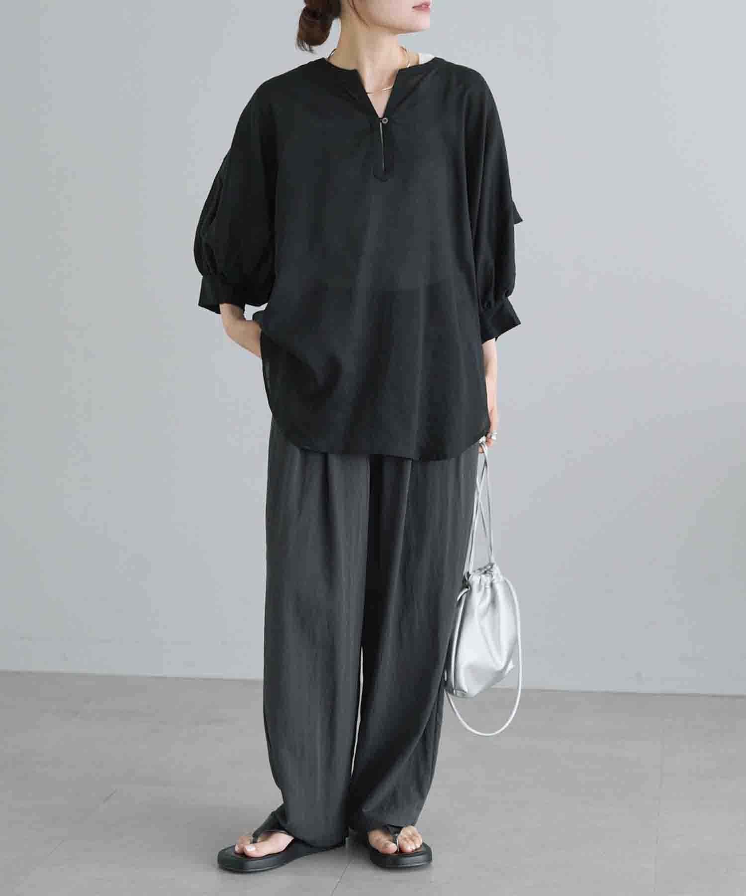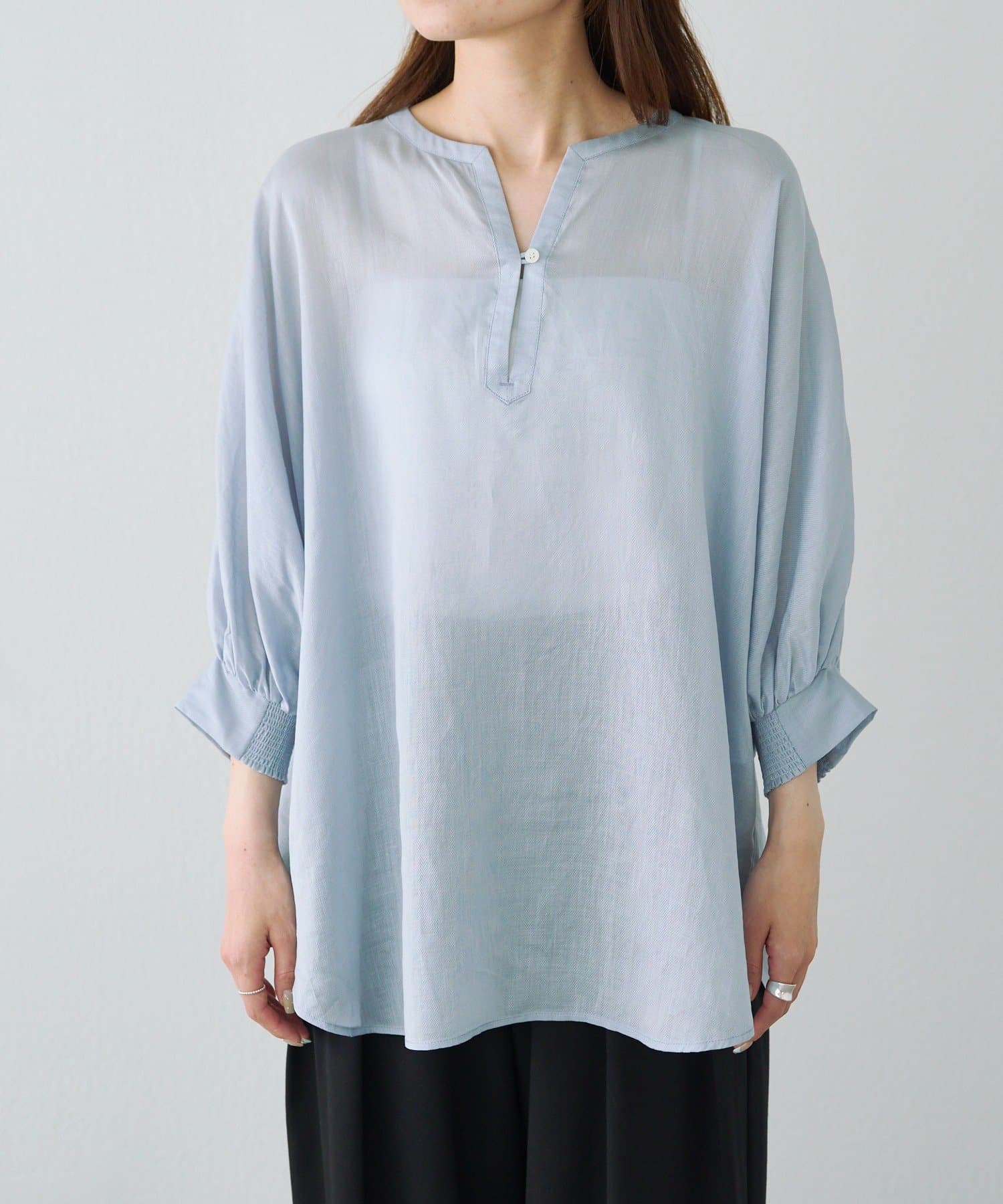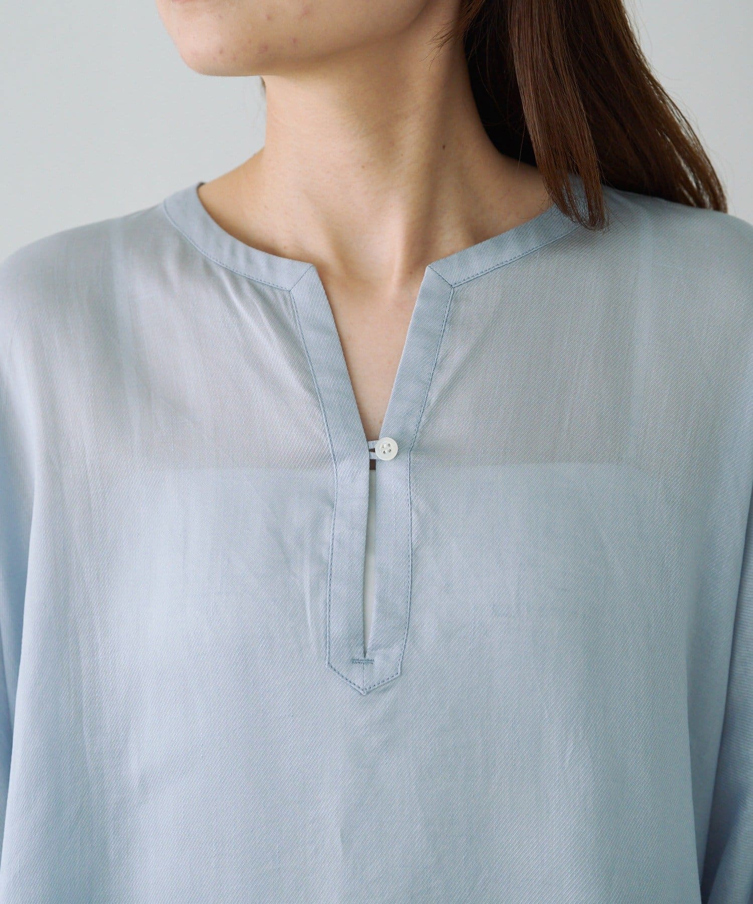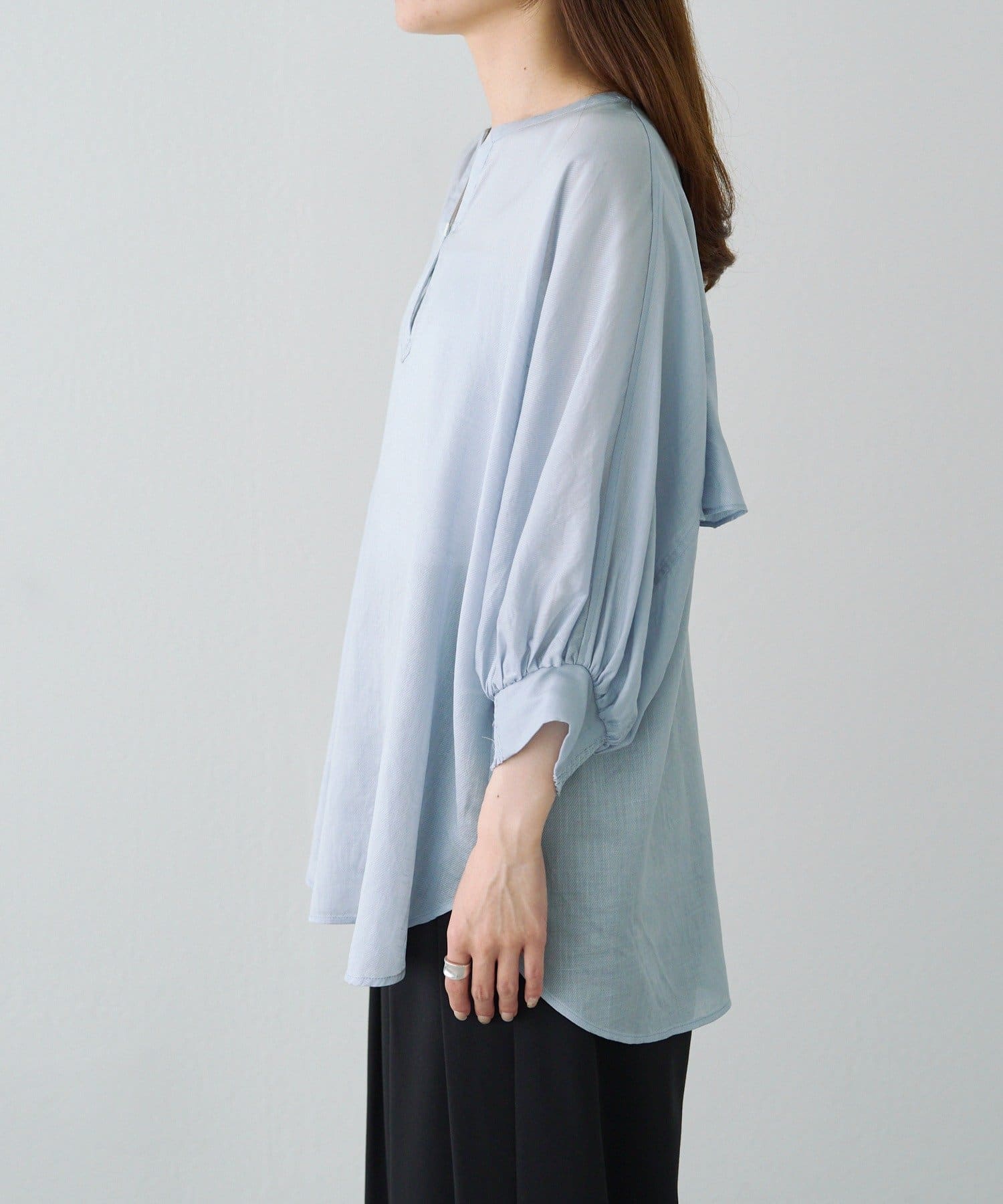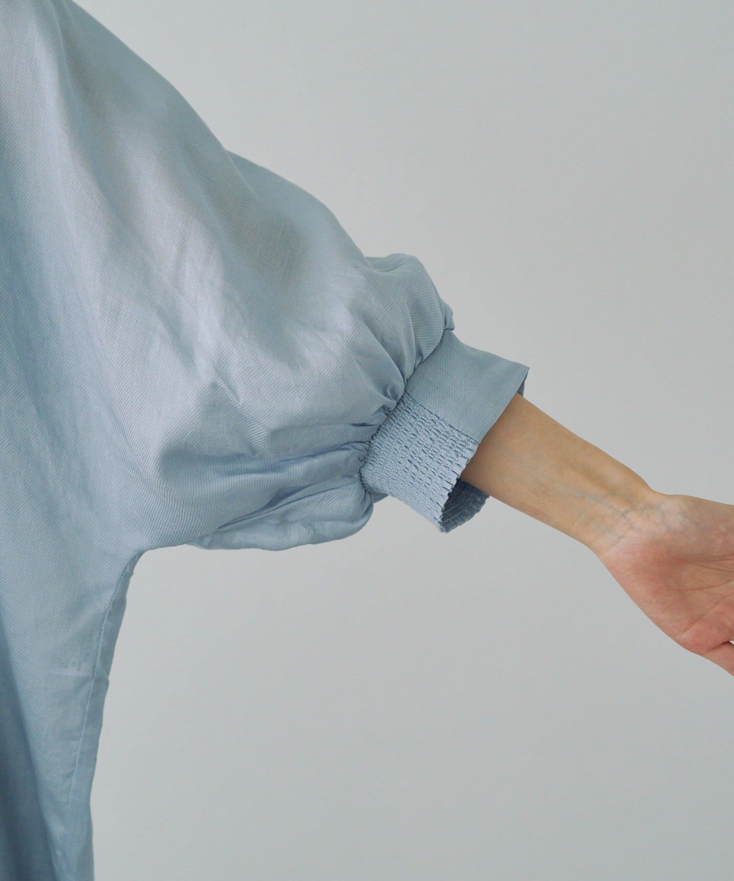 程よい透け感のシアー素材で女性らしいシルエットになるように仕上げました。