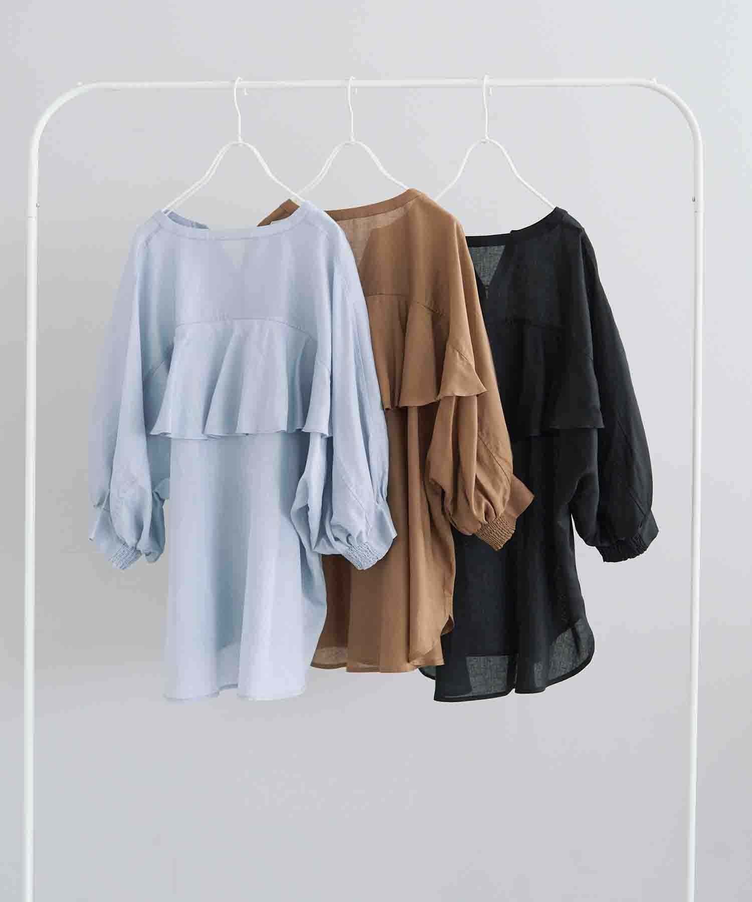 ◇幅広フリルのバッグスタイルが可愛らしいブラウス◇