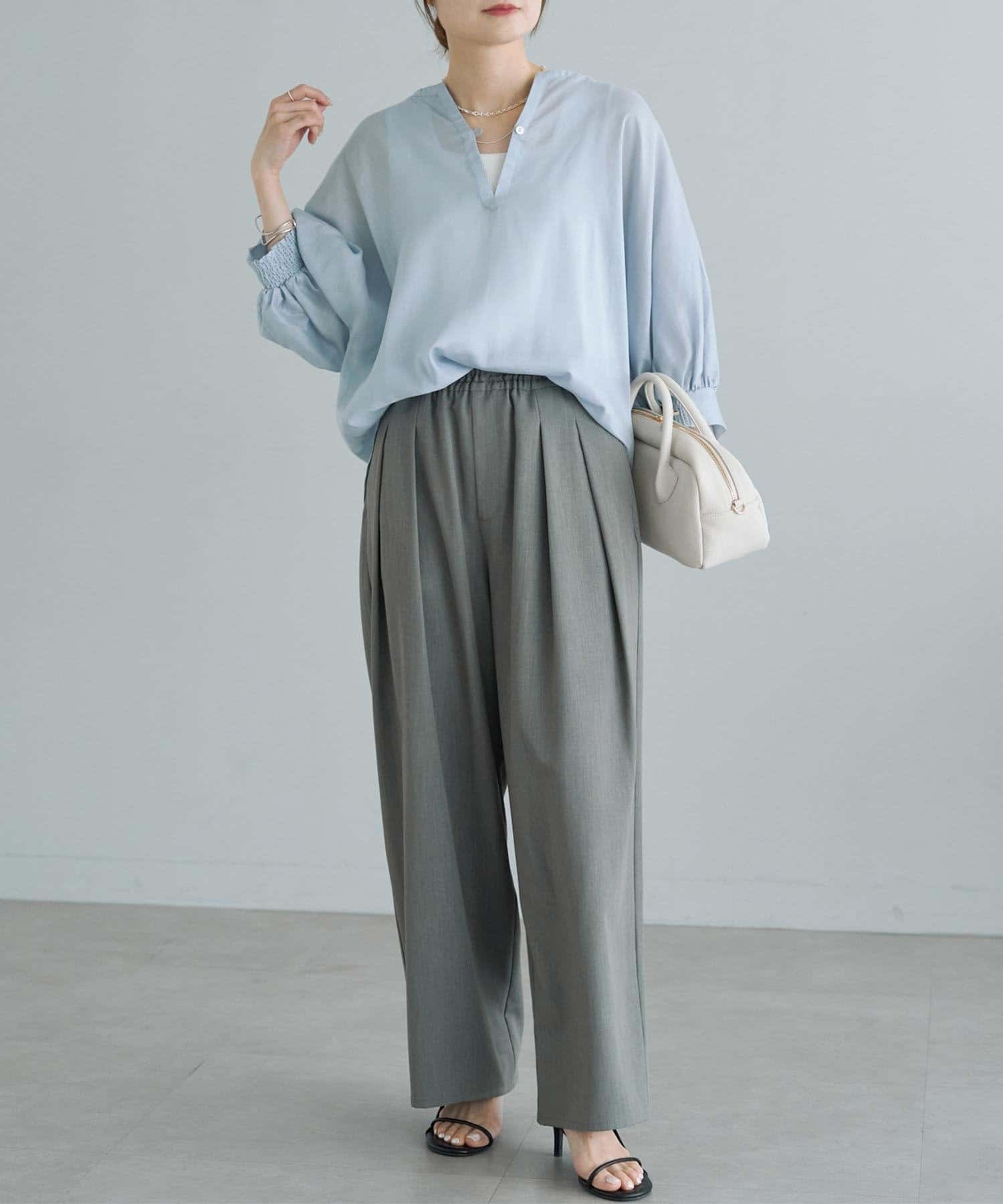 キレイめなパンツを合わせれば、オフィスカジュアルにも着まわせます。