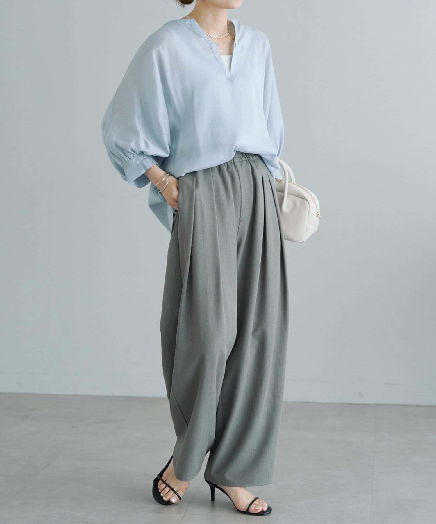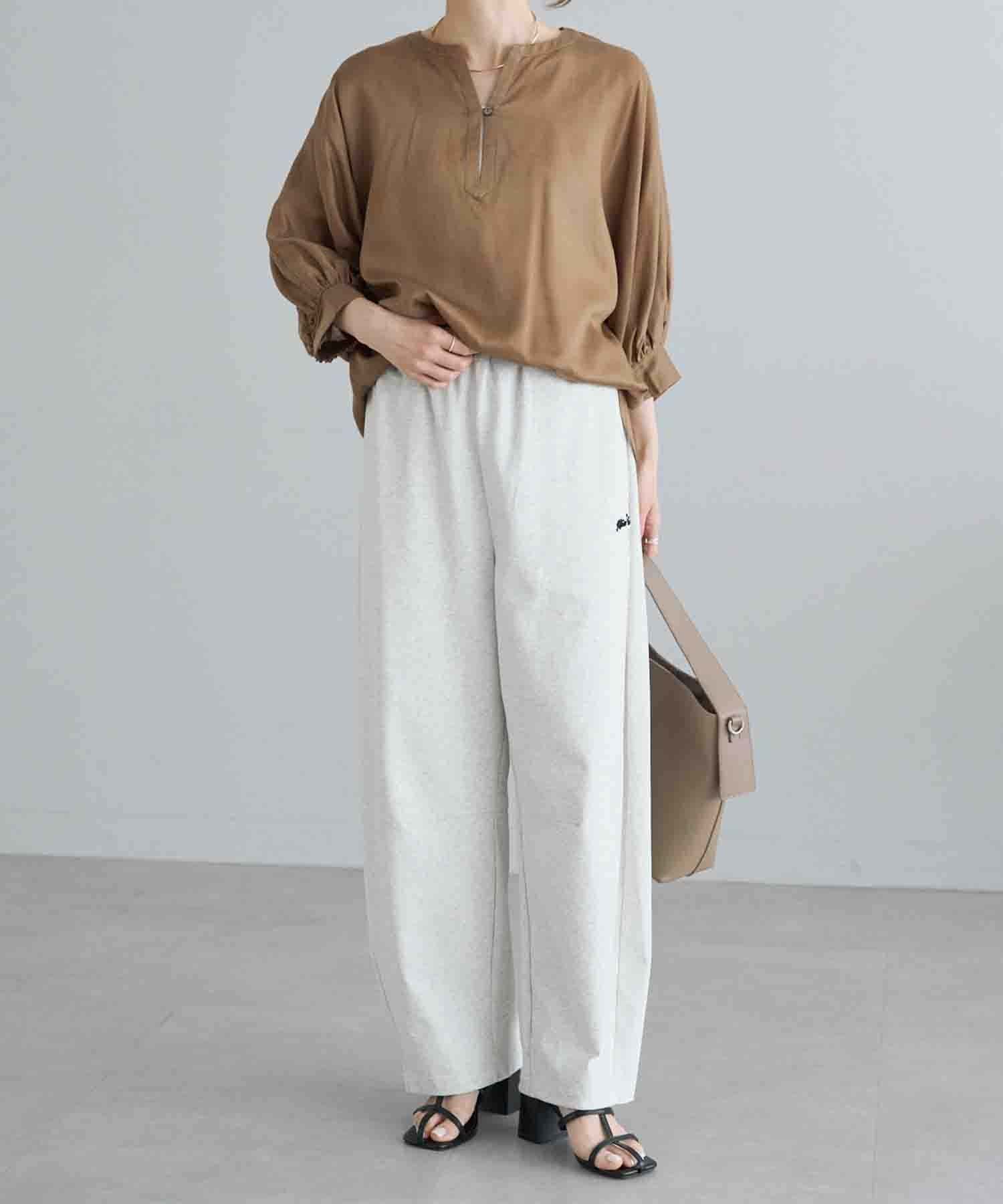 ラフな穿き心地のイージーパンツ合わせでリラックス感あるスタイリングは、
