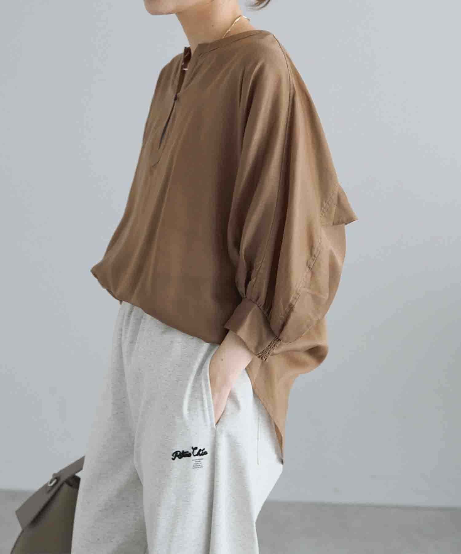 滑らかな肌当たりの落ち感あるシアー素材を使用。
