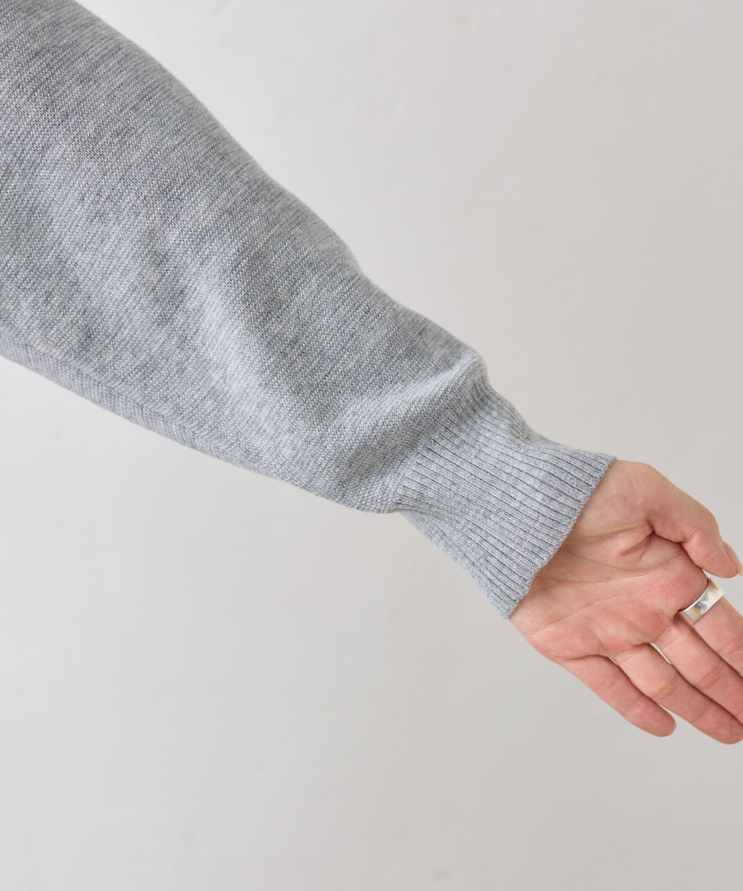 手洗いできる、14Gの細かい編み目のミラノリブニットで、適度なハリを持ち高級感をキープ。