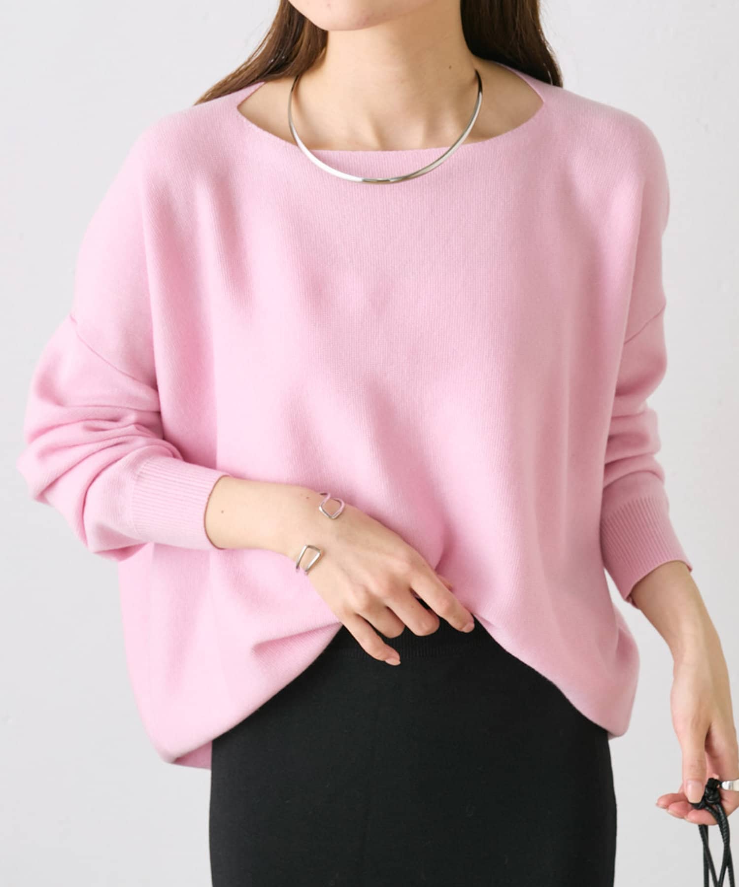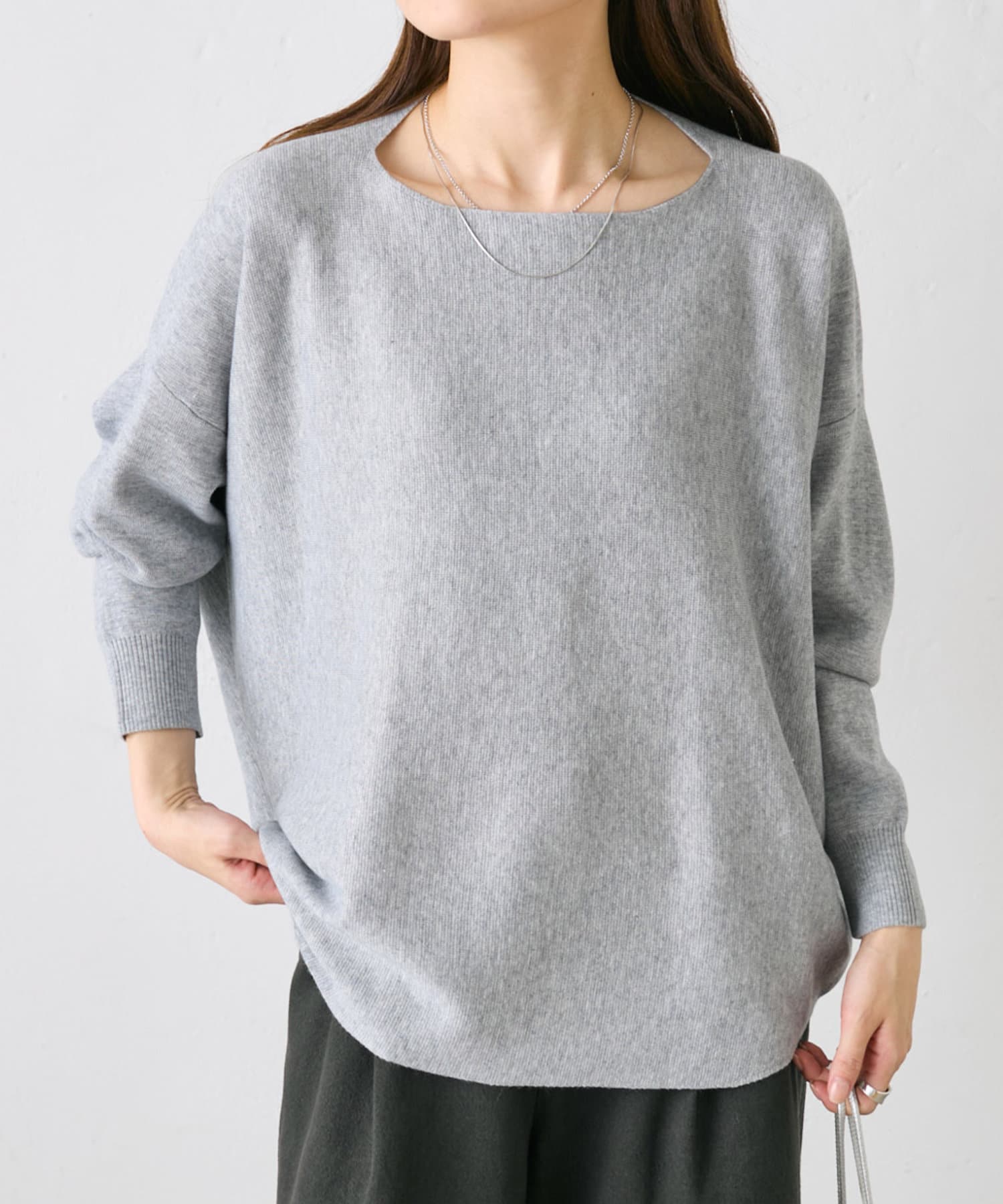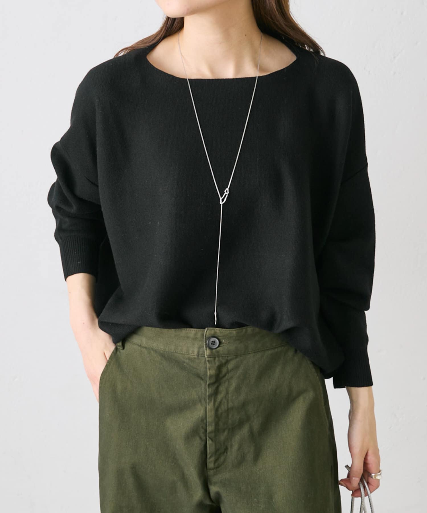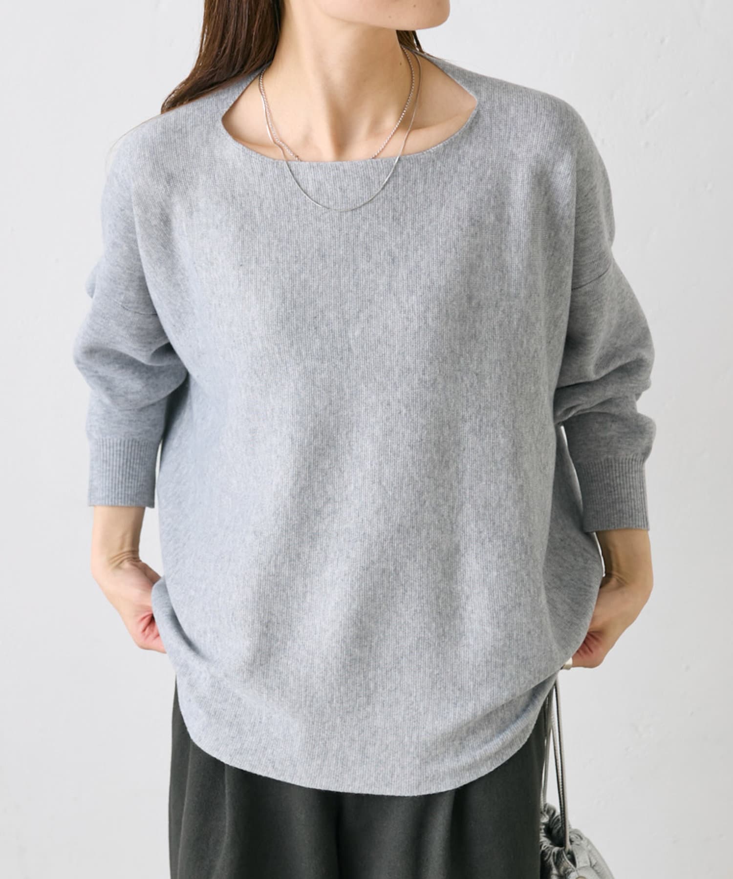 首元が広いため、気になる方はネックレスなどアクセサリーをつけて調整していただくとメリハリがでて良いと思います。